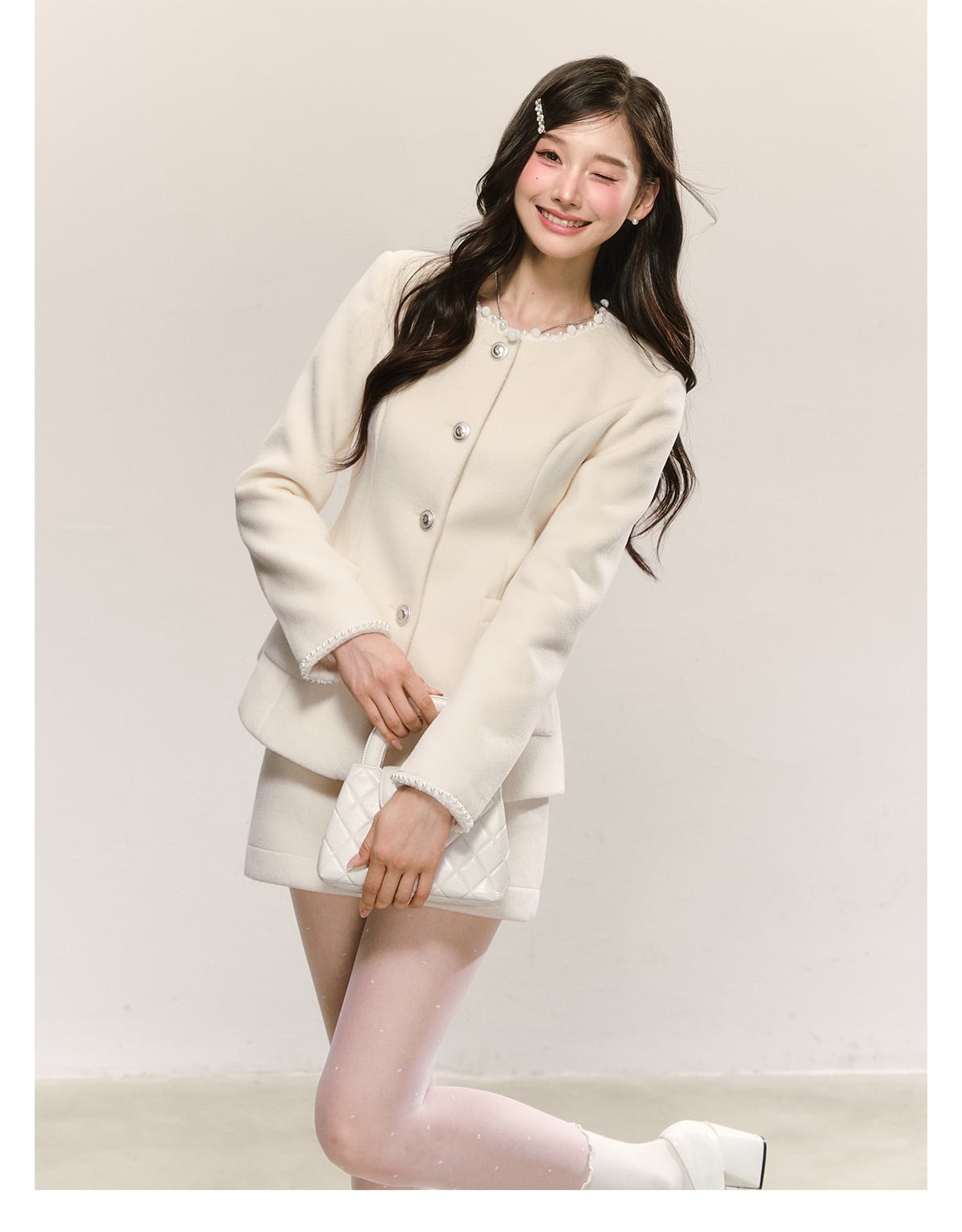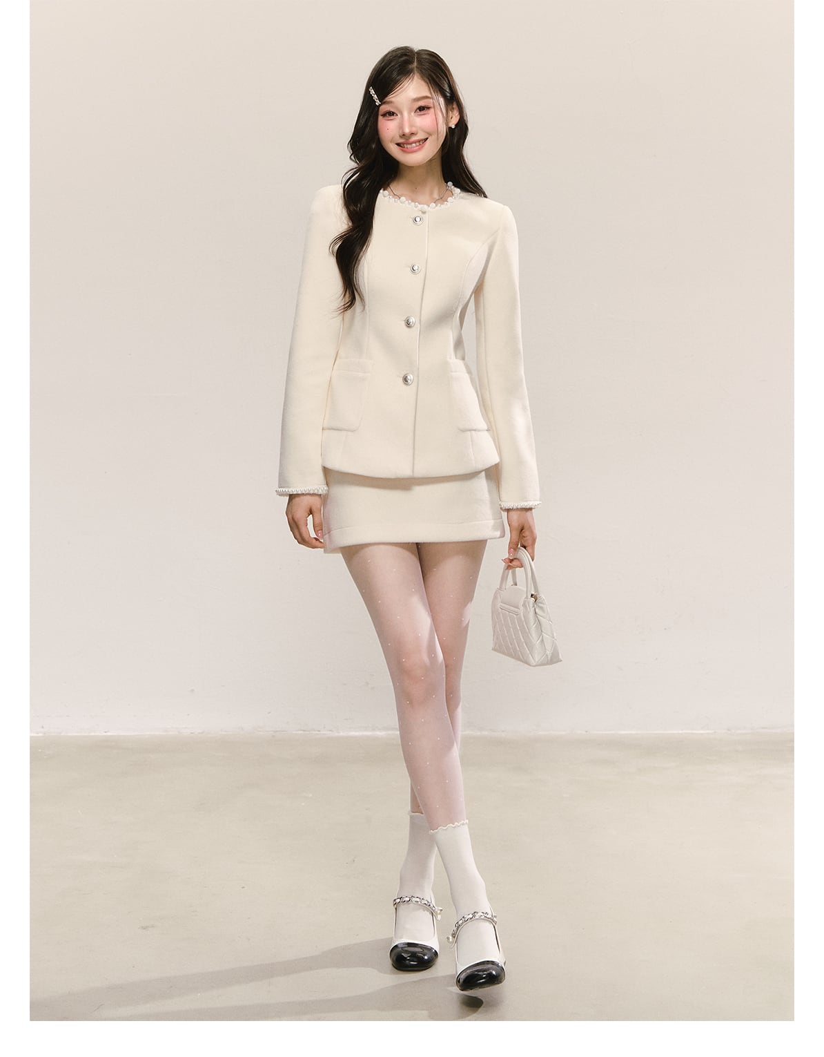 【set】パール付きジャケット×ミニスカートセット N3474