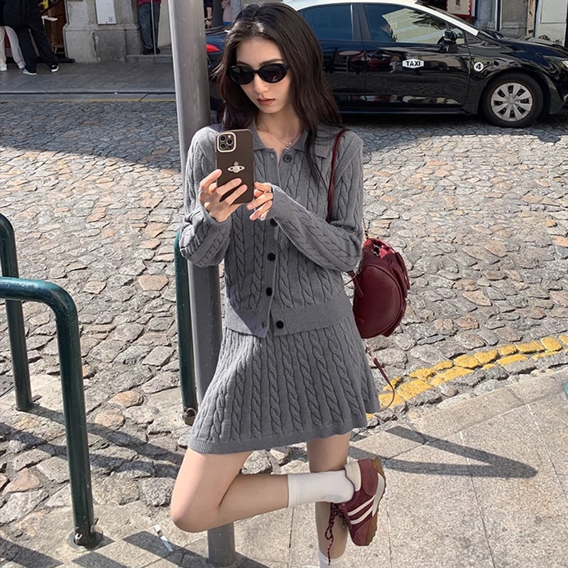 【set】ニットカーディガン×ミニスカートセット Q7220