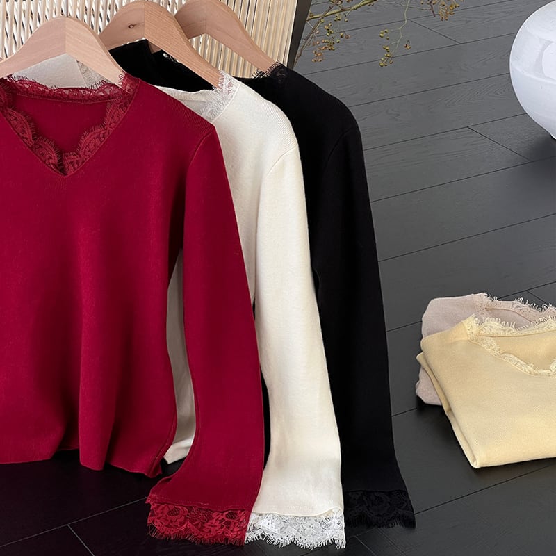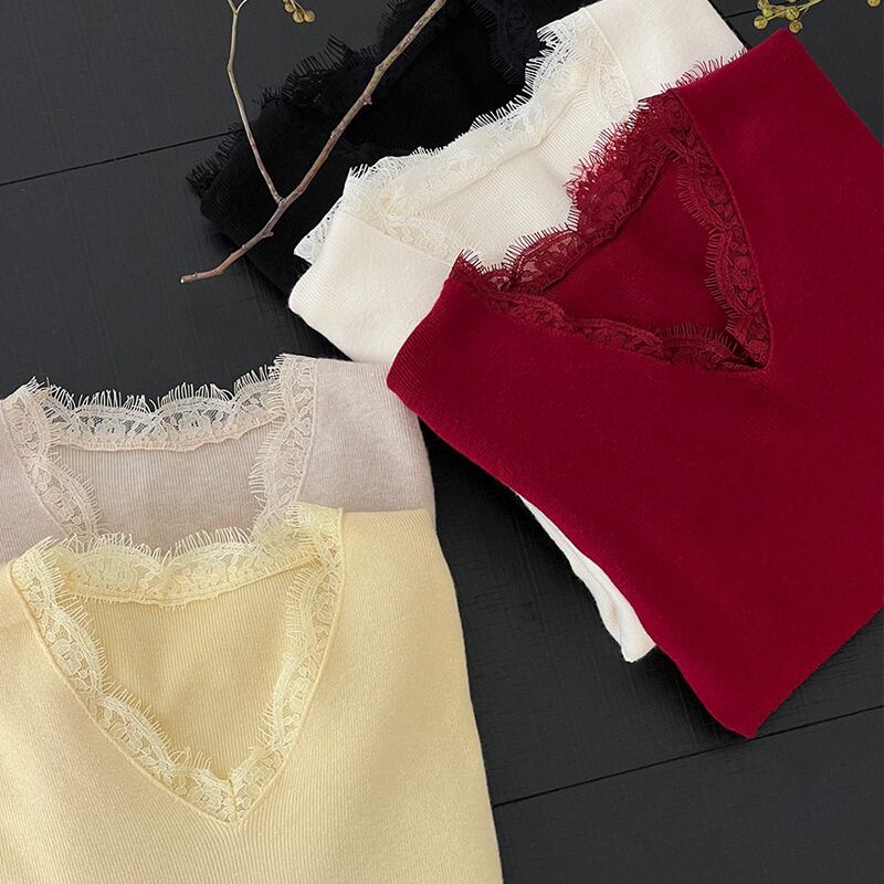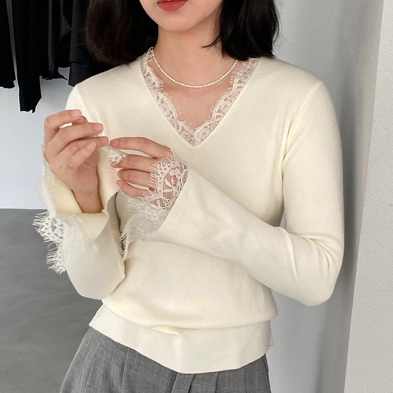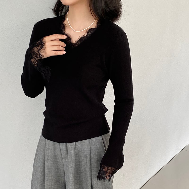 【tops】レースドッキングニットトップス Q7236