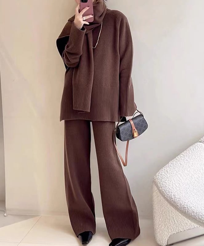 【set】マフラー×ニットトップス×ショートパンツ3点セット Q7249