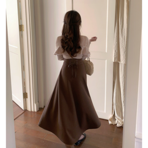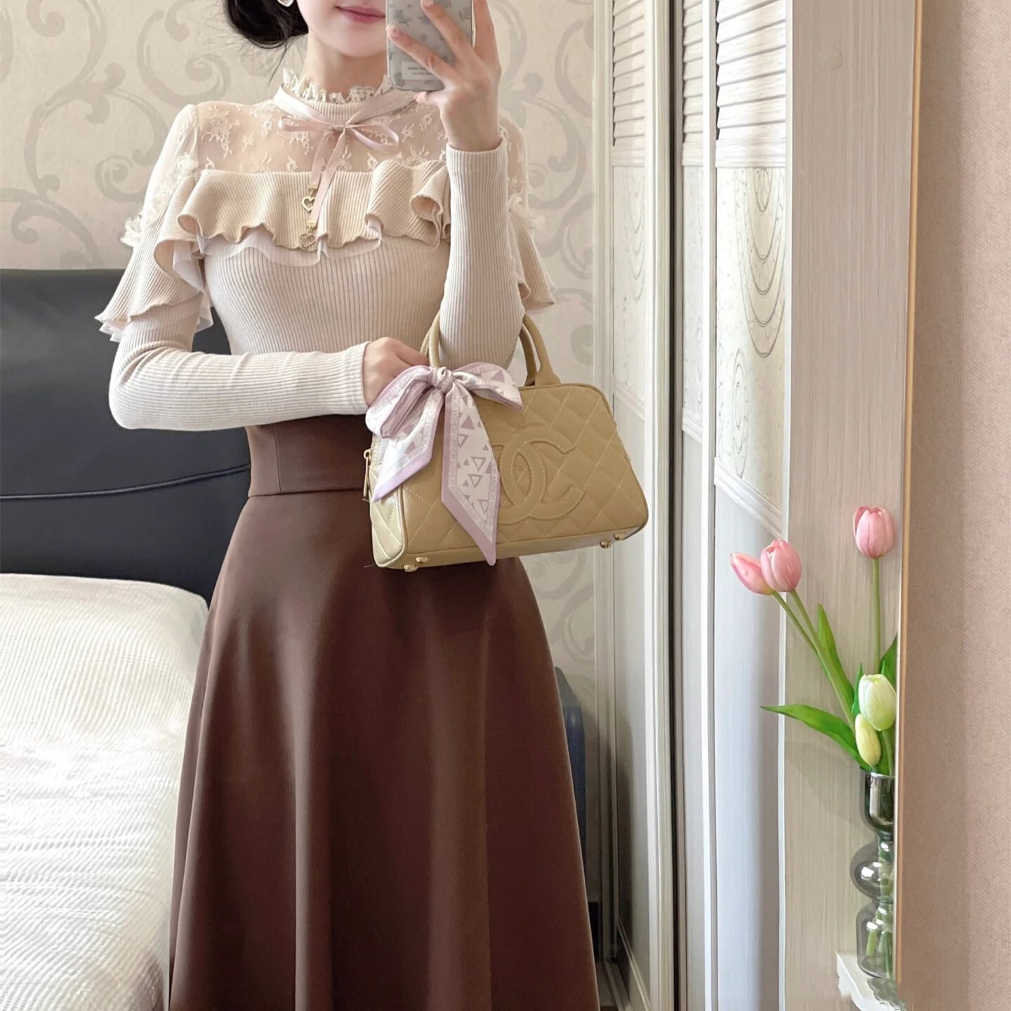【set】レースフリルニットトップス×ロングスカートセット N3477