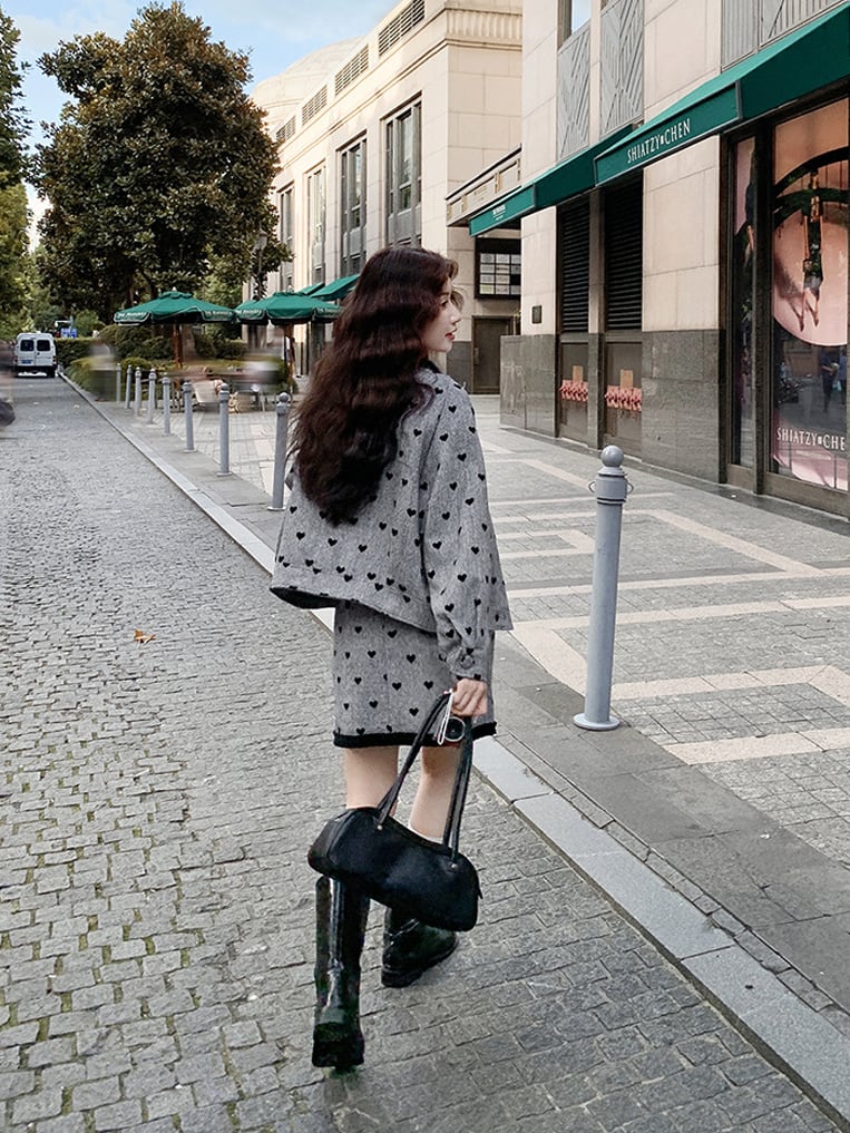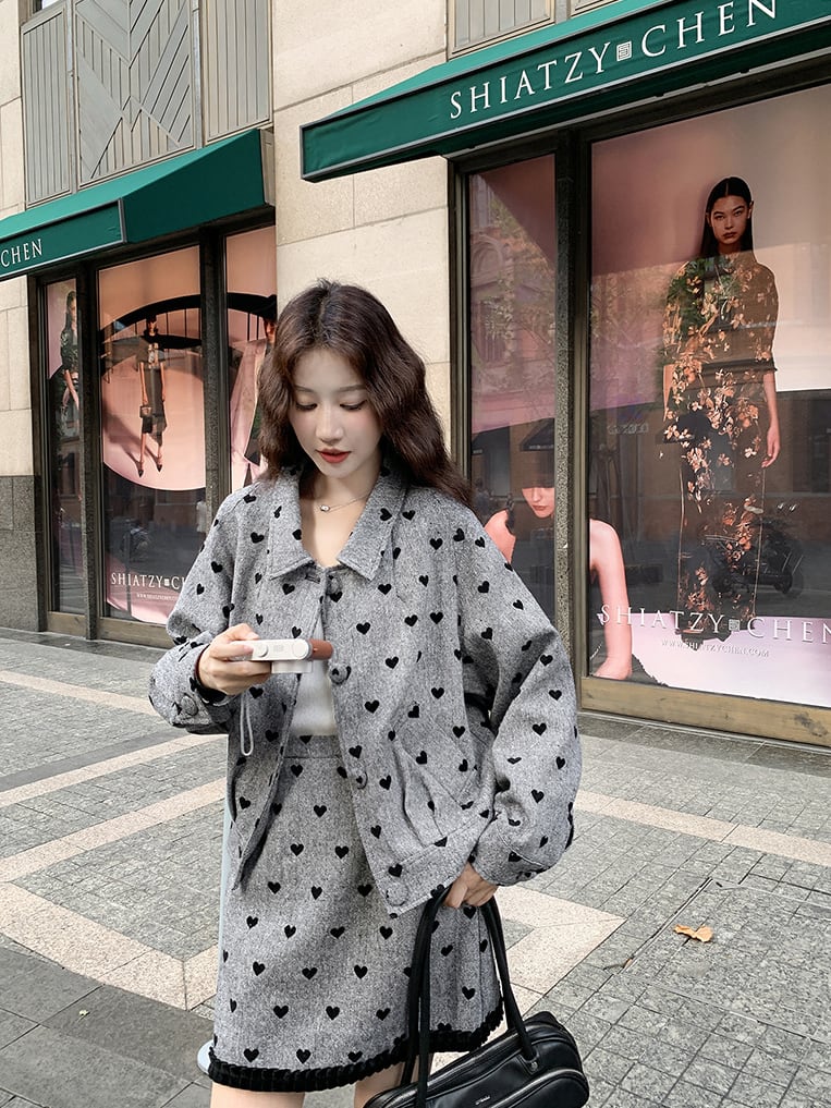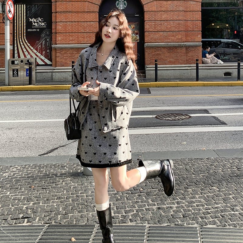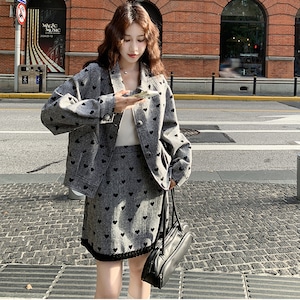 【set】ハート柄ジャケット×ストレートスカートセット Q7263