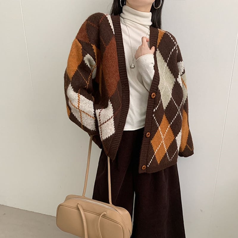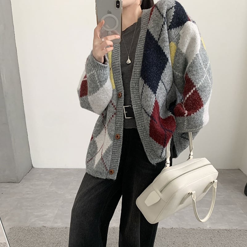 【outer】ダイヤ柄ニットカーディガン Q7268