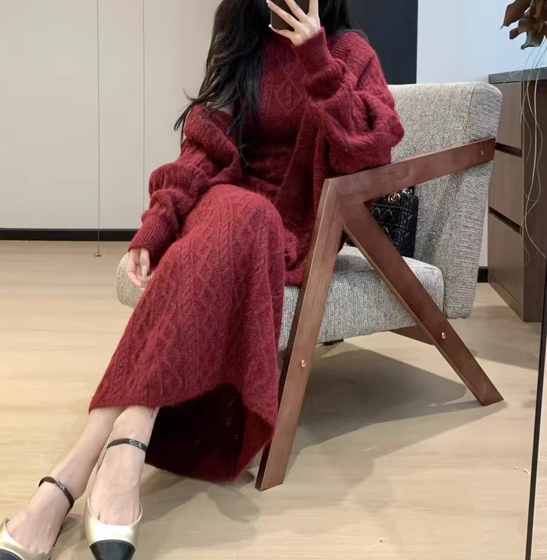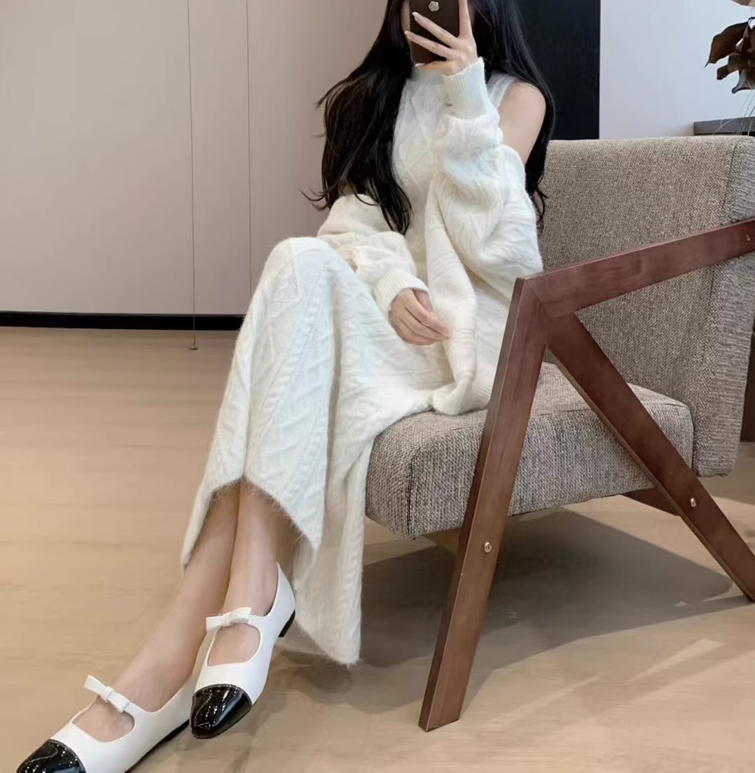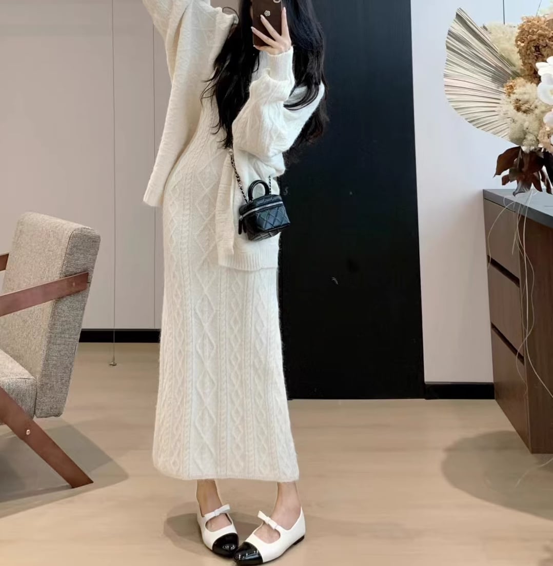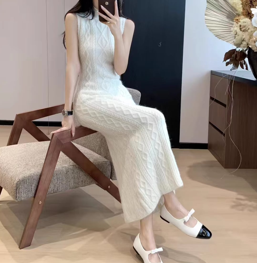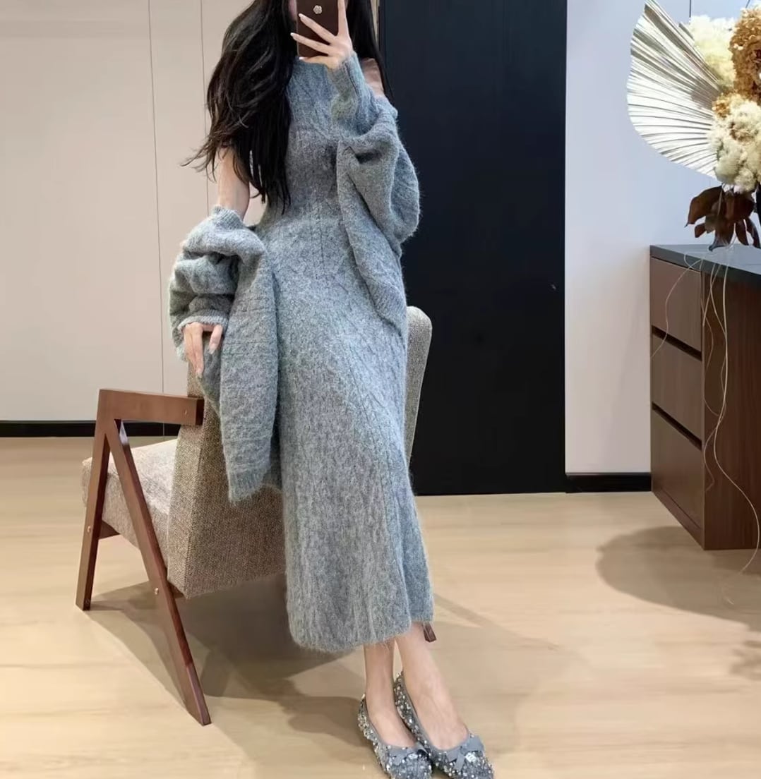 【set】ニットカーディガン×ノースリーブワンピースセット Q7272