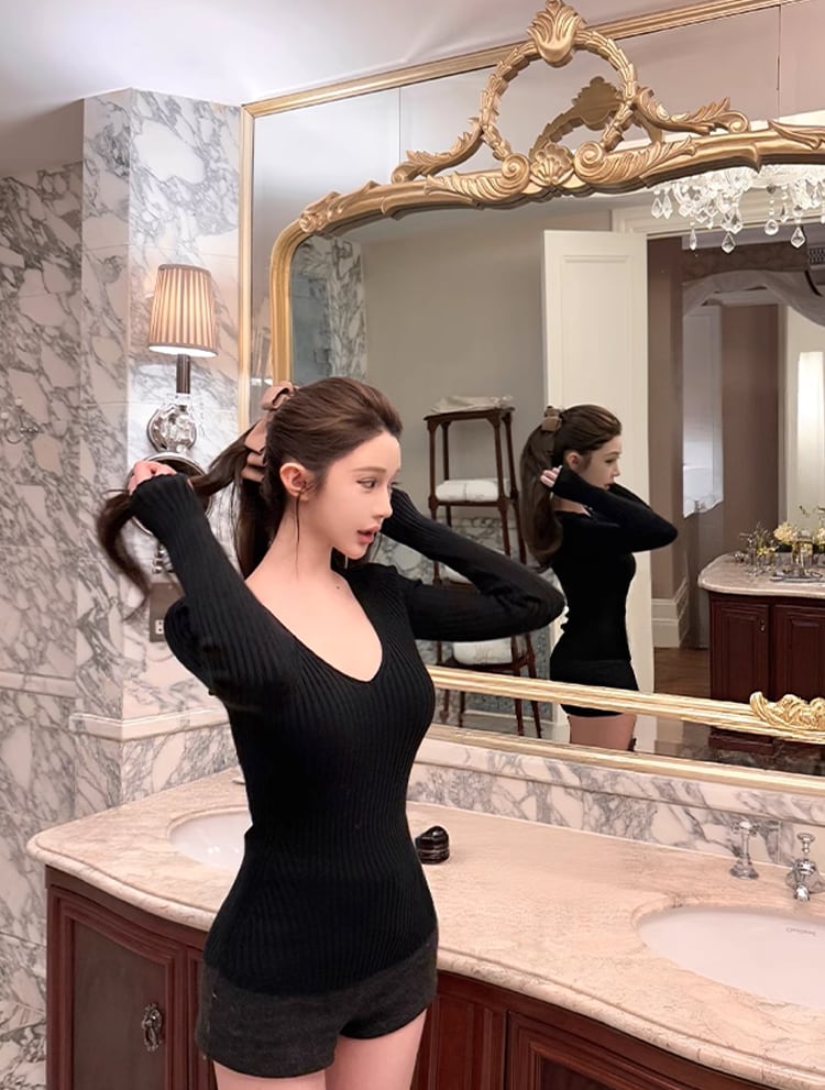【tops】Vネックニットトップス Q7356