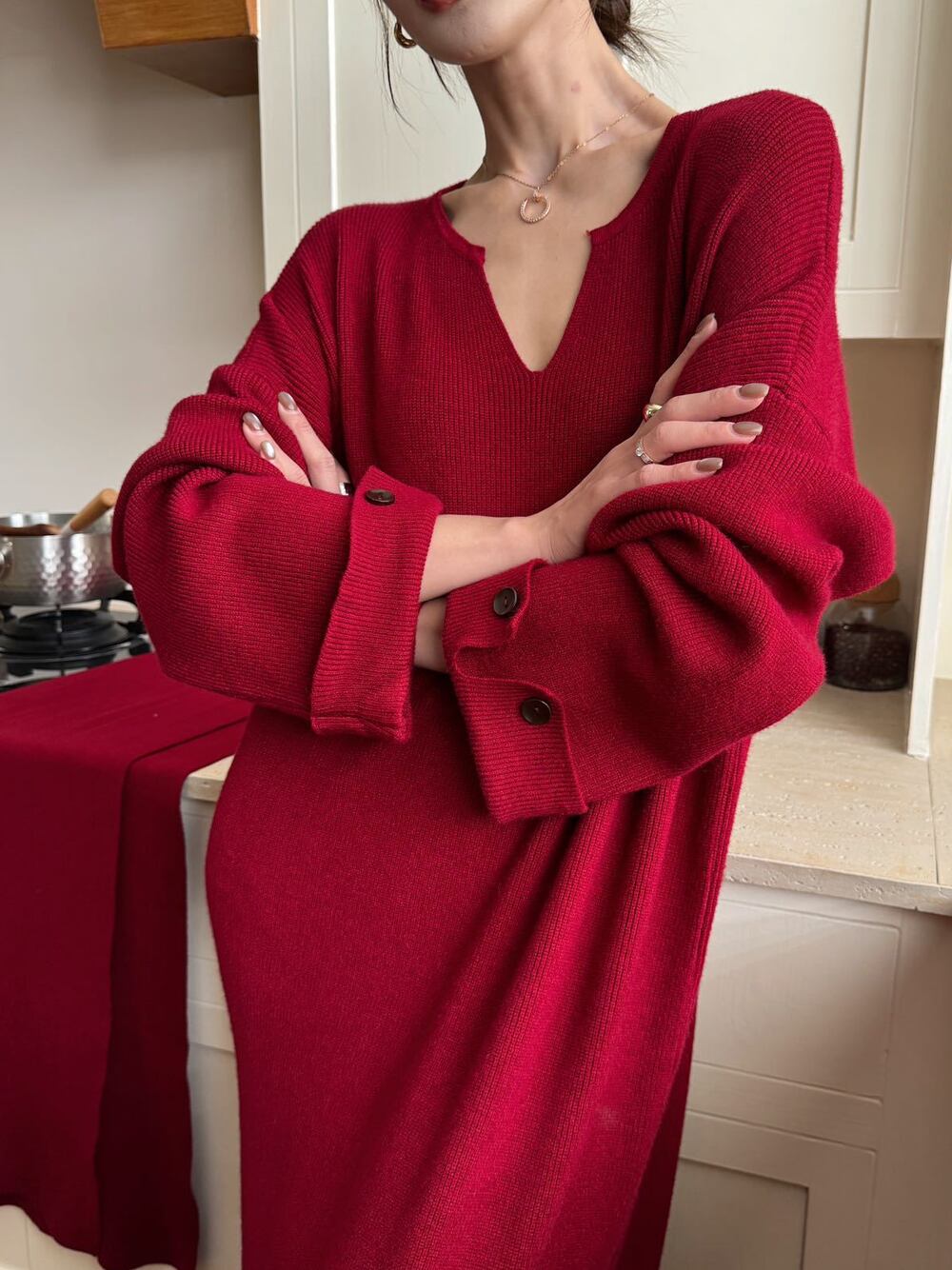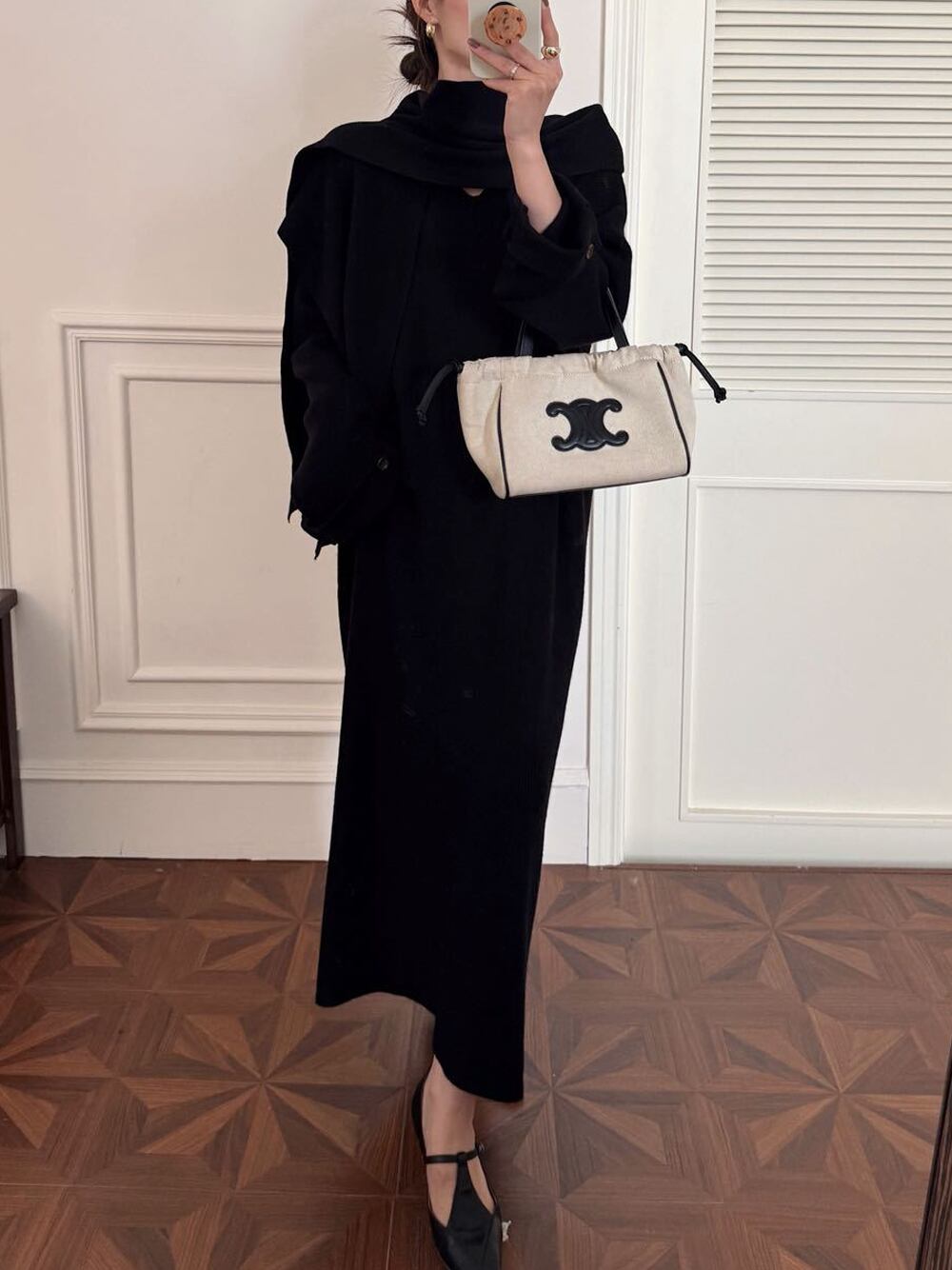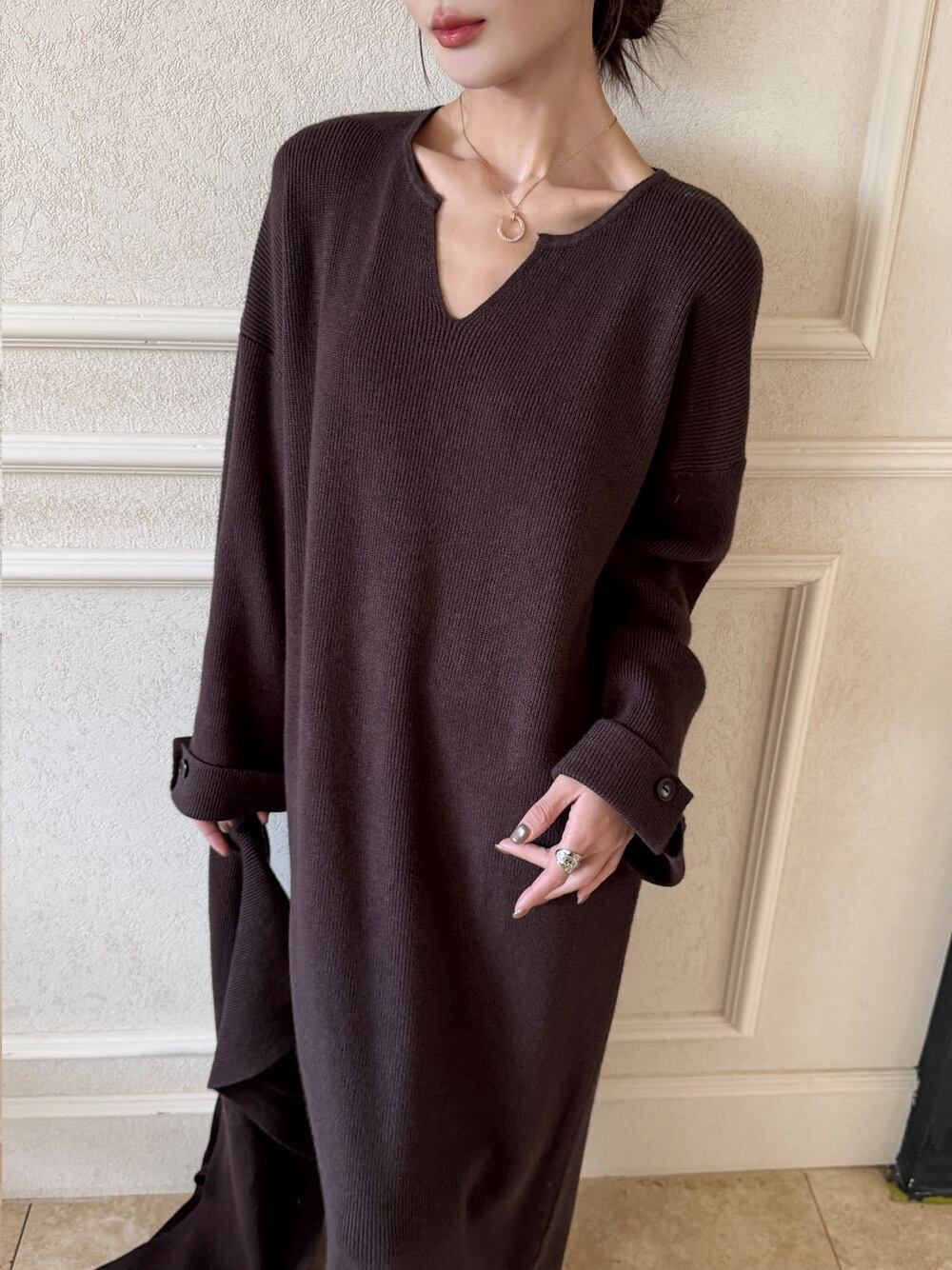 【set】マフラー×Vネックニットワンピースセット Q7391