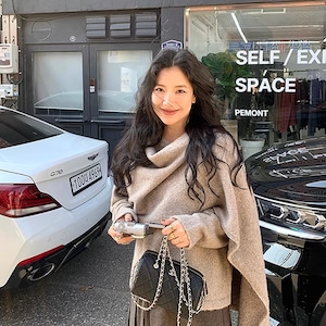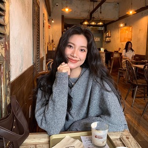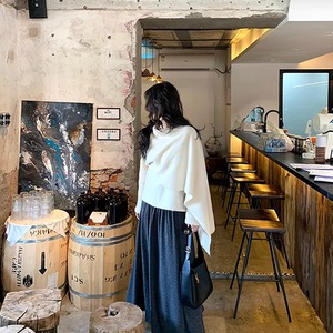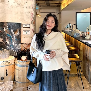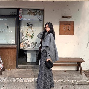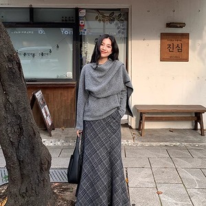 【tops】フェイクレイヤードニットトップス Q7395