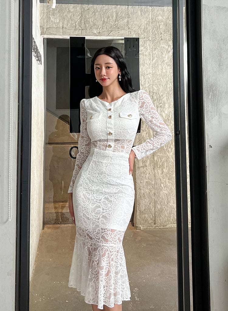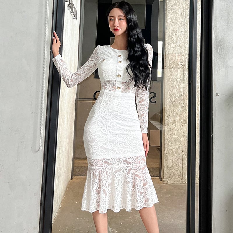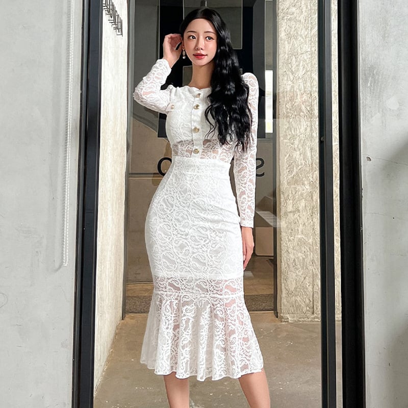 【set】レーストップス×マーメイドスカートセット Q7407
