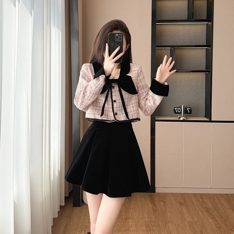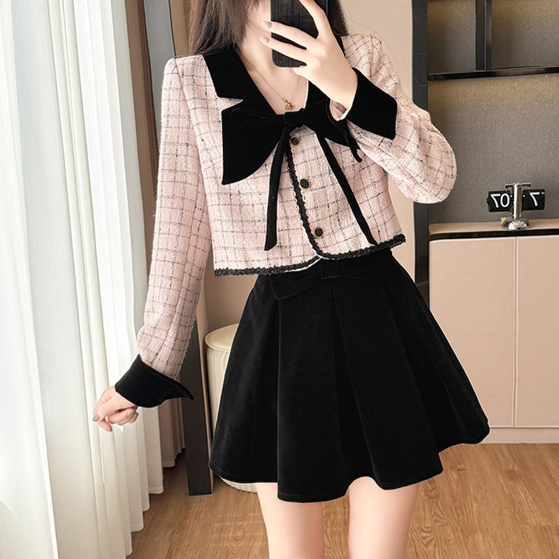 【set】リボン付きジャケット×フレアスカートセット Q7412