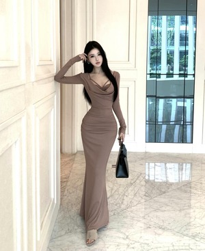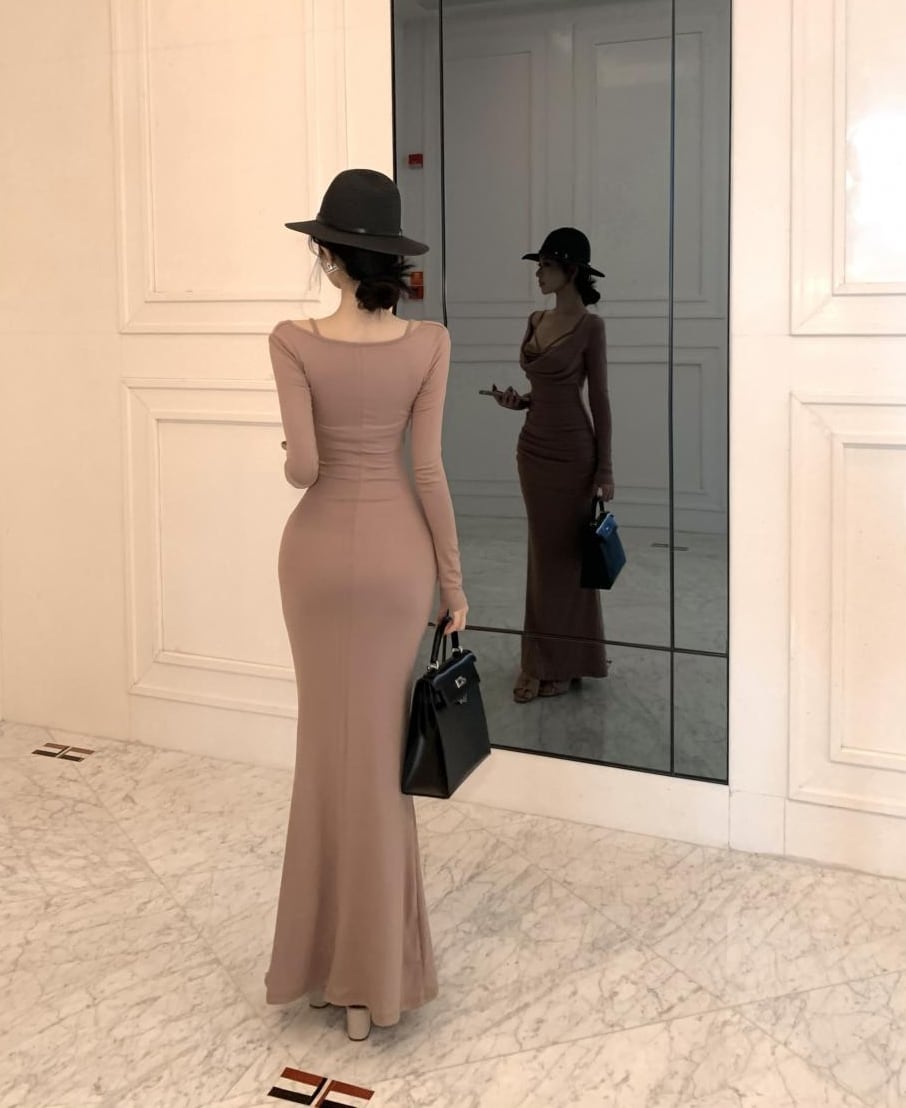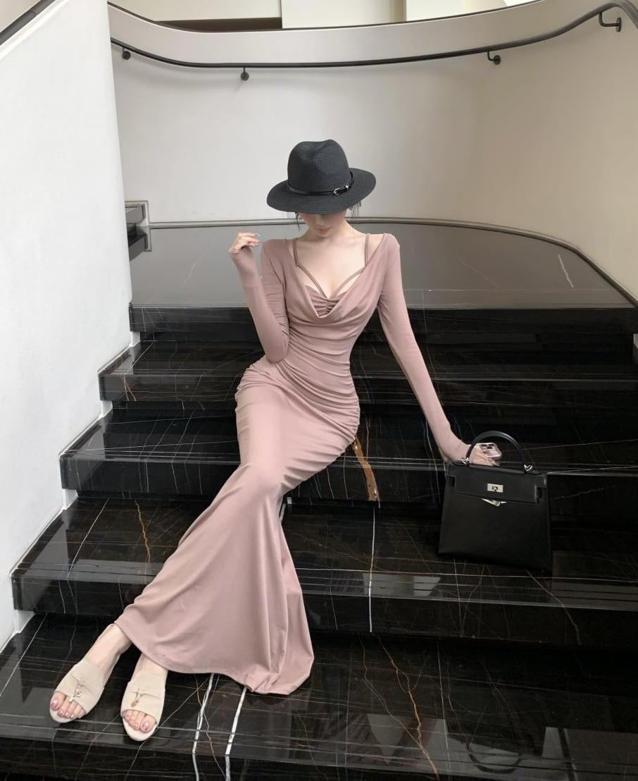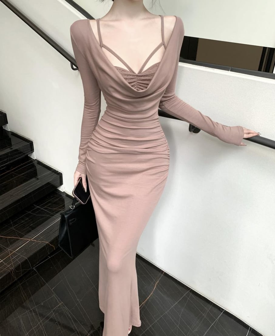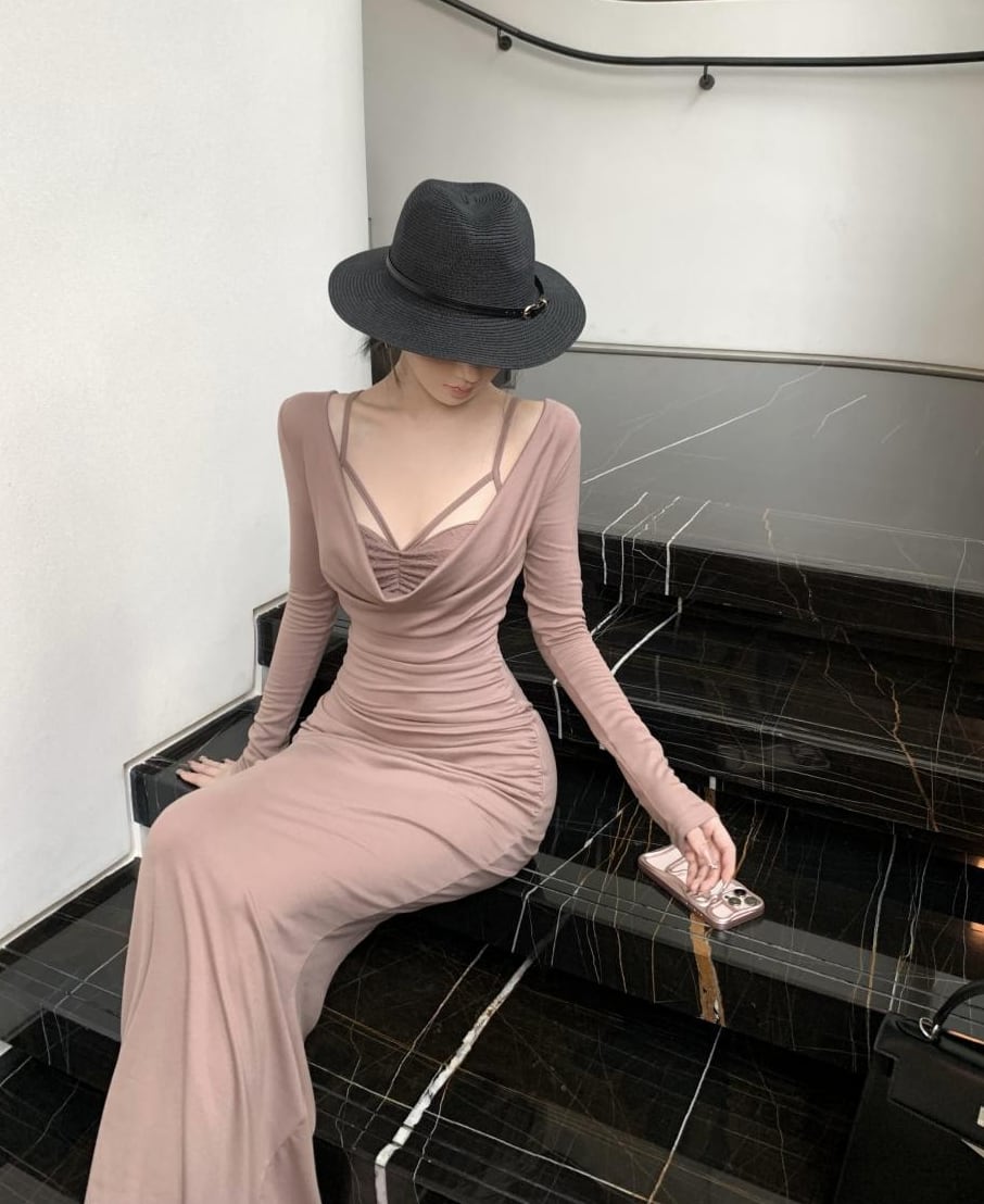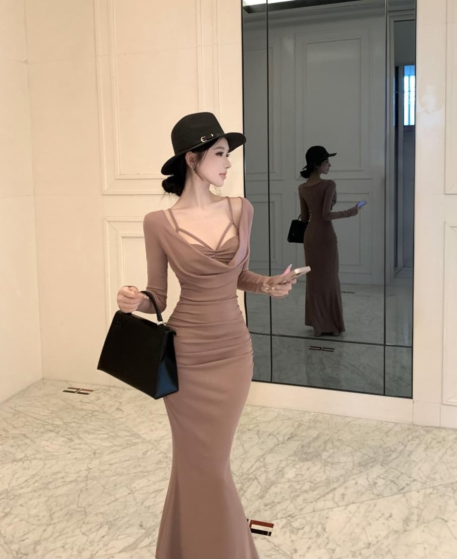 【dress】ストラップショルダーマーメイドワンピース Q7420