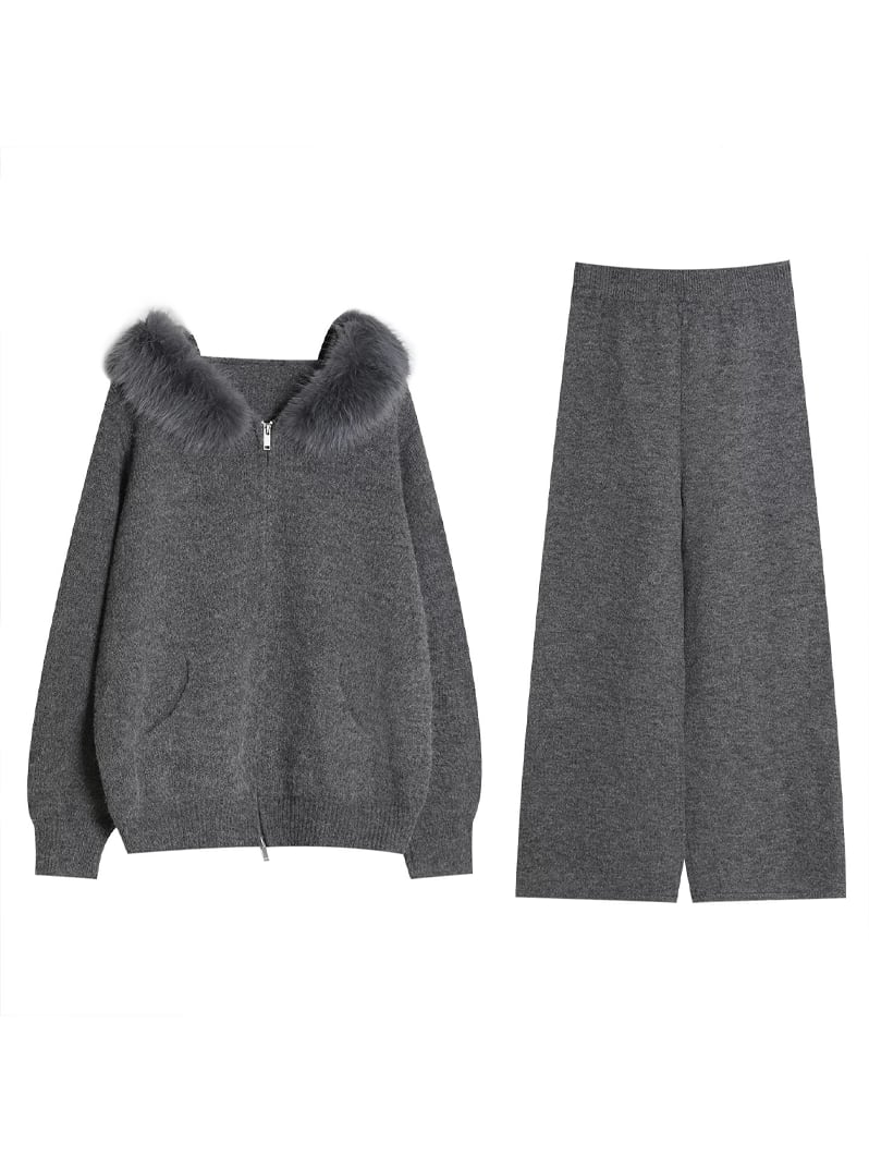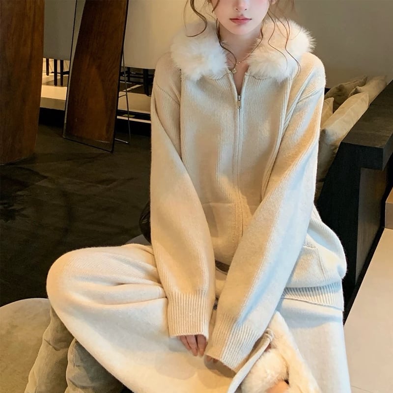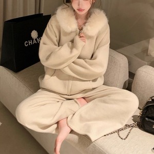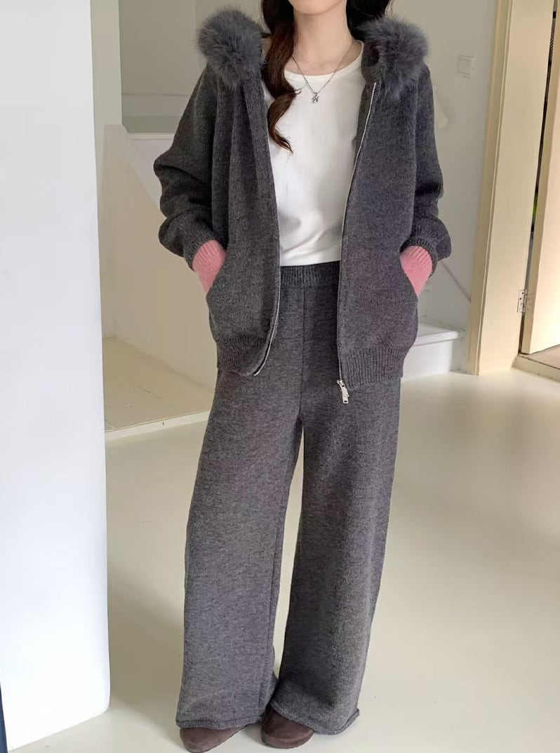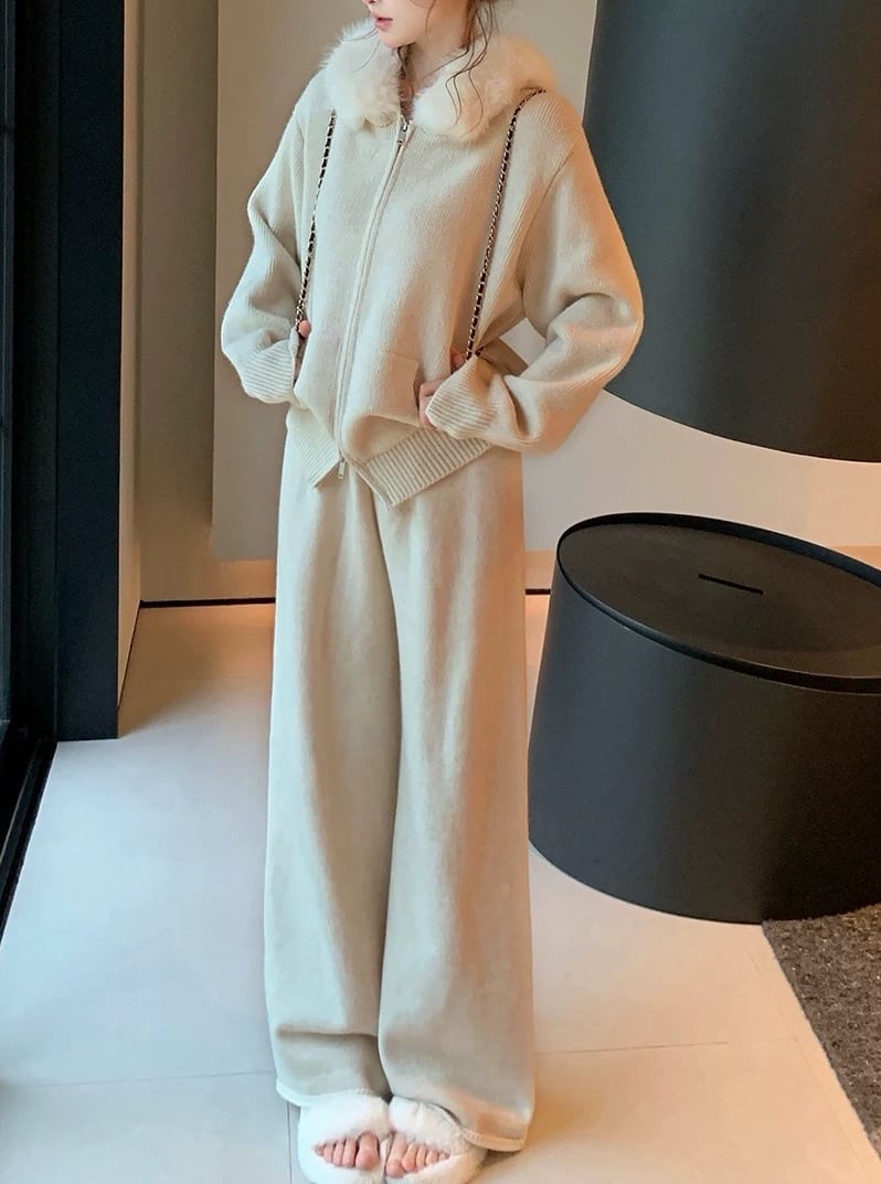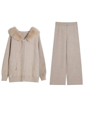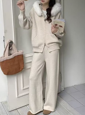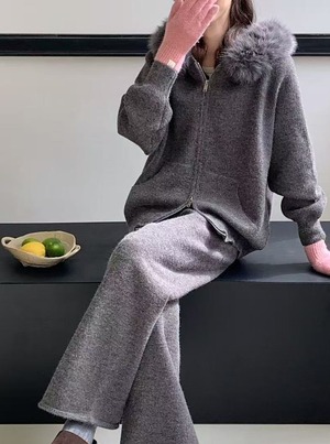 【set】Wジップニットカーディガン×ワイドパンツセット Q7428