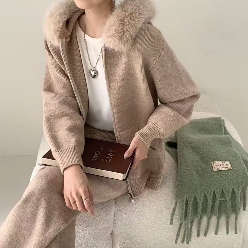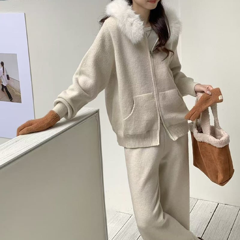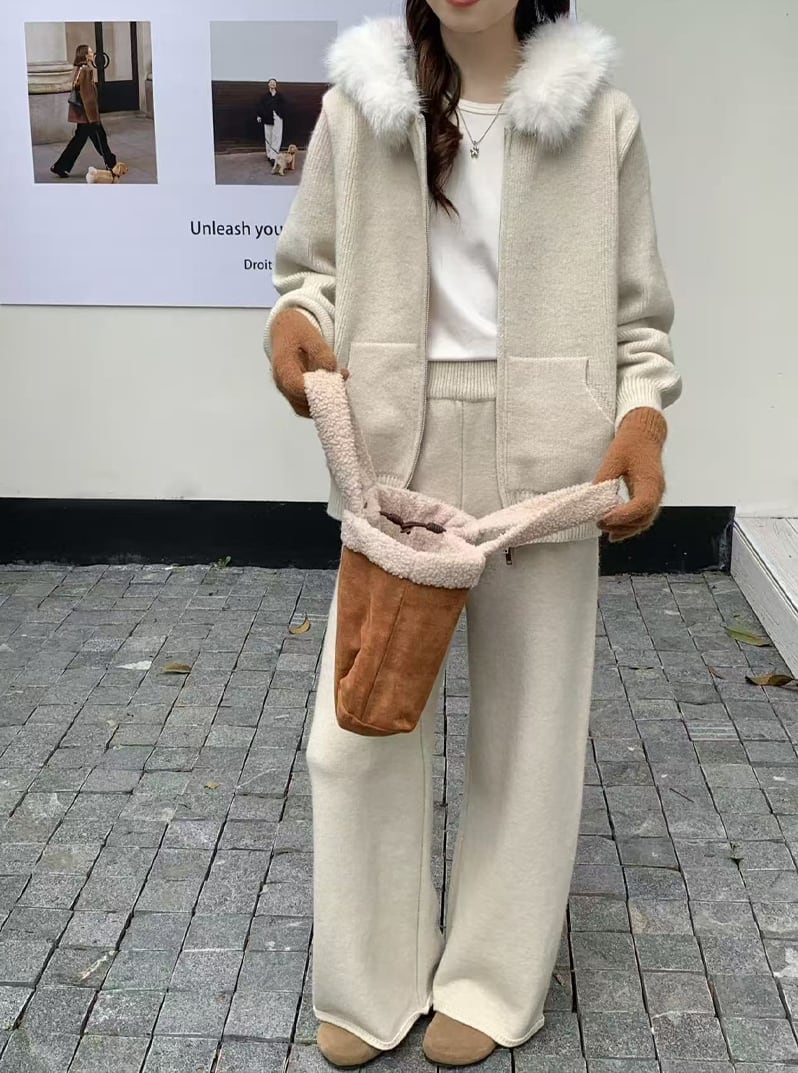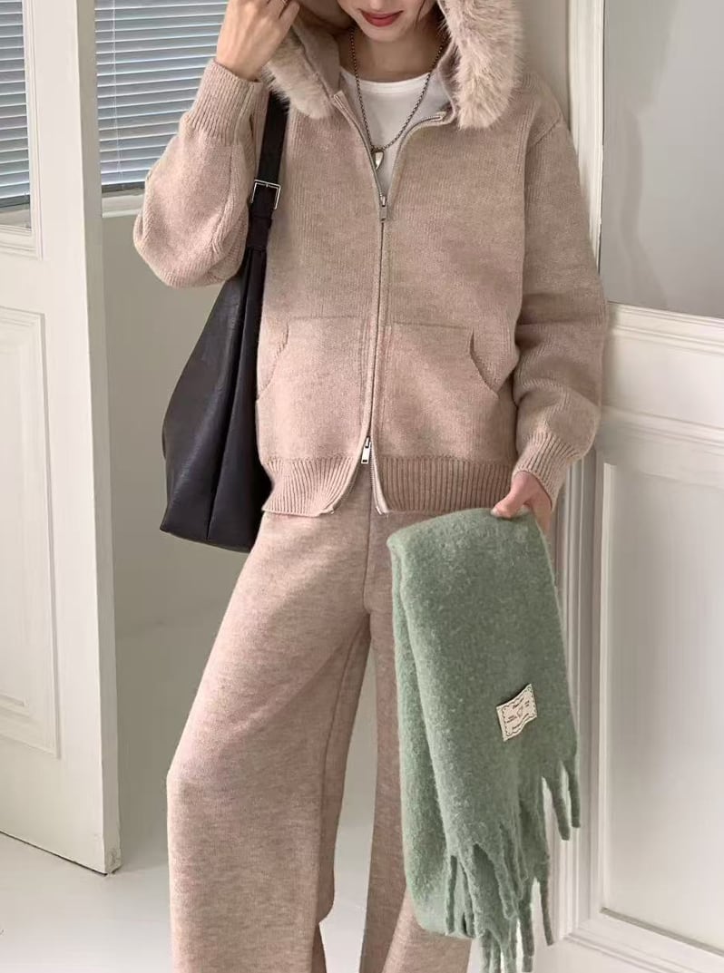 【set】Wジップニットカーディガン×ワイドパンツセット Q7428