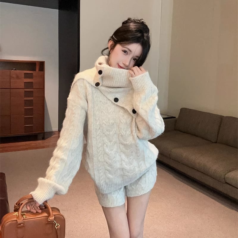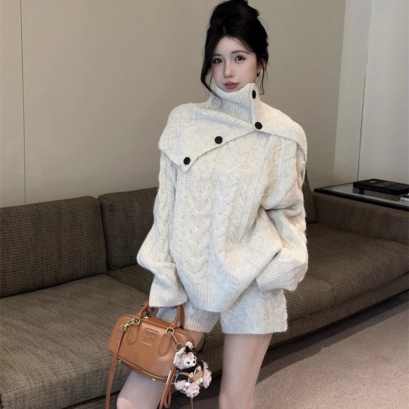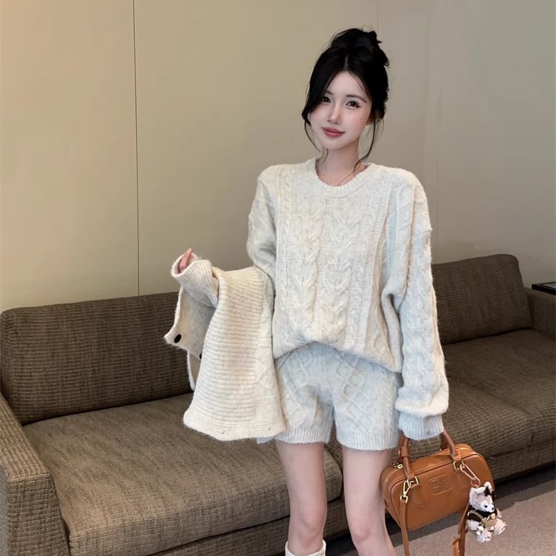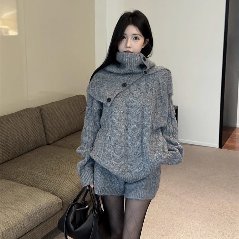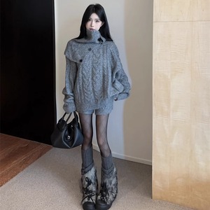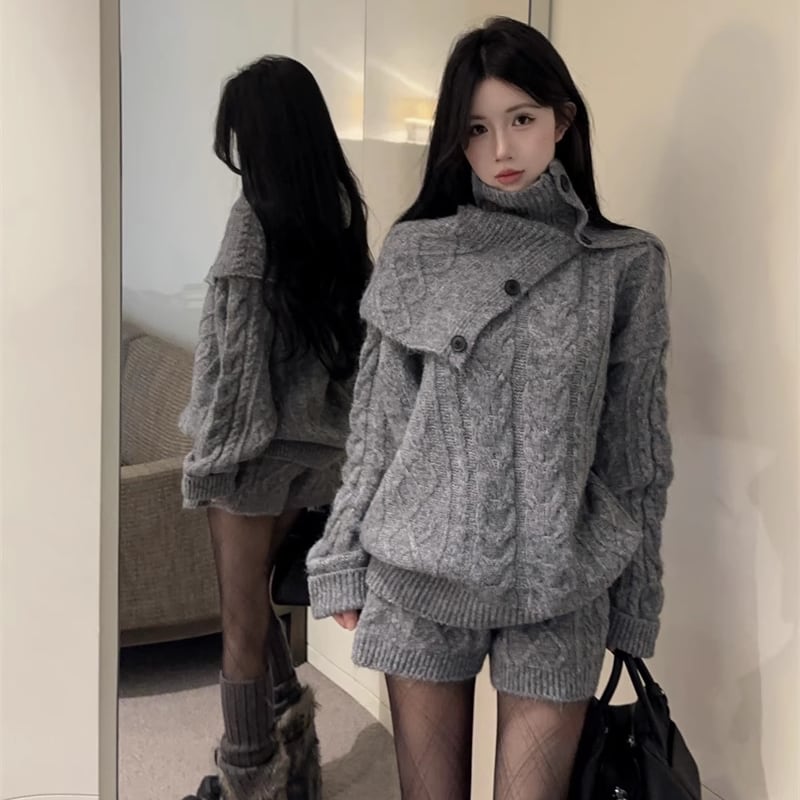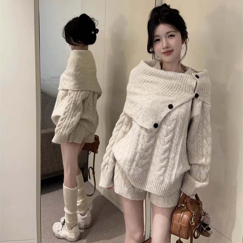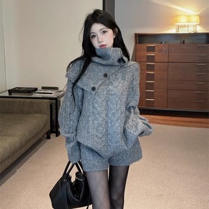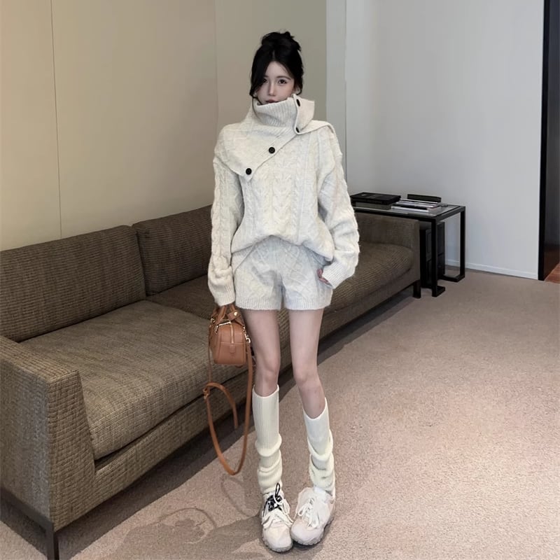 【set】ケープ×ニットトップス×ショートパンツ3点セット Q7441