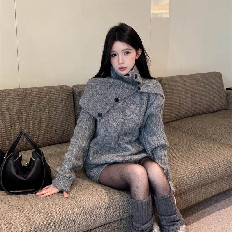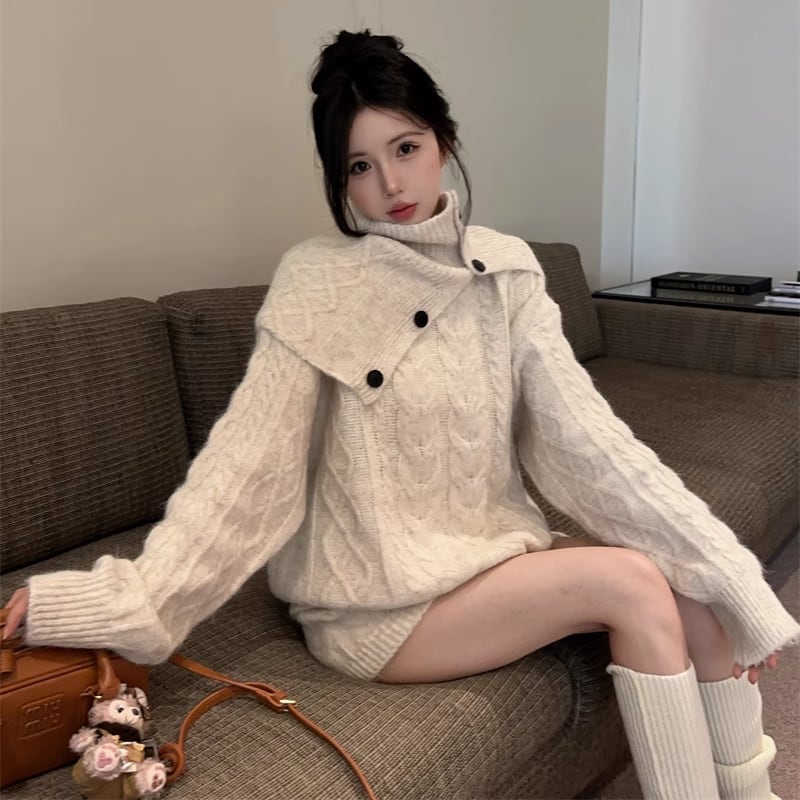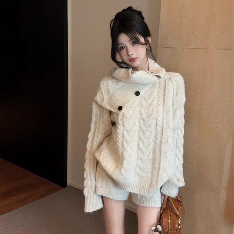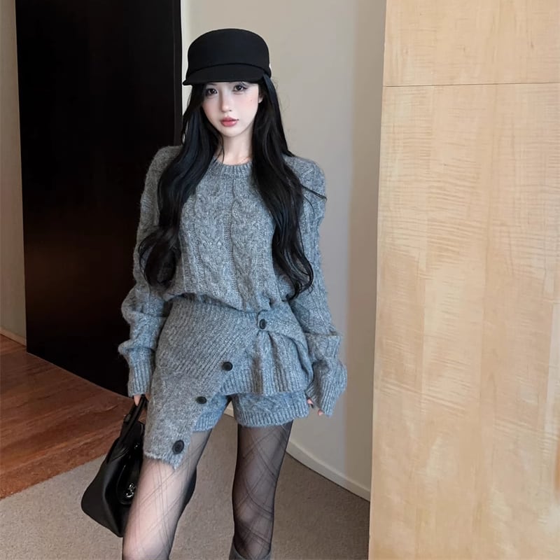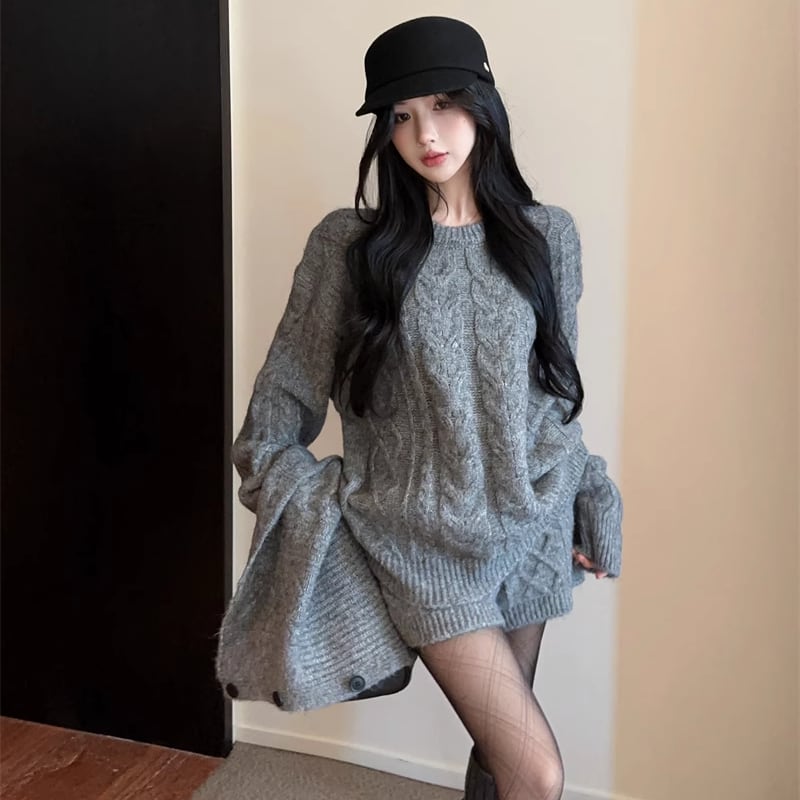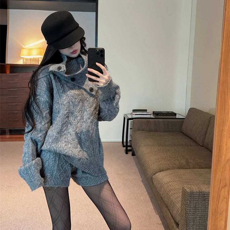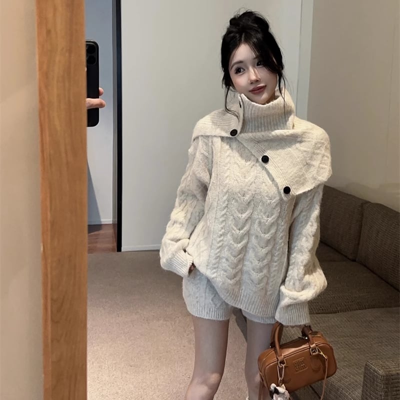 【set】ケープ×ニットトップス×ショートパンツ3点セット Q7441