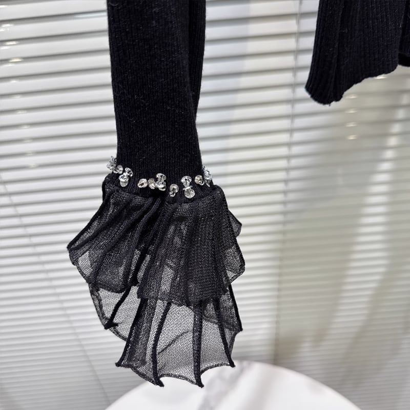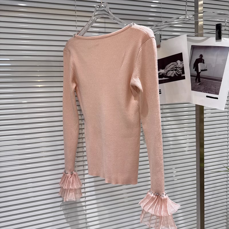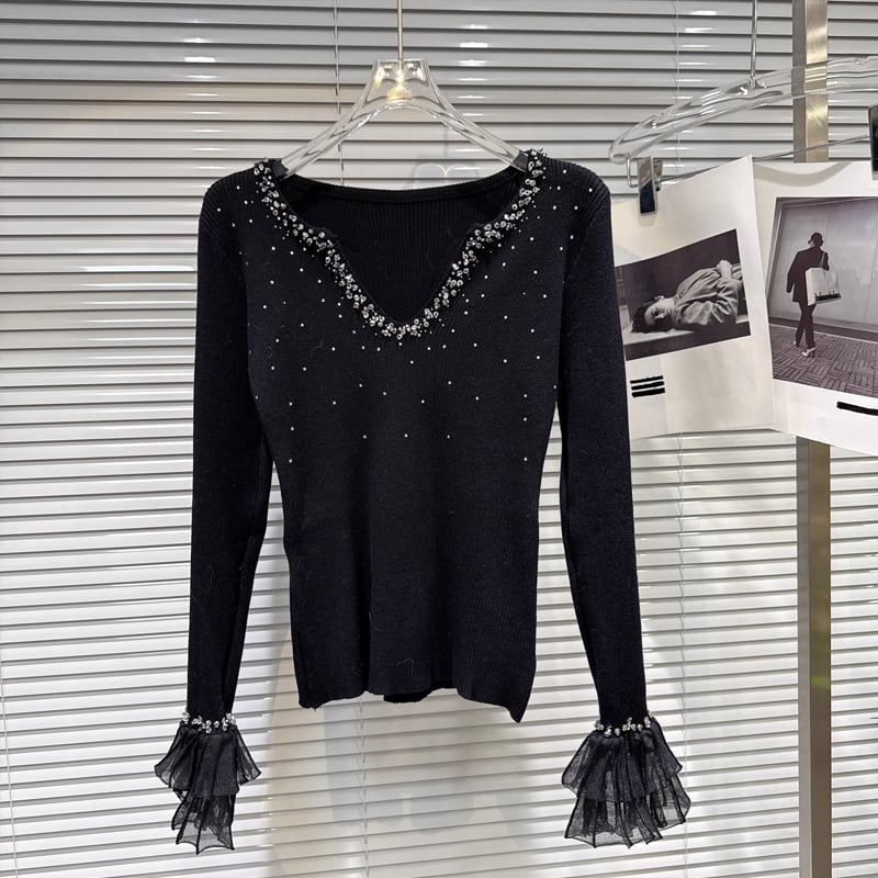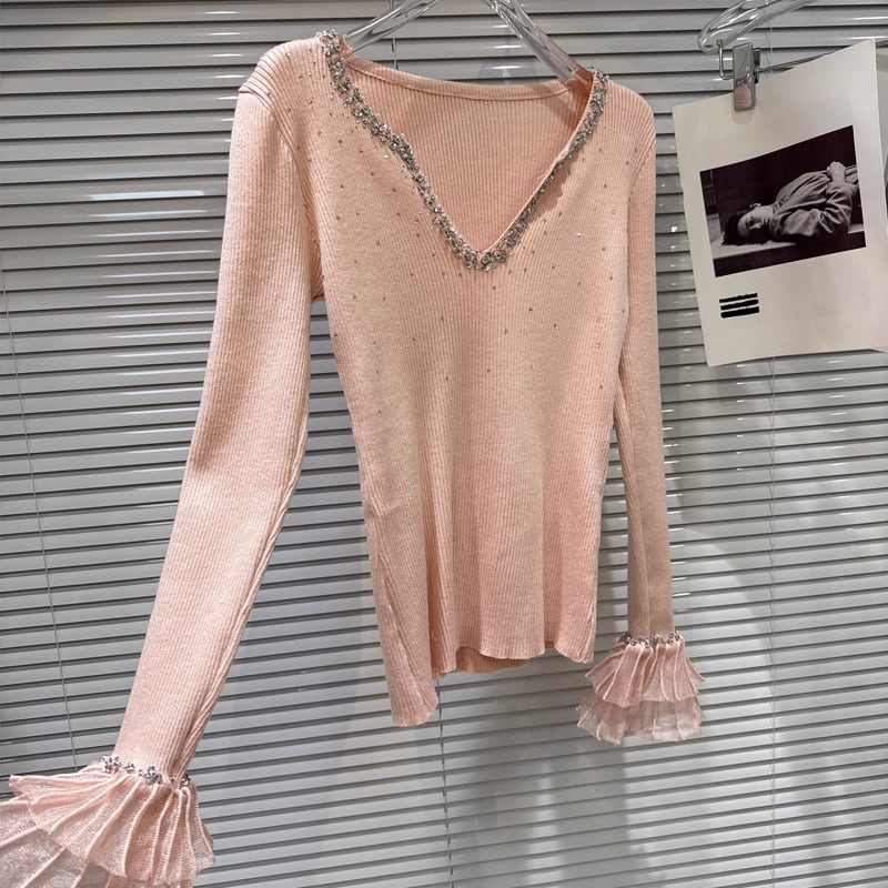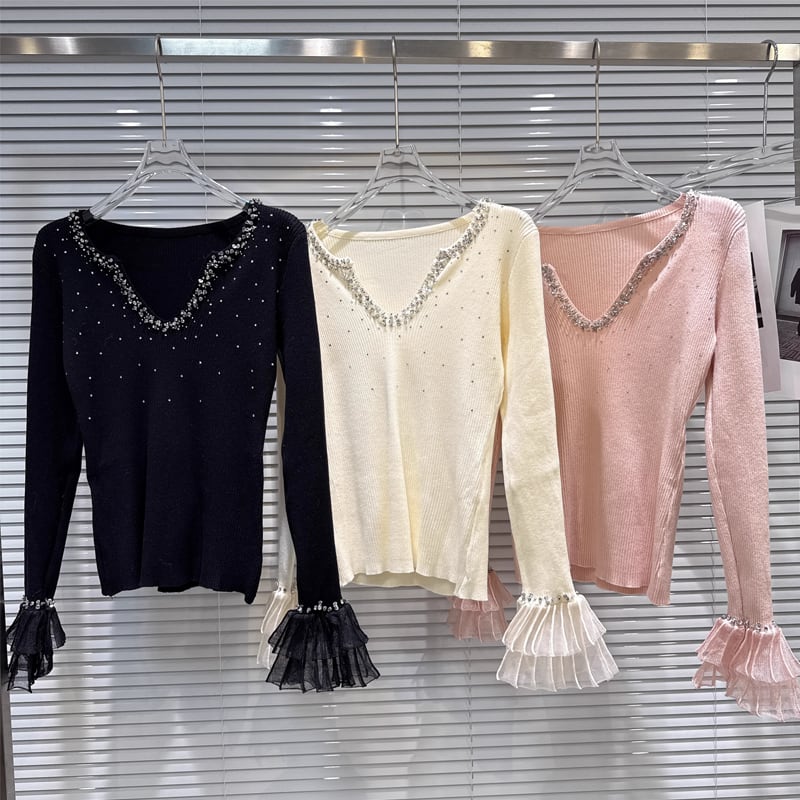 【tops】Vネックラインストーン付きニットトップス Q7445