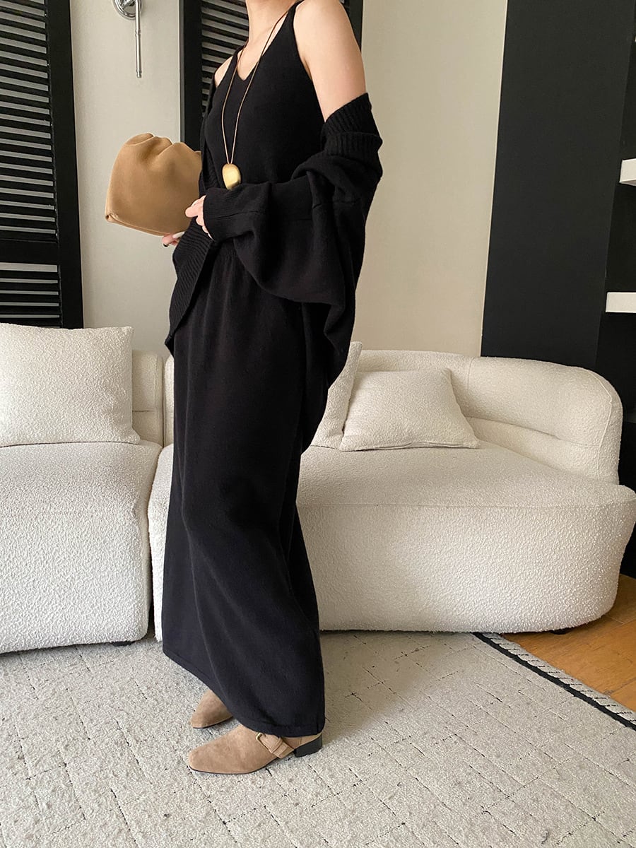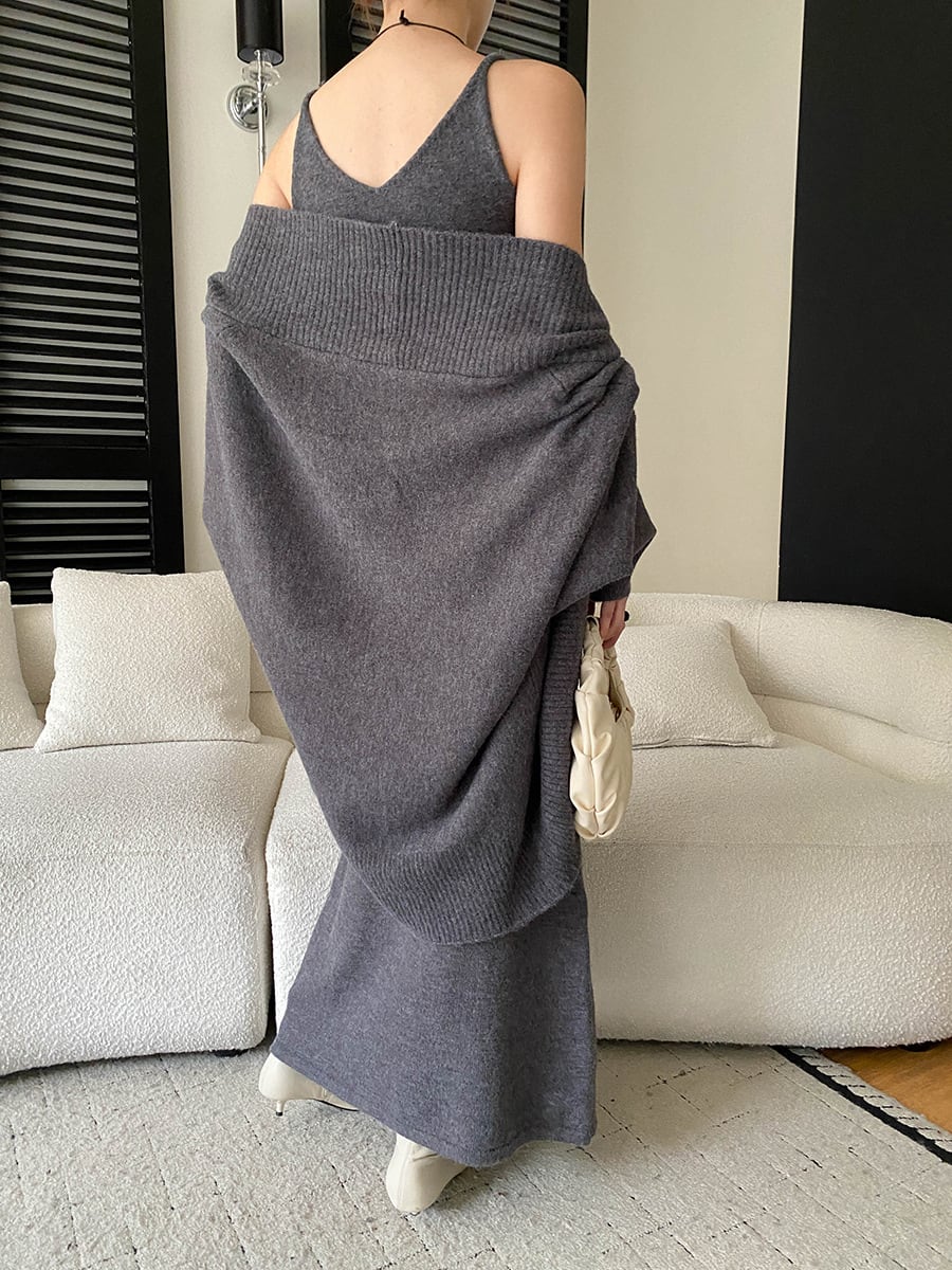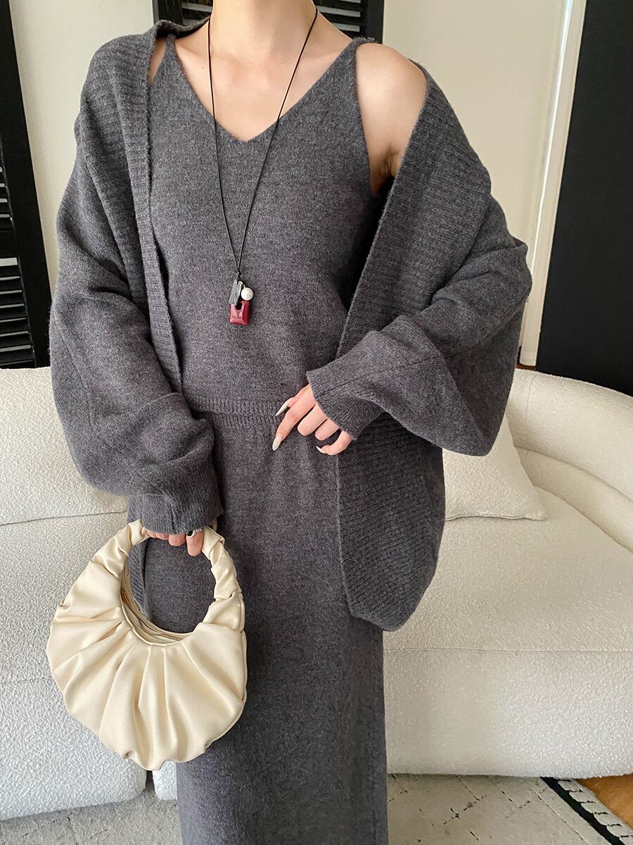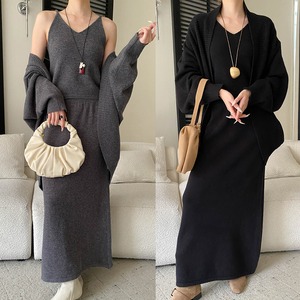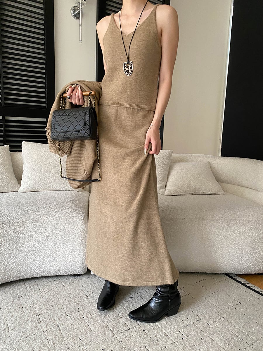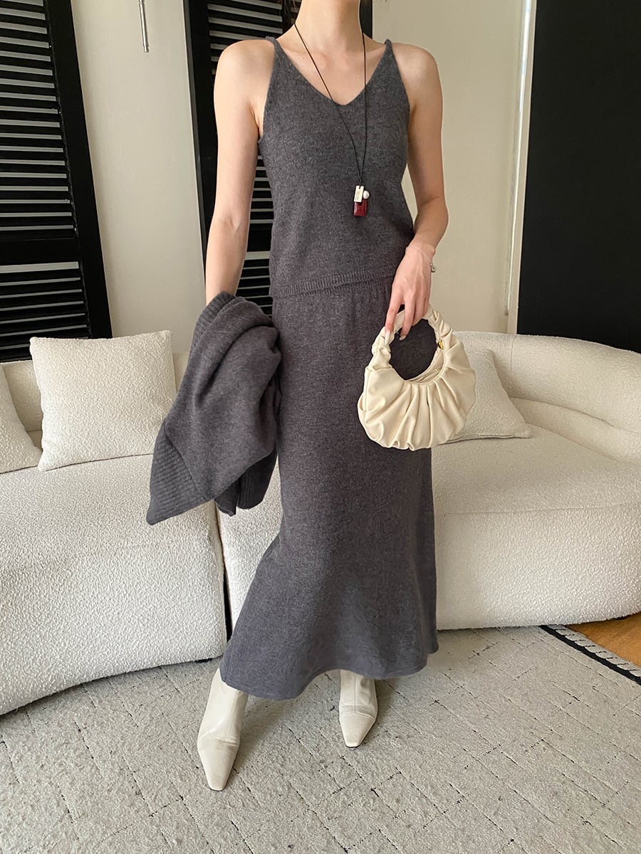 【set】ニットキャミ×カーディガン×ロングスカート3点セット Q7487
