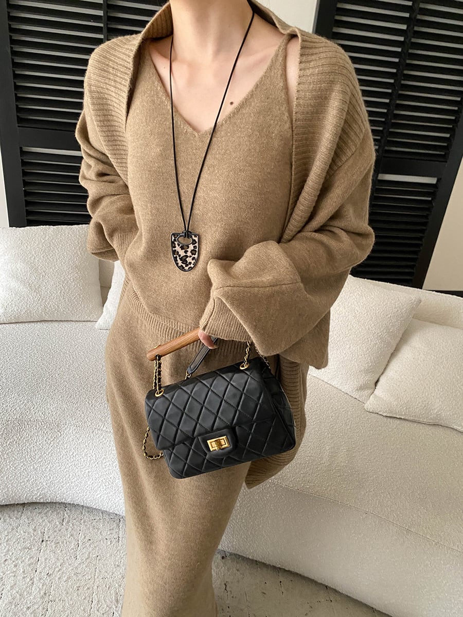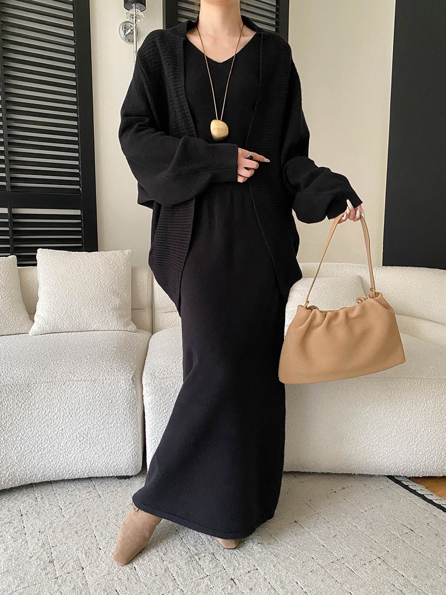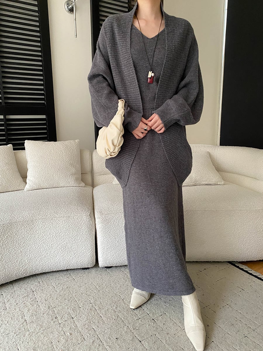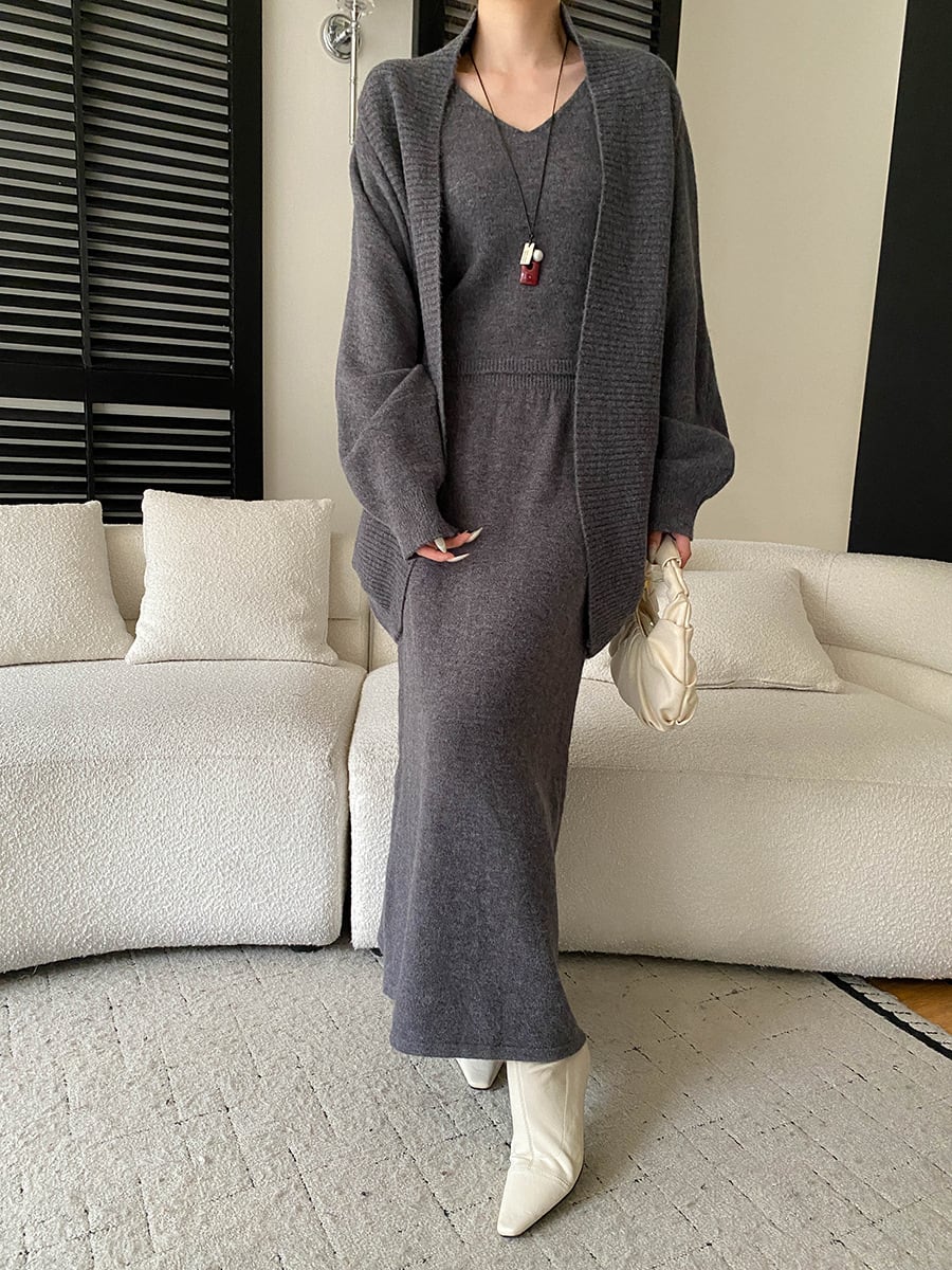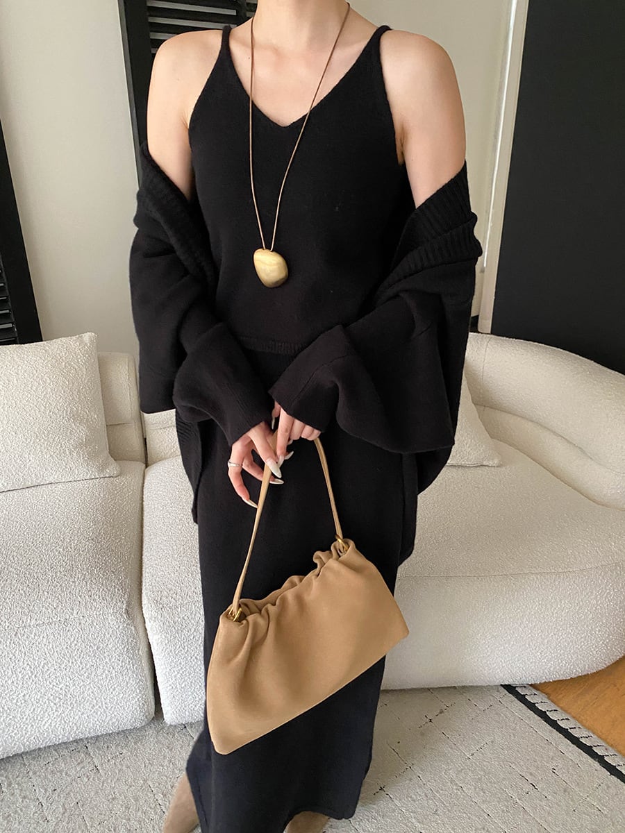 【set】ニットキャミ×カーディガン×ロングスカート3点セット Q7487