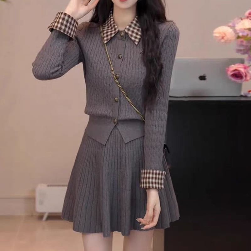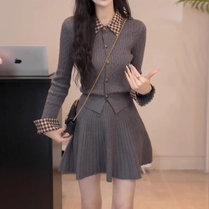 【set】ポロネックニットカーディガン×フレアスカートセット Q7491