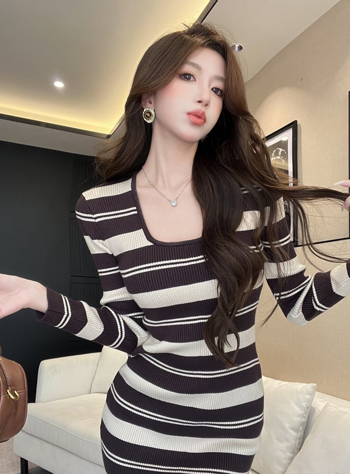 【dress】ボーダー柄ニットワンピース Q7494