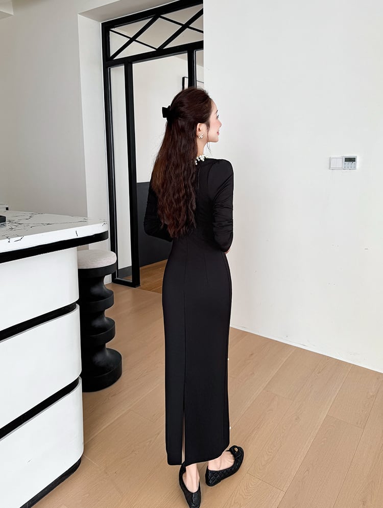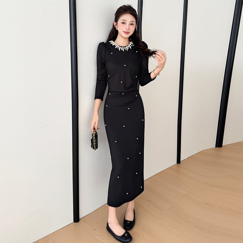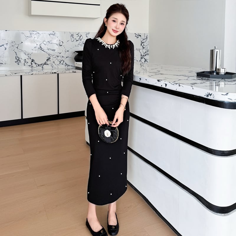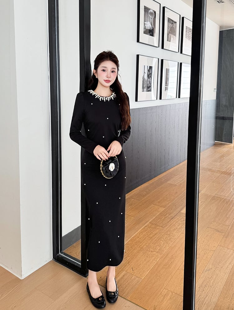 【dress】パール付きロングワンピース Q7500