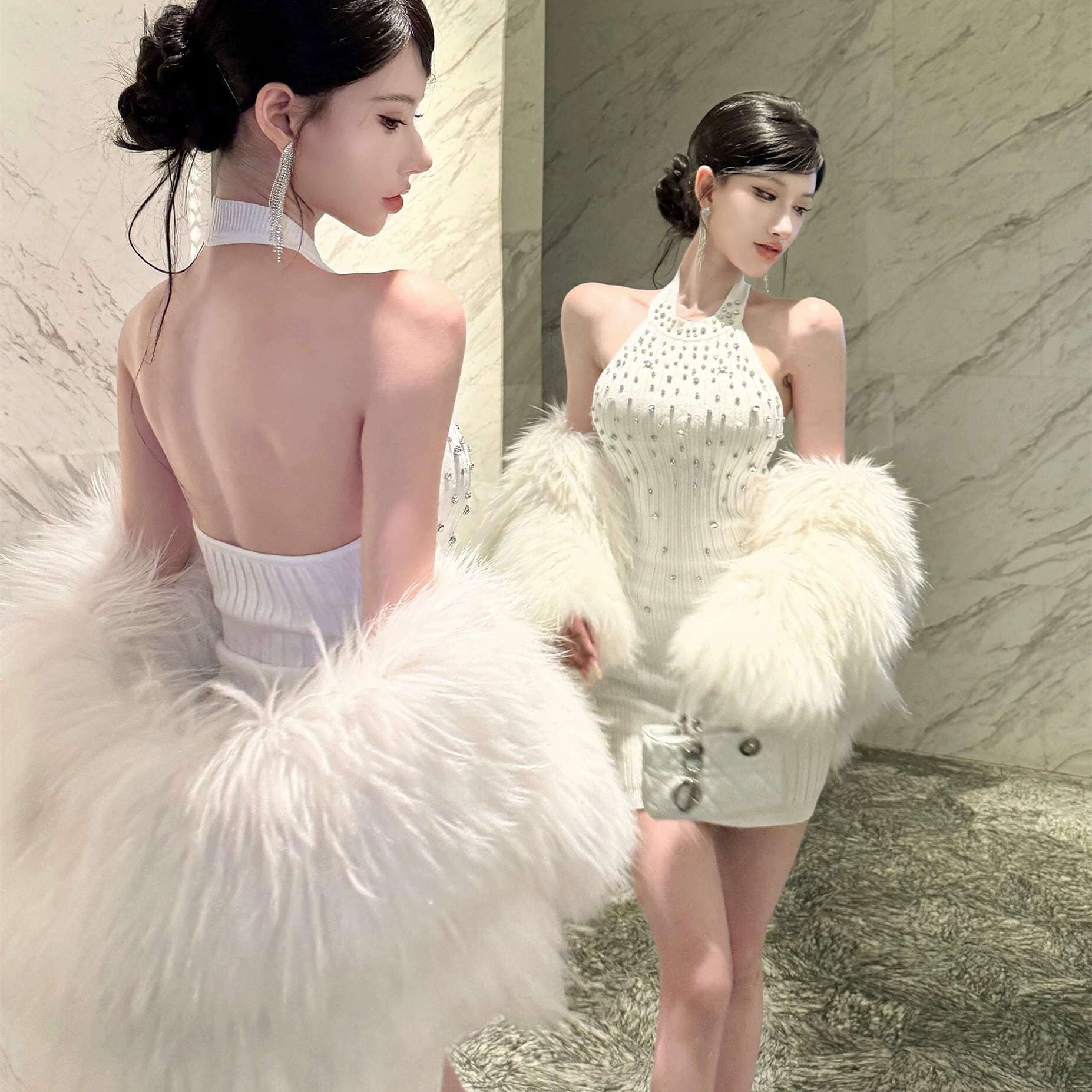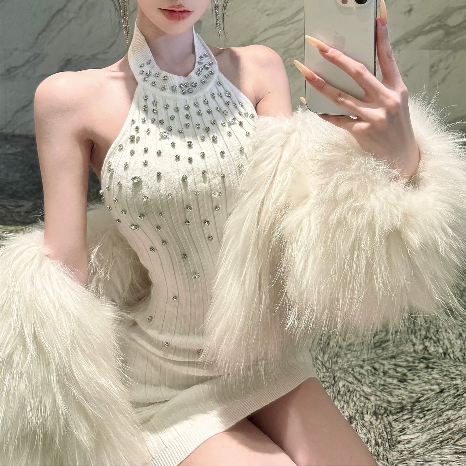【dress】ビジュー付きミニワンピース N3509