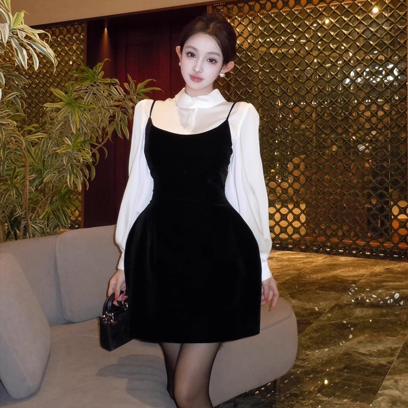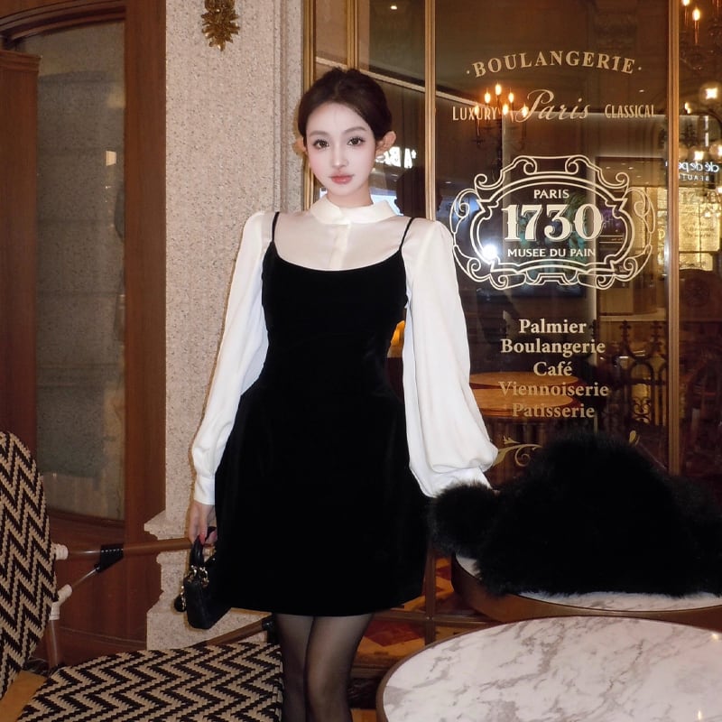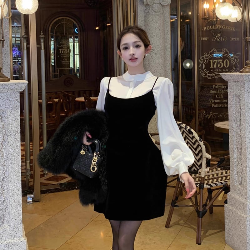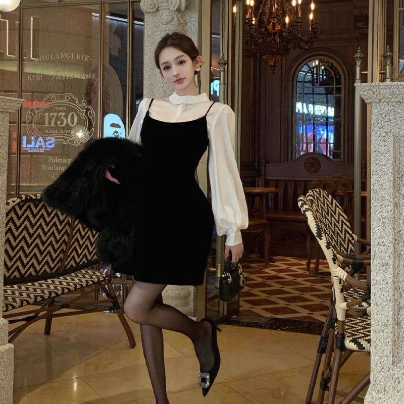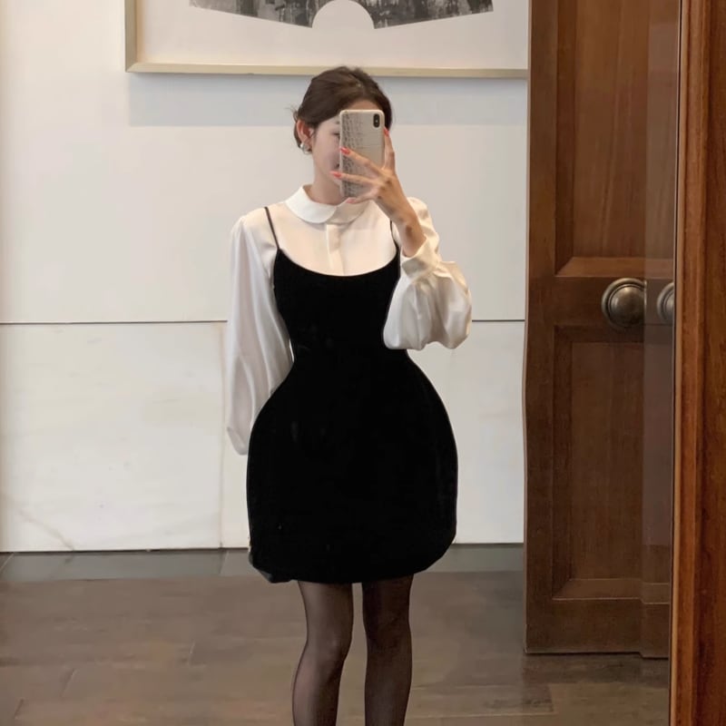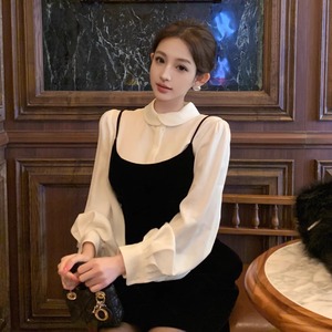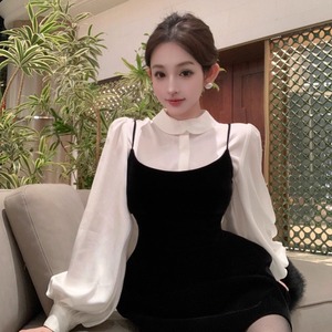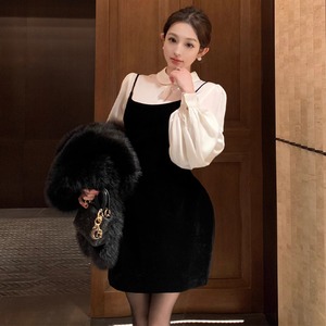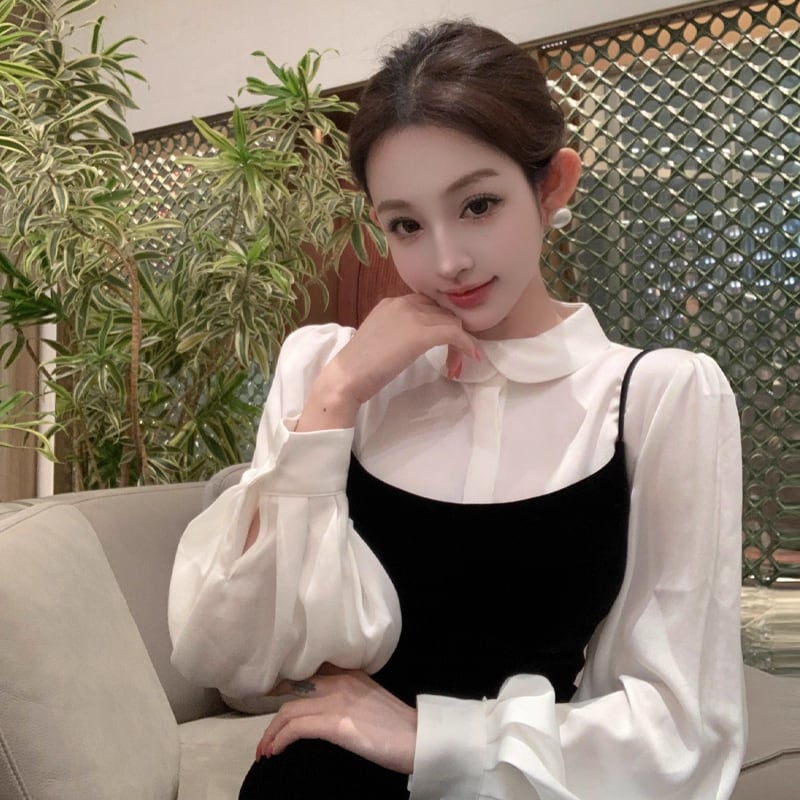 【set】バルーンスリーブシャツ×キャミワンピースセット Q7548