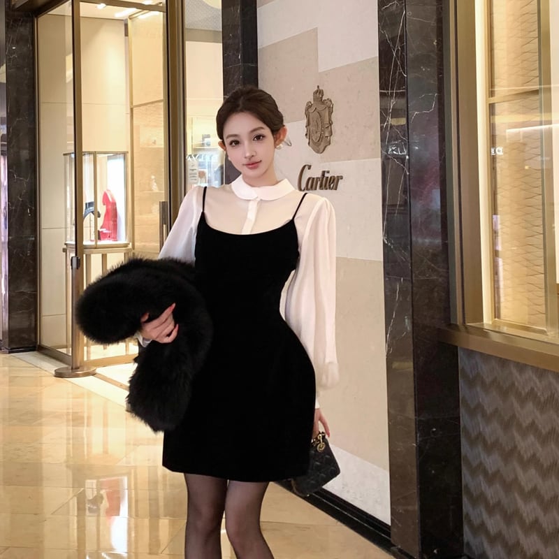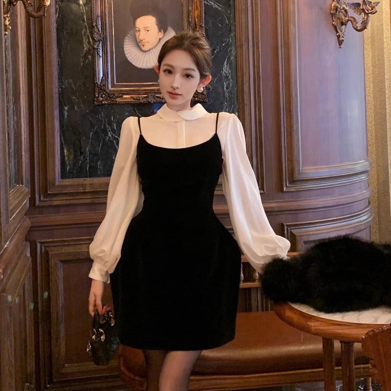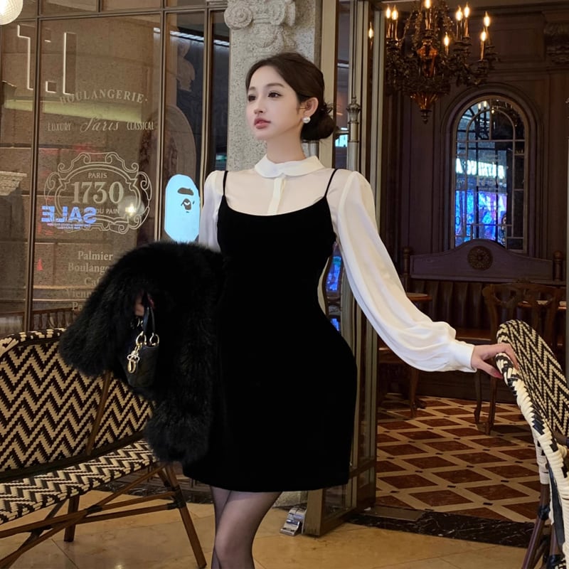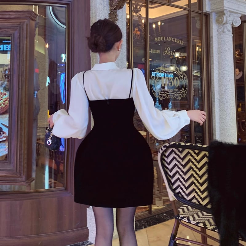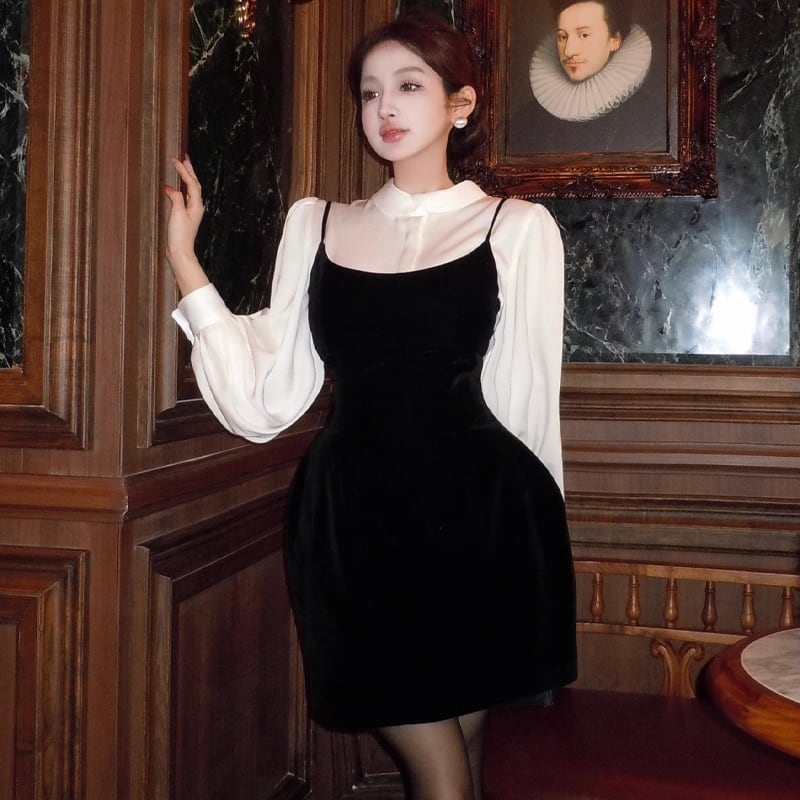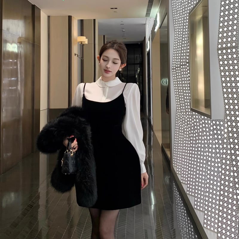 【set】バルーンスリーブシャツ×キャミワンピースセット Q7548