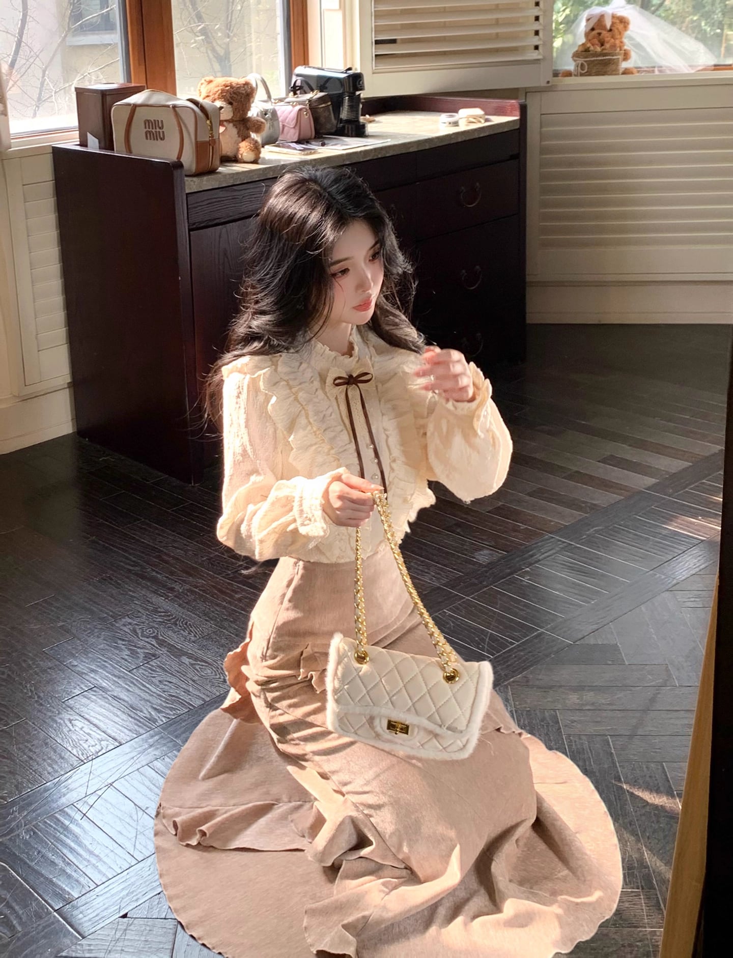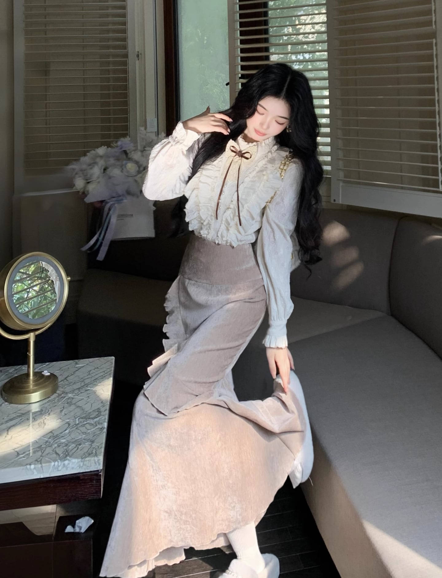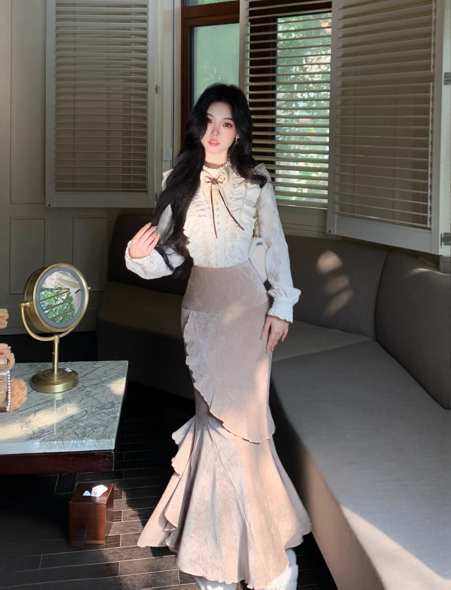 【set】ギャザーフリルシャツ×イレヘムマーメイドスカートセット Q7552