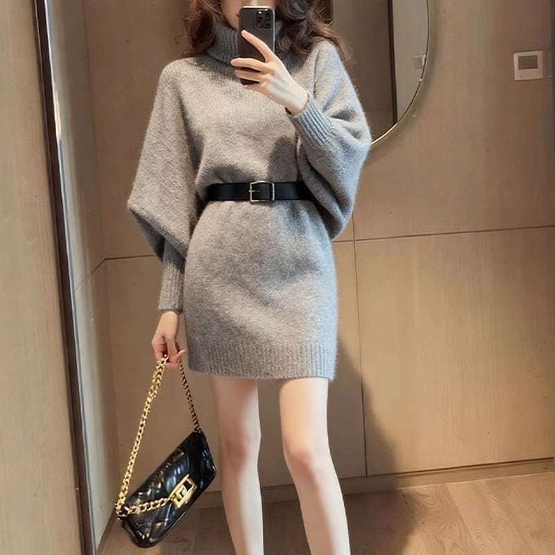 【dress】ハイネックニットワンピース Q7554