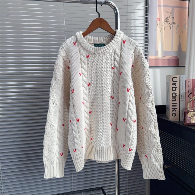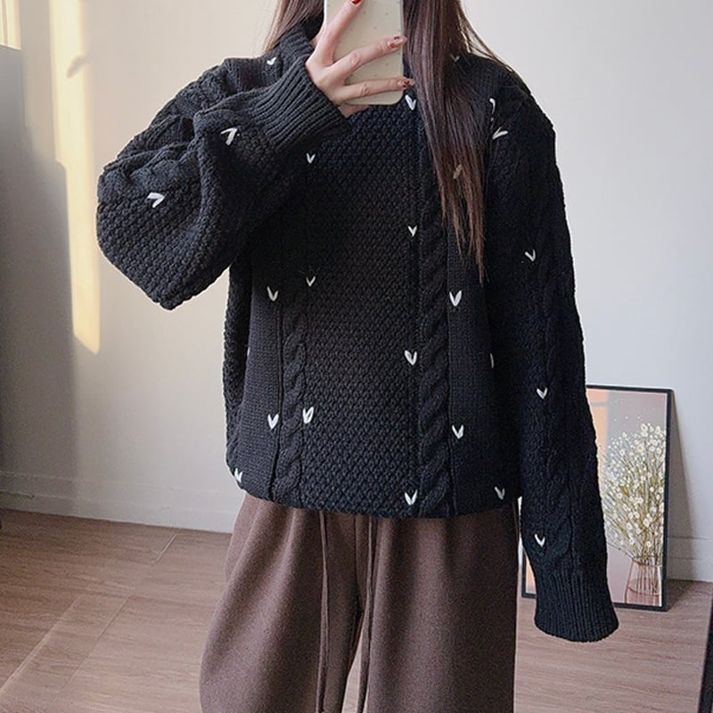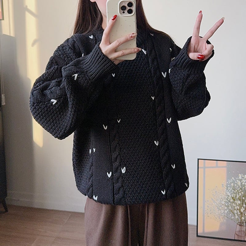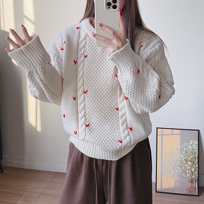 【tops】ハート柄ニットトップス Q7569