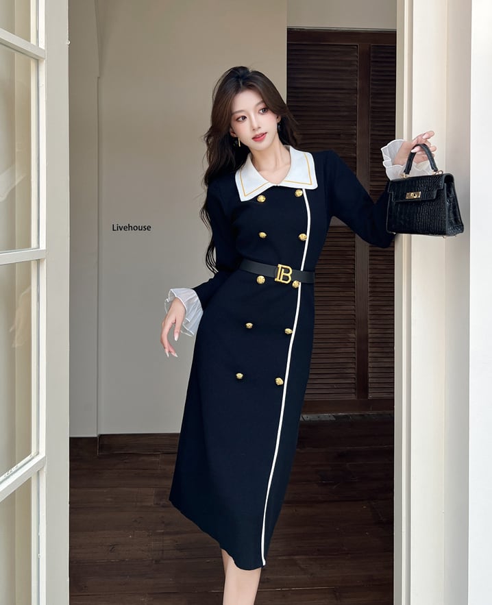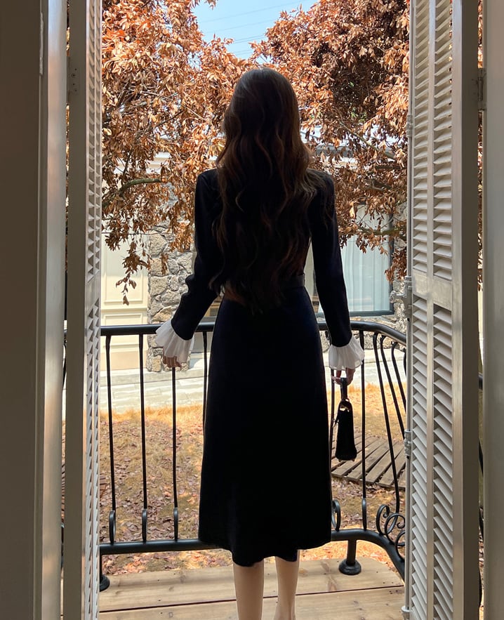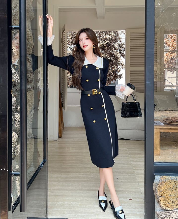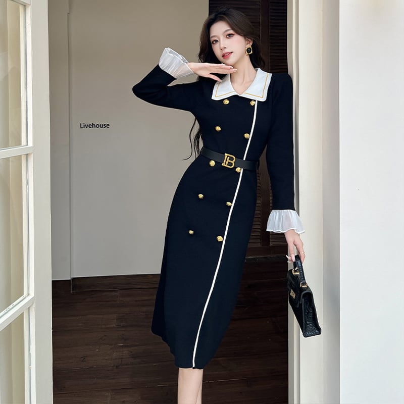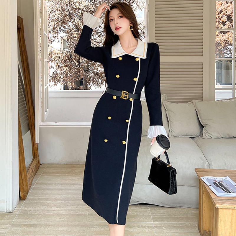 【dress】レースドッキングニットワンピース Q7584