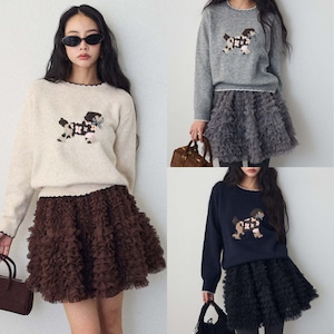 【set】ニットトップス×チュールミニスカートセット Q7590