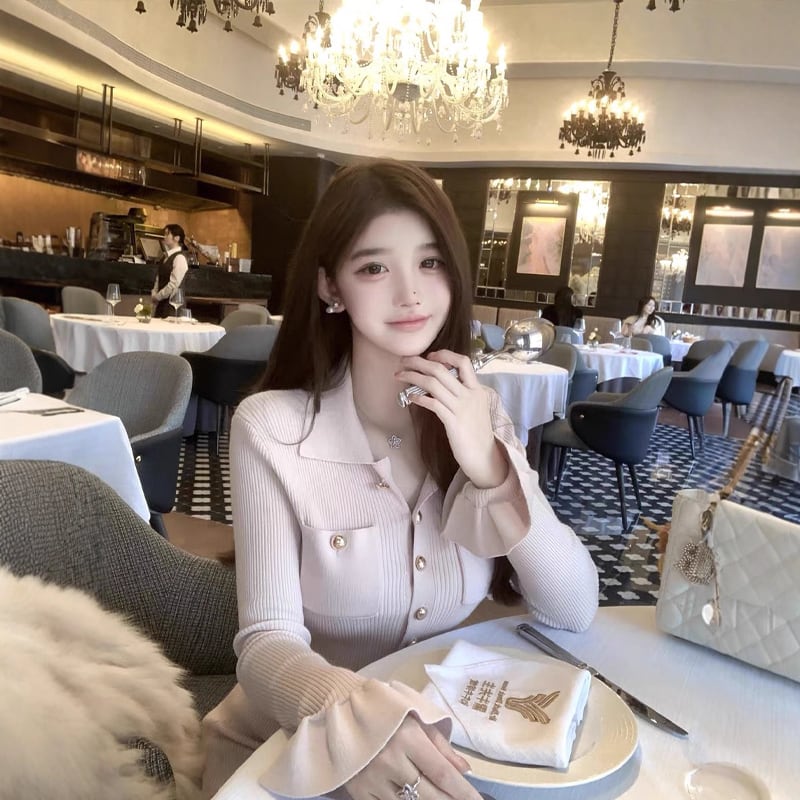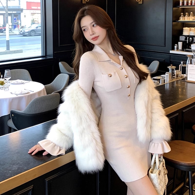 【dress】ポロネックニットワンピース Q759