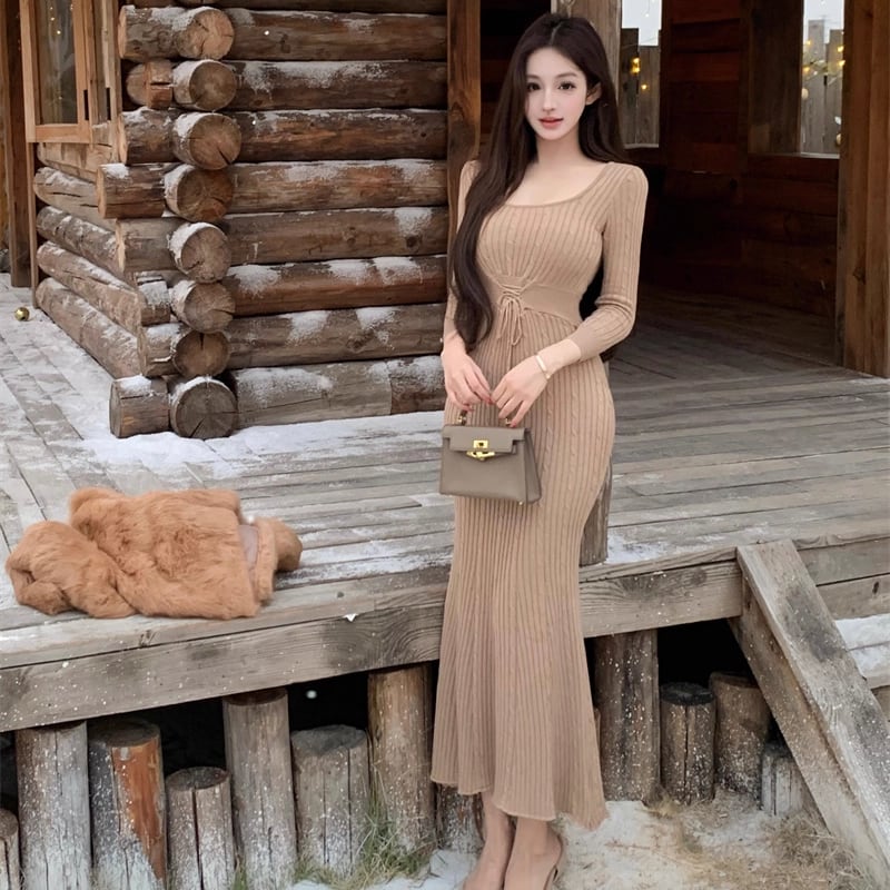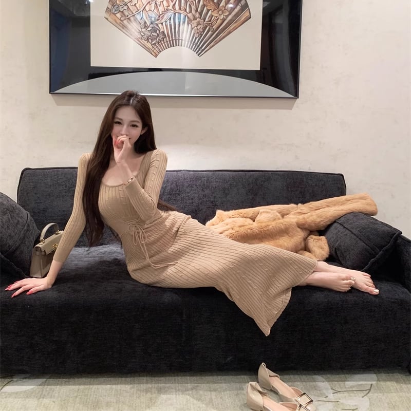 【dress】ロングニットワンピース Q7601