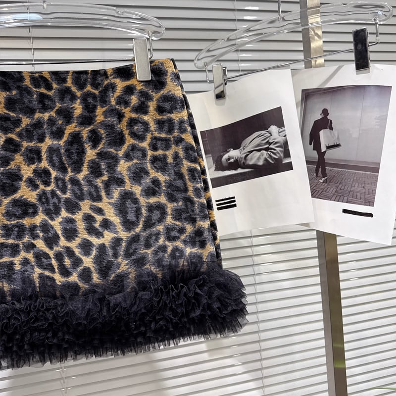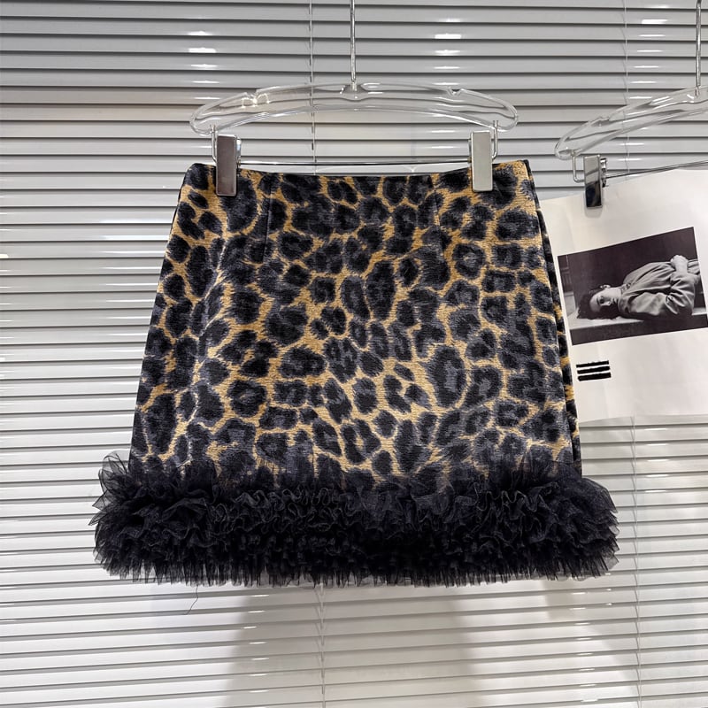 【bottoms】ギャザーフリルヒョウ柄タイトスカート Q7605