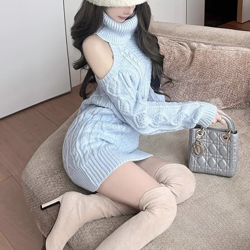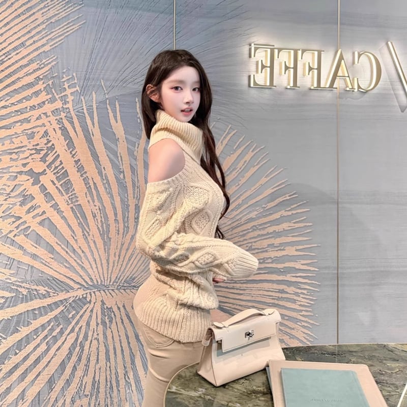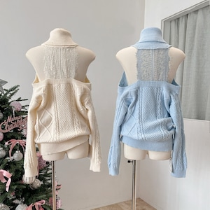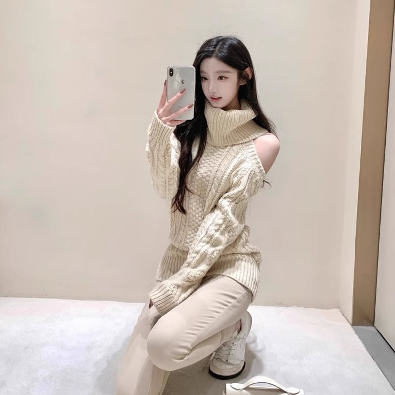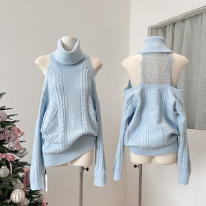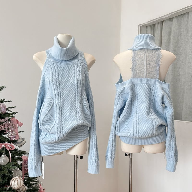 【tops】ハイネックレースドッキングニットトップス Q7630