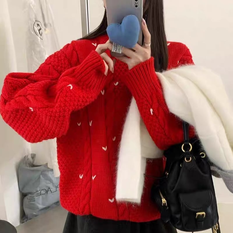 【tops】ハート柄ニットトップス Q7690