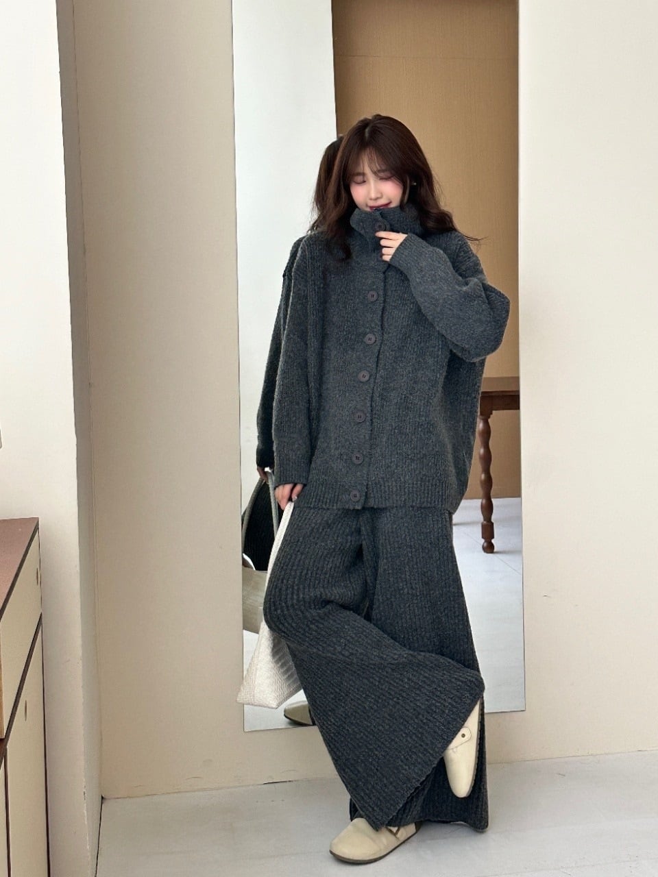 【set】ハイネックニットカーディガン×ワイドパンツセット Q7692