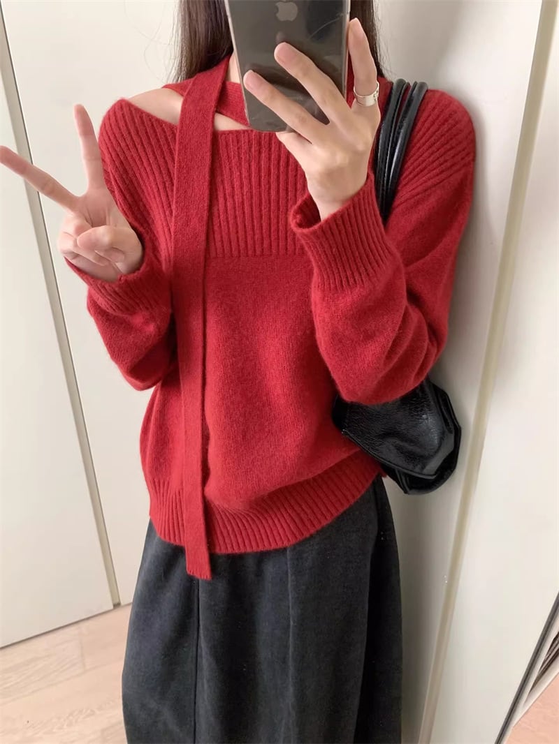 【tops】オープンショルダーニットトップス Q7706