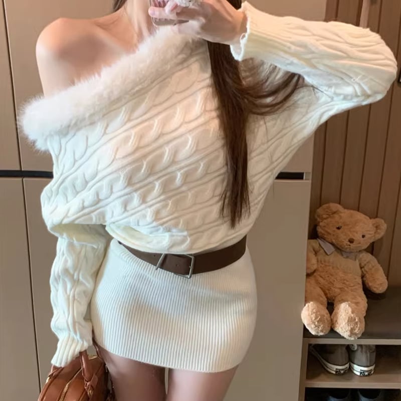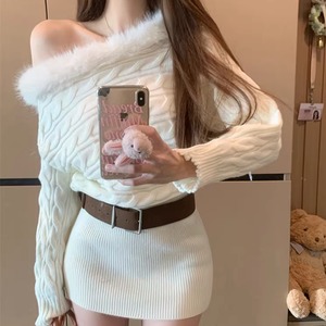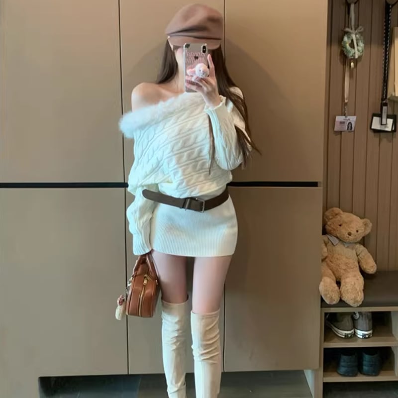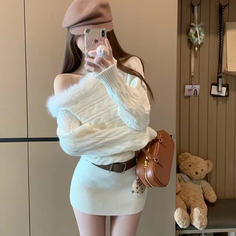 【dress】ファードッキングオフショルダーニットワンピース Q7731