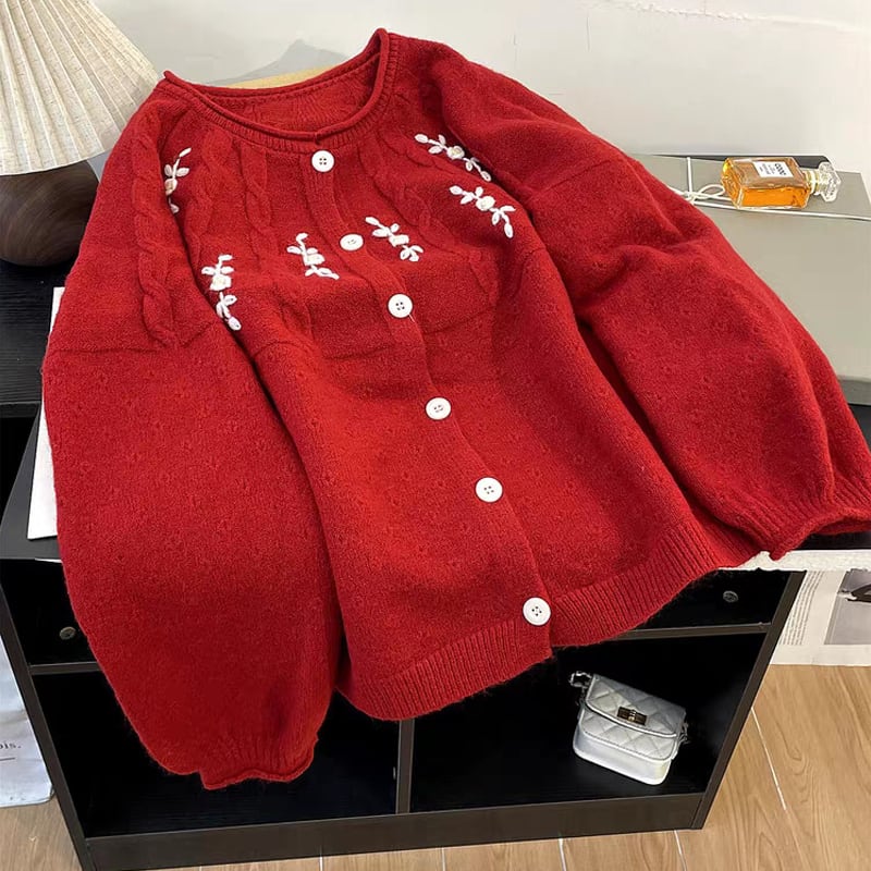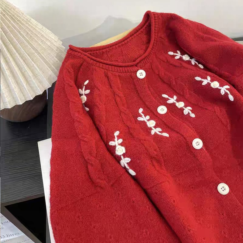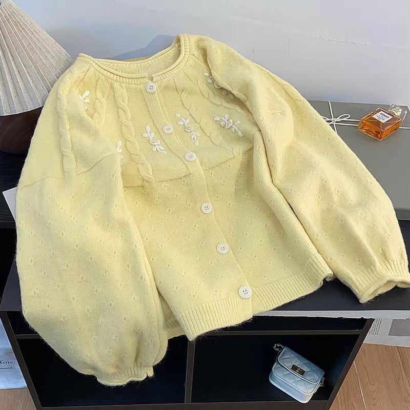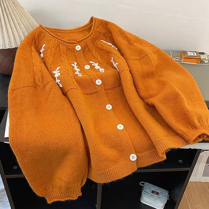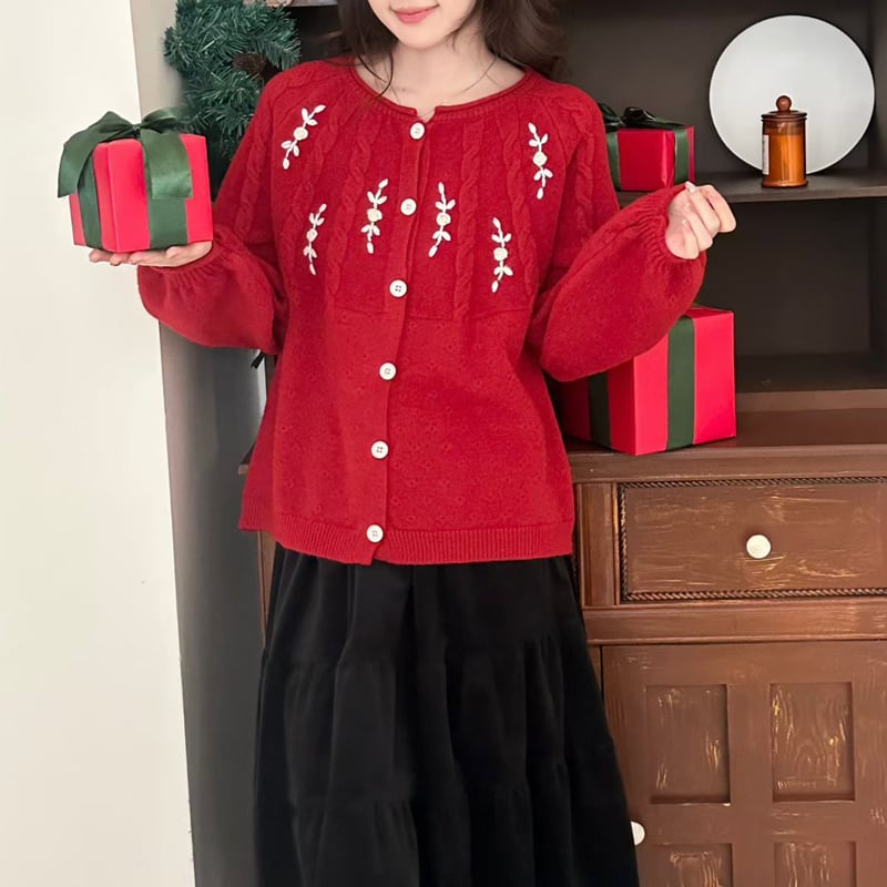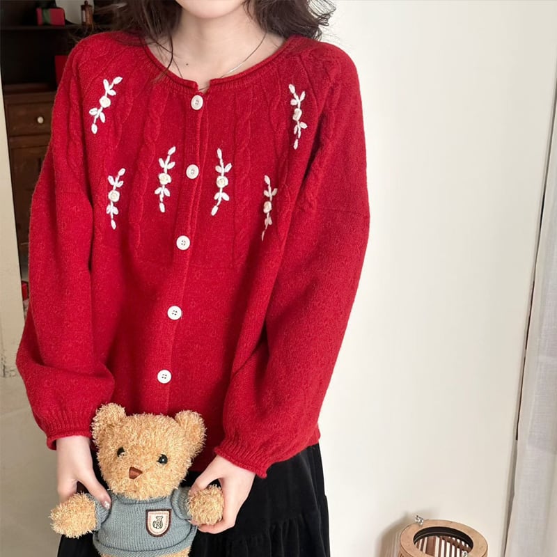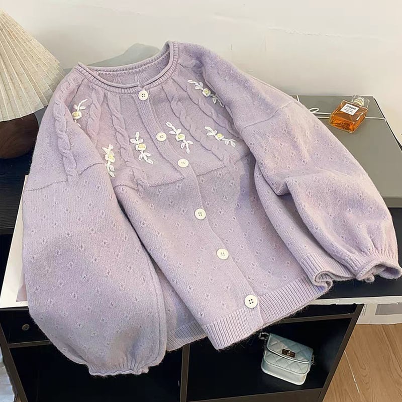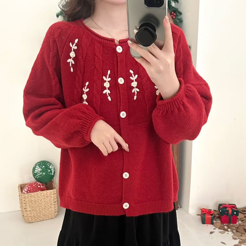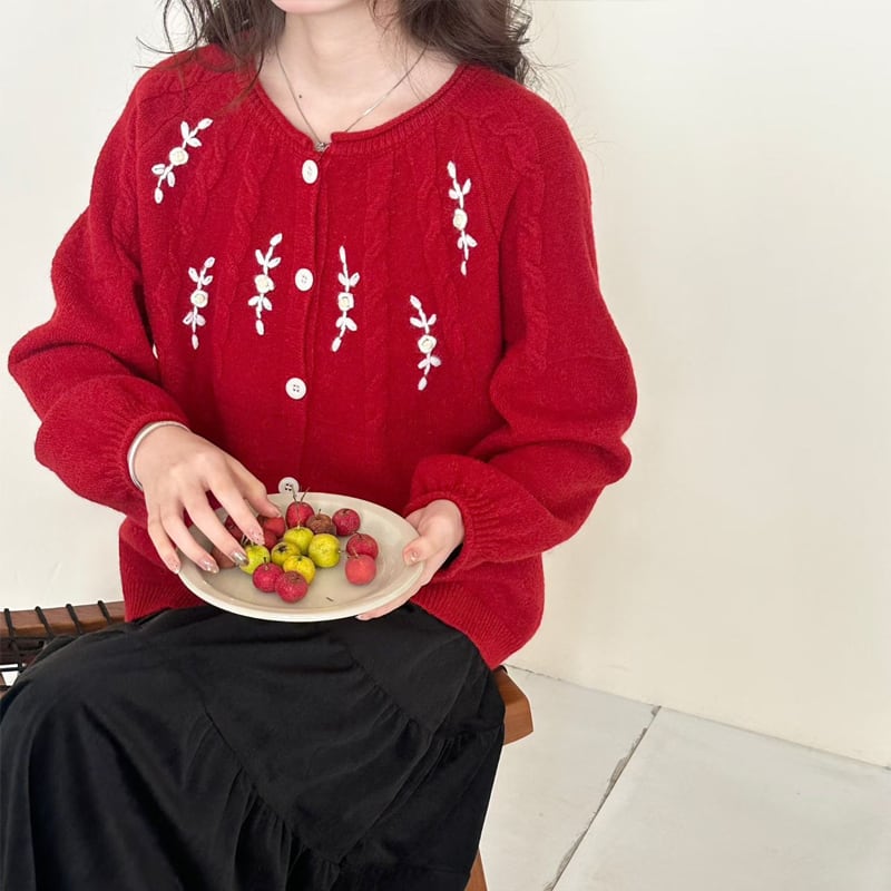 【outer】フラワー刺繡柄ニットカーディガン Q7739