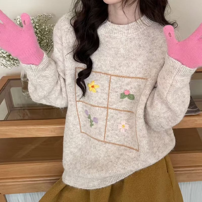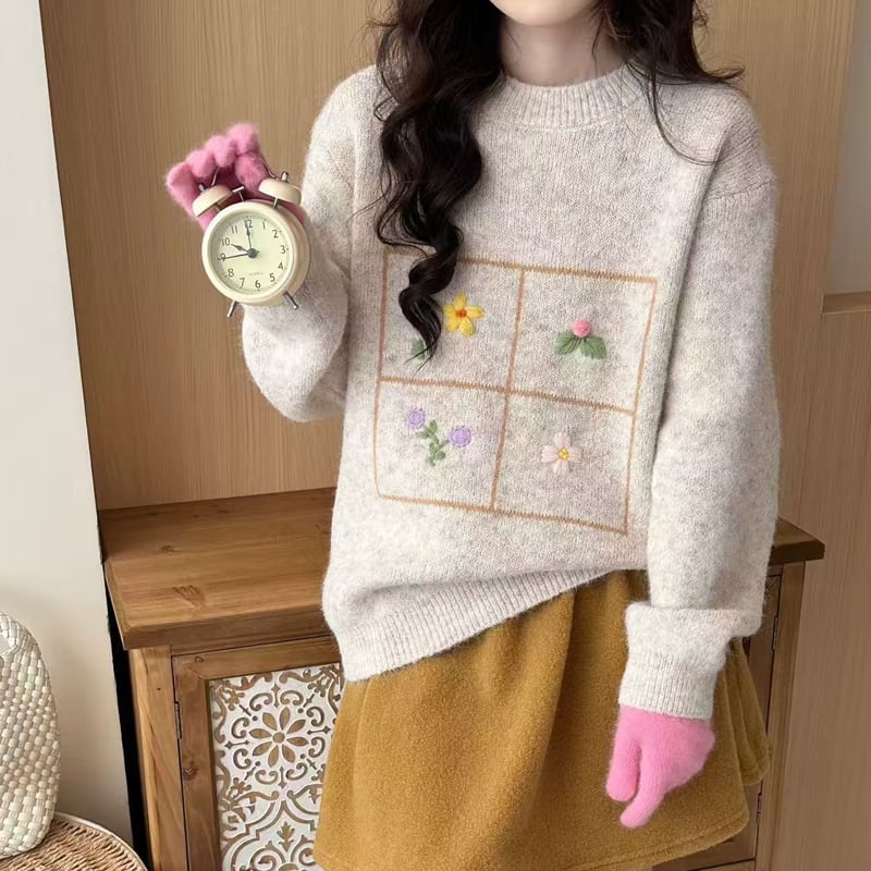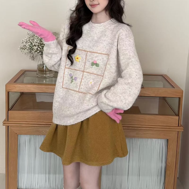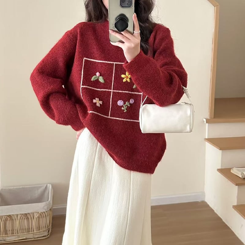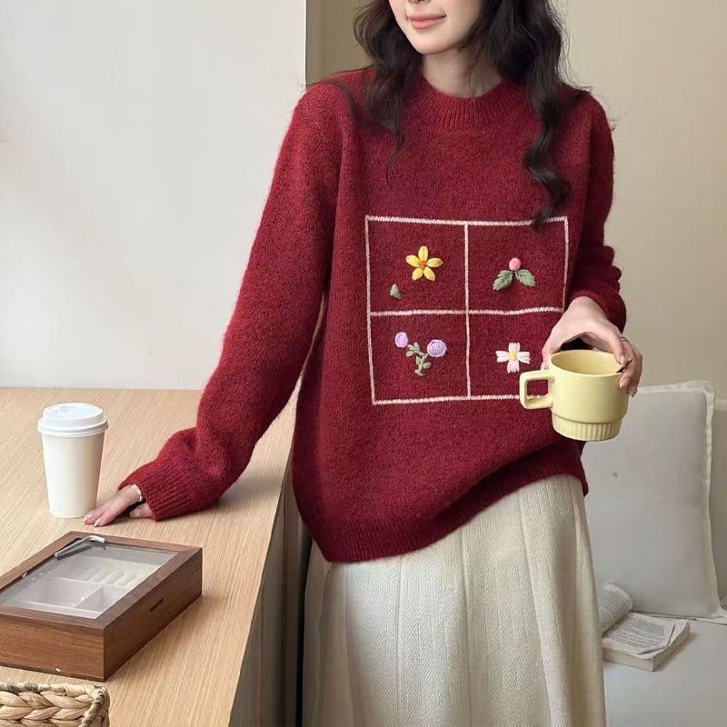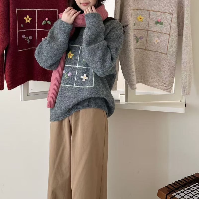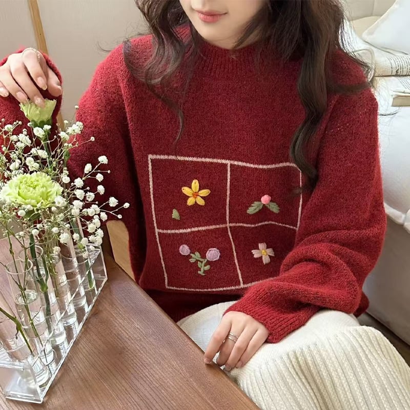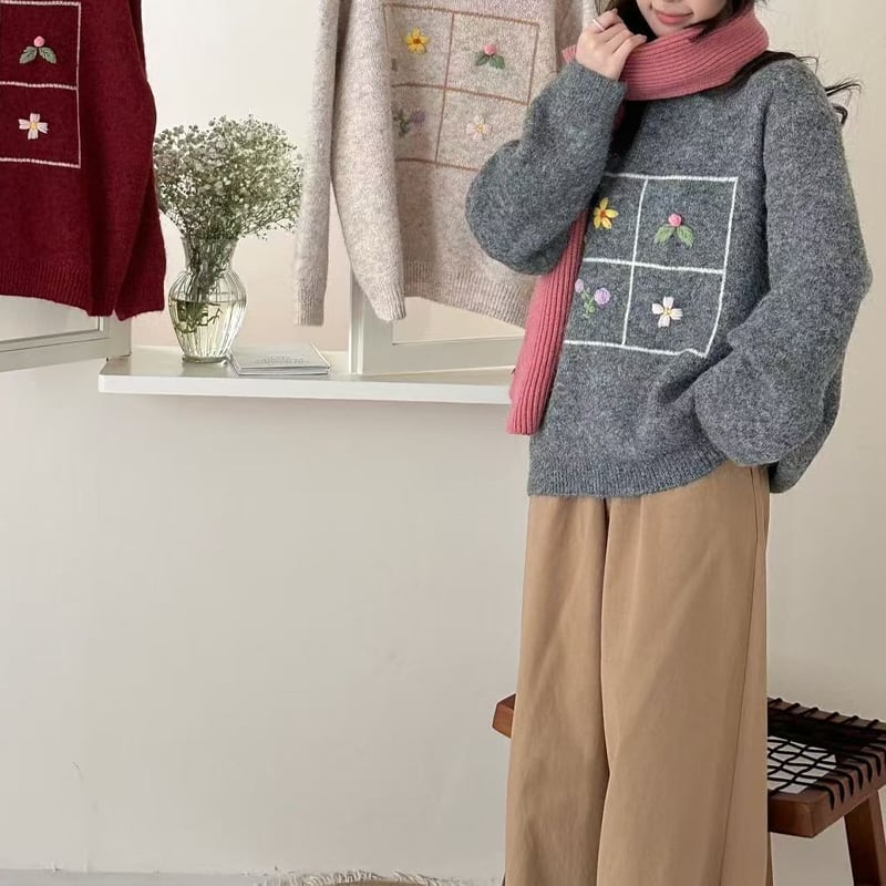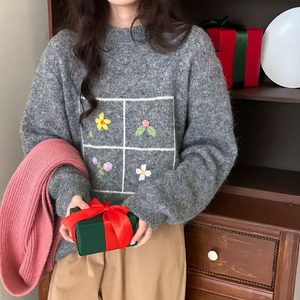 【tops】刺繡柄ニットトップス Q7753