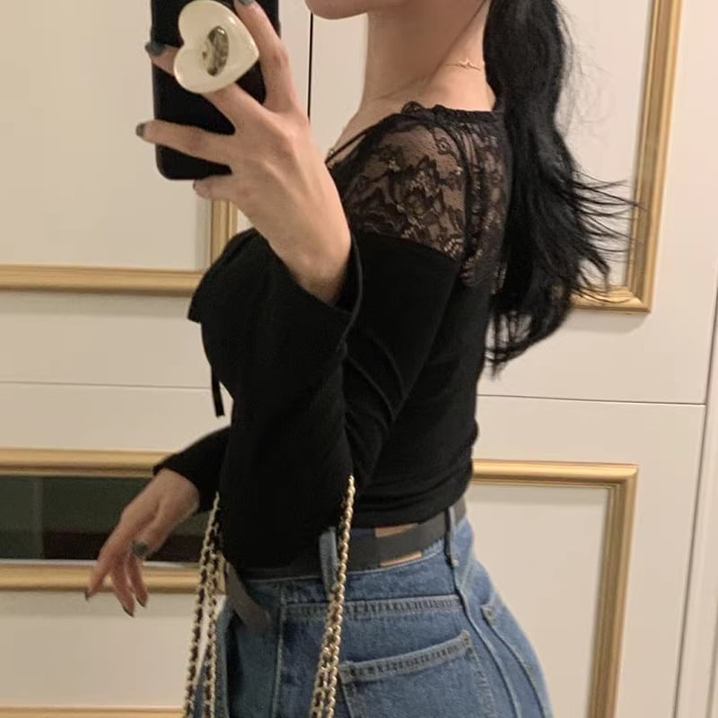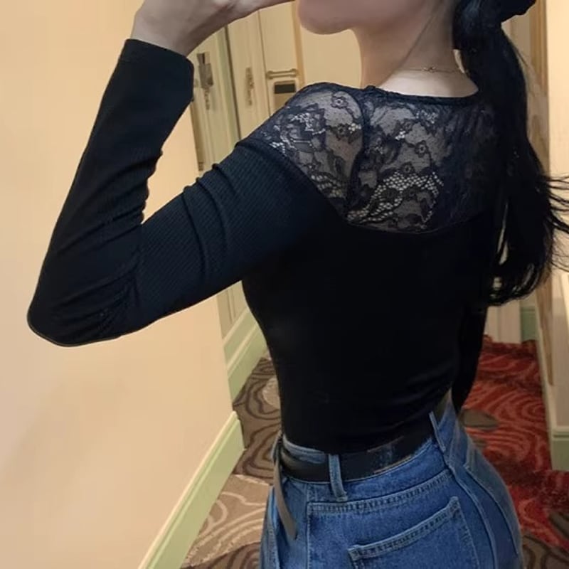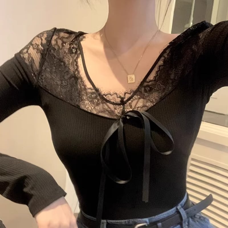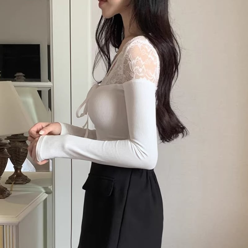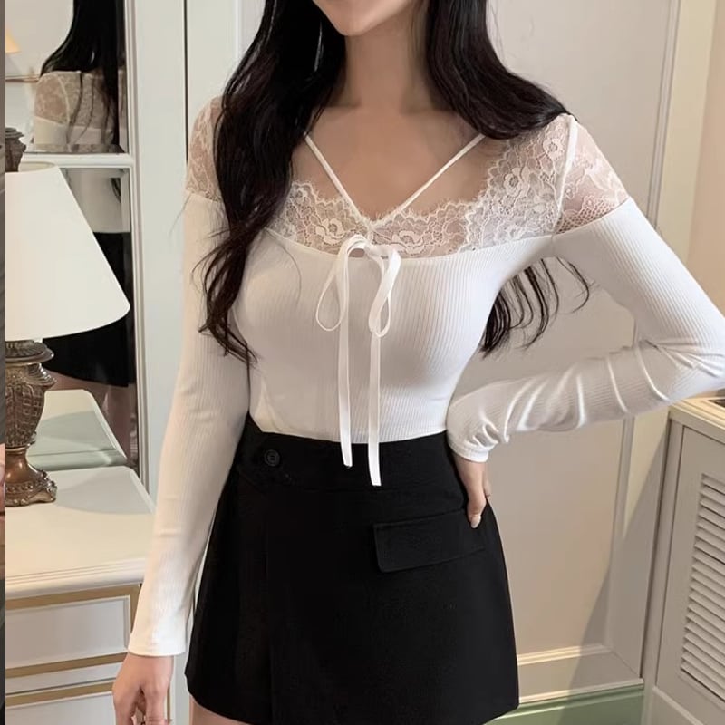 【tops】レースドッキングトップス Q7755