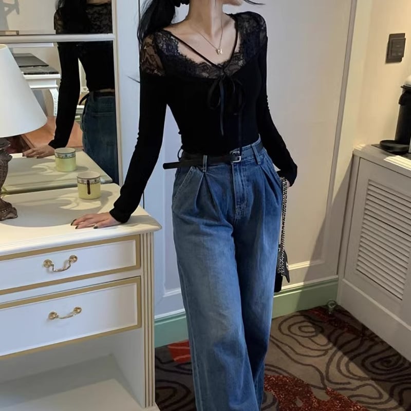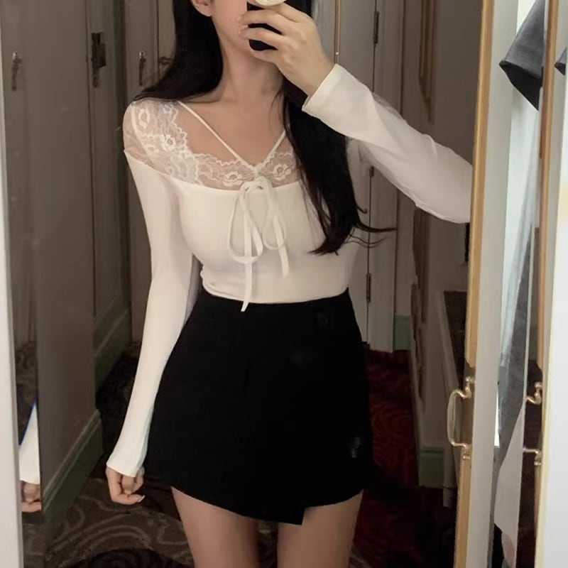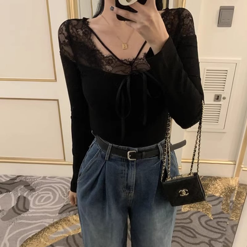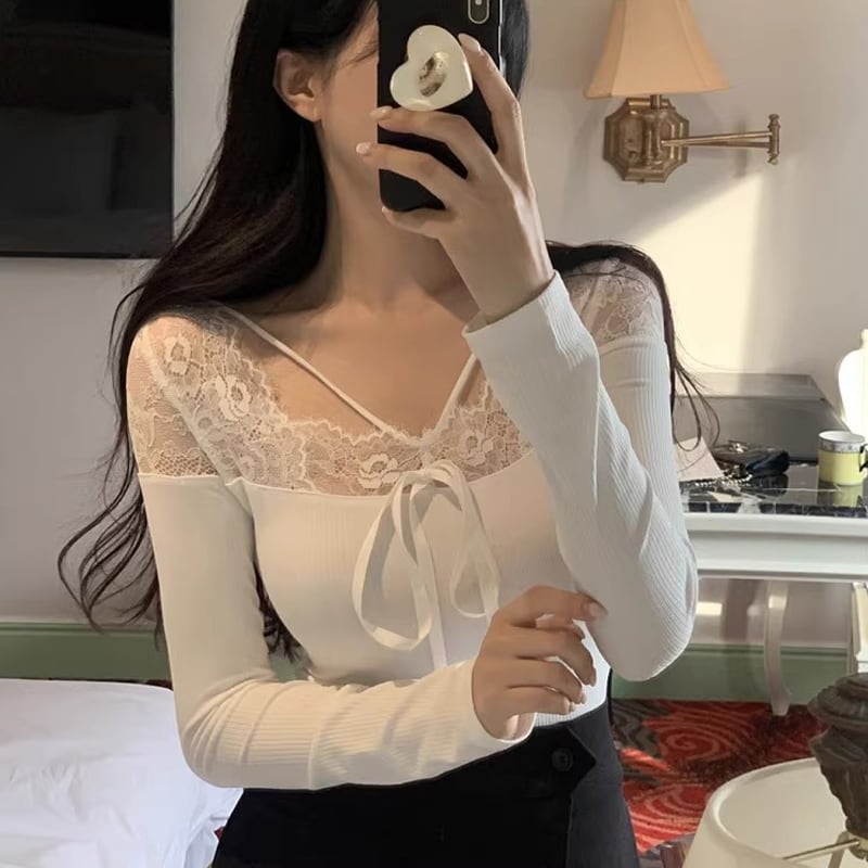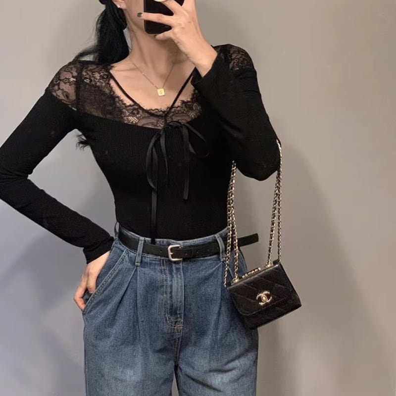 【tops】レースドッキングトップス Q7755