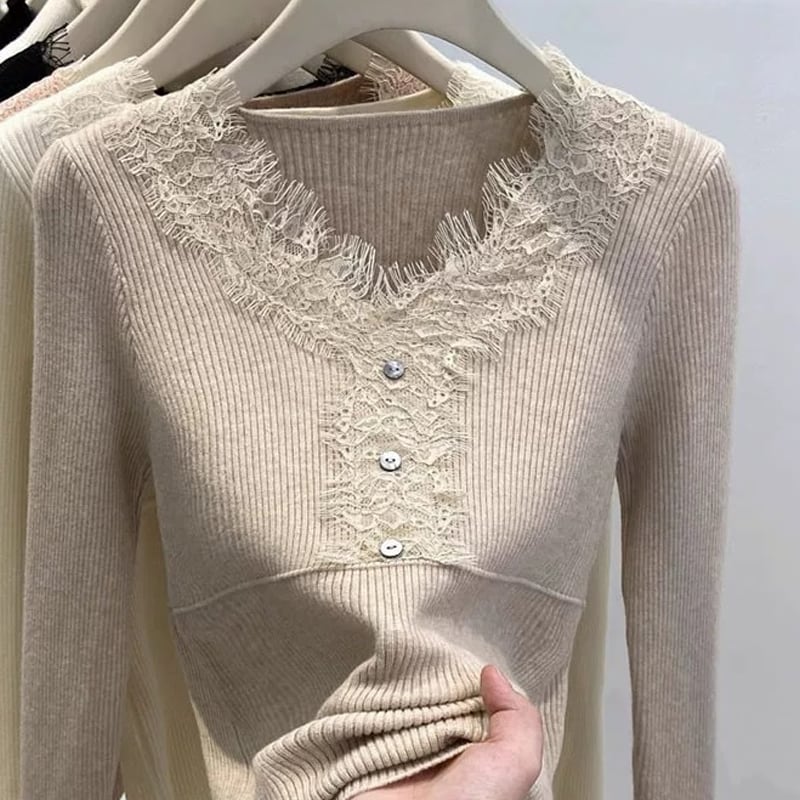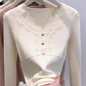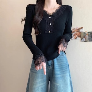 【tops】レースドッキングニットトップス Q7780