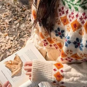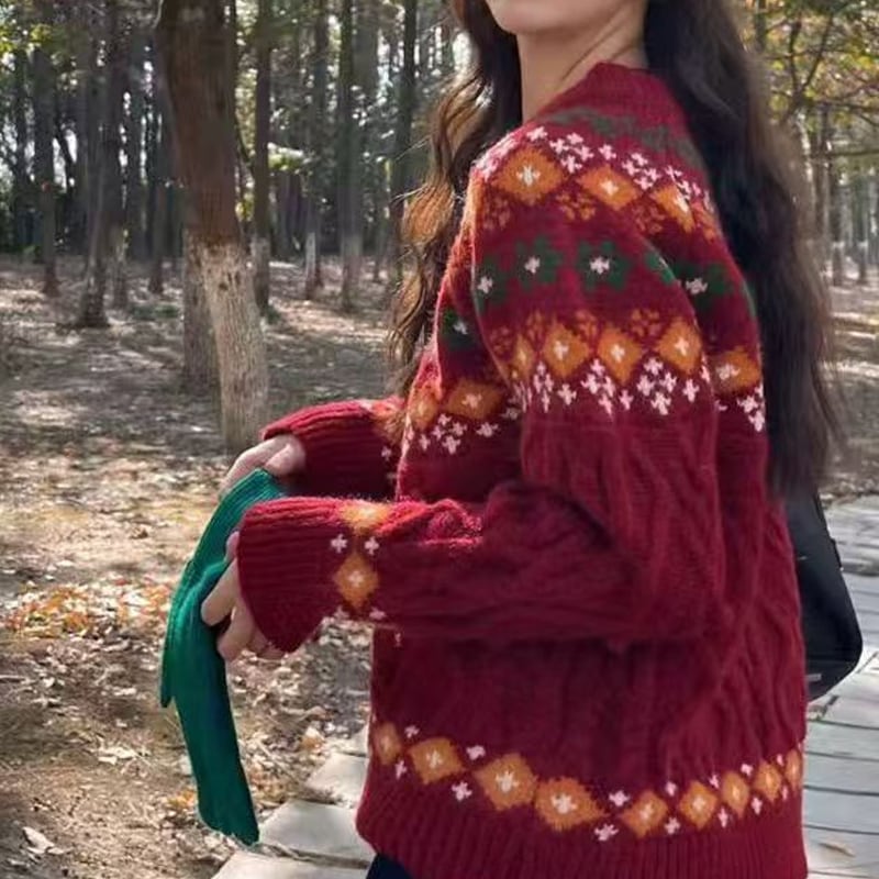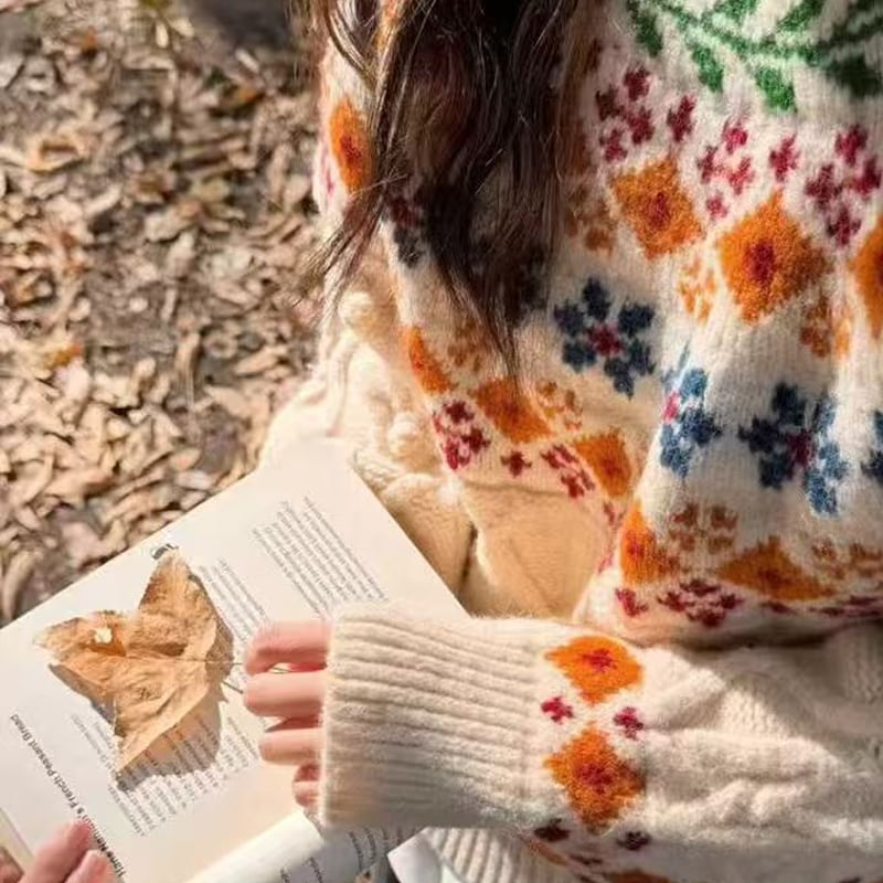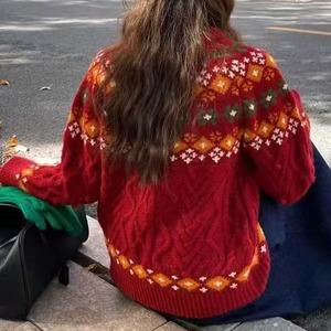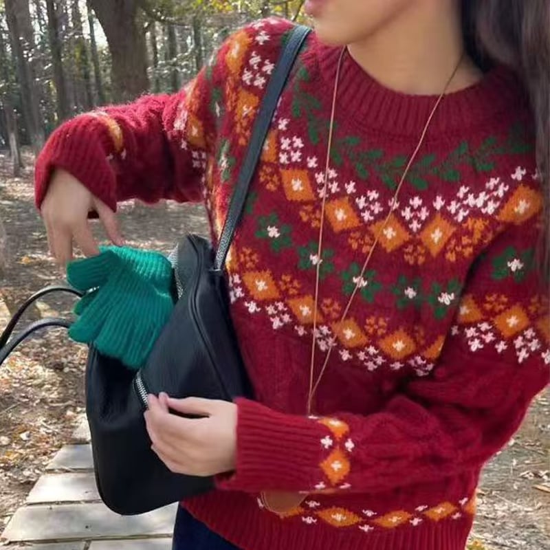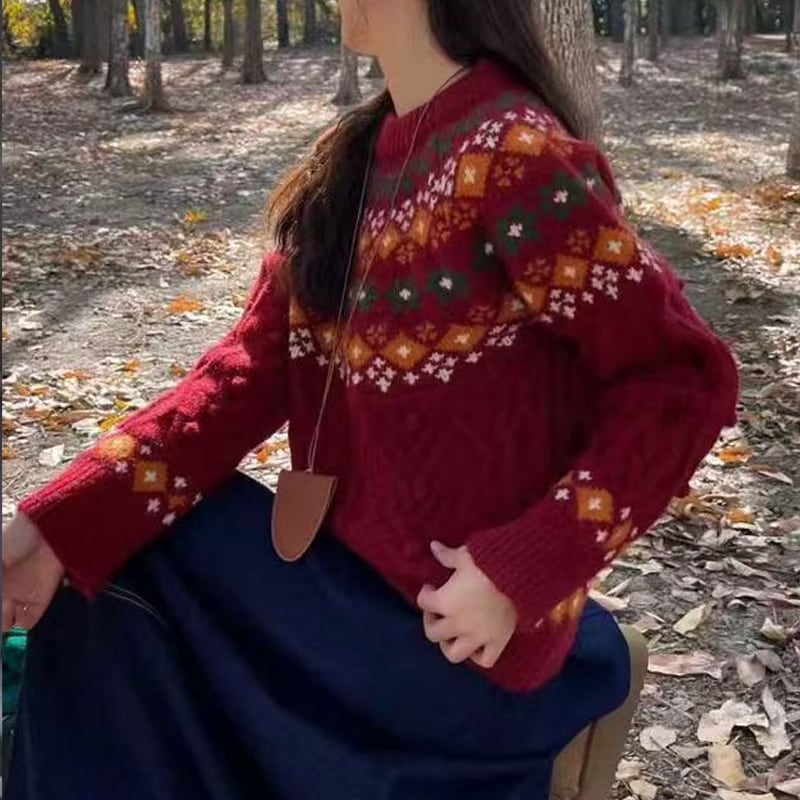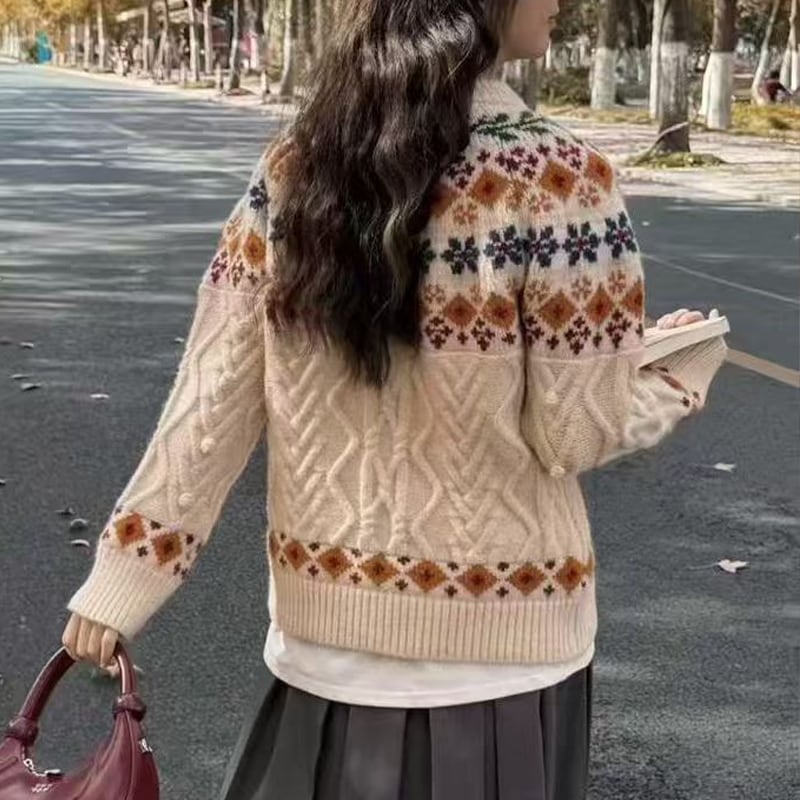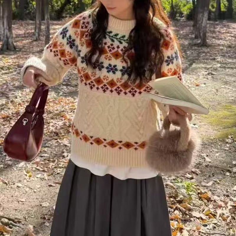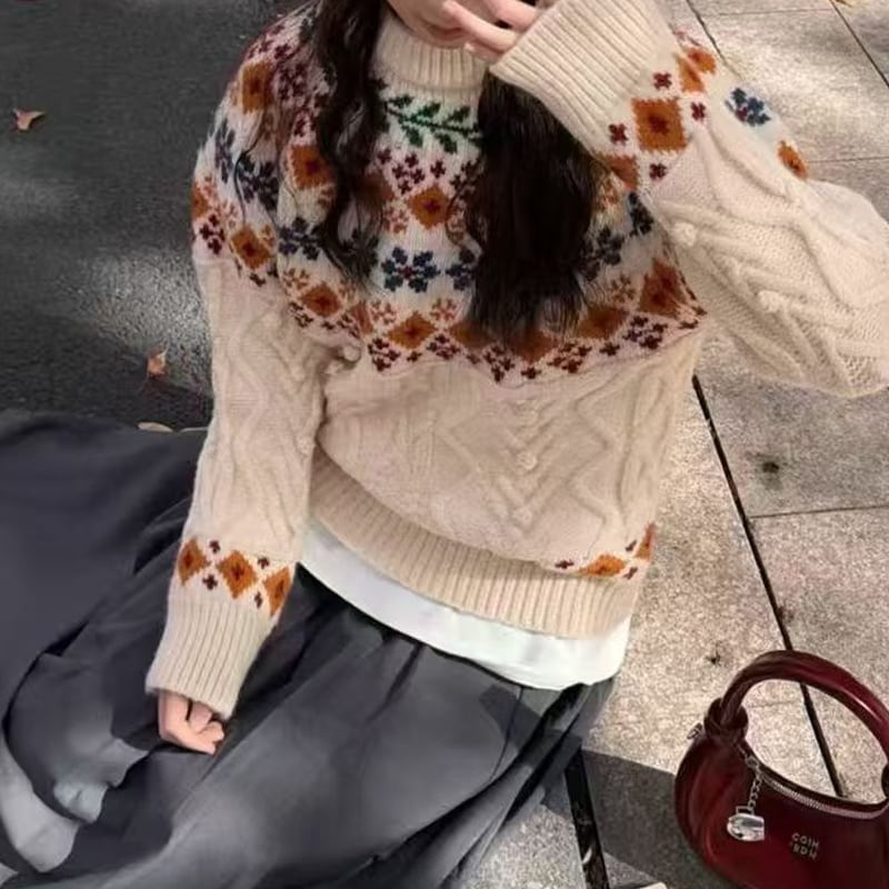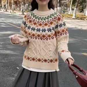 【tops】2色展開ジャカードニットトップス Q7781
