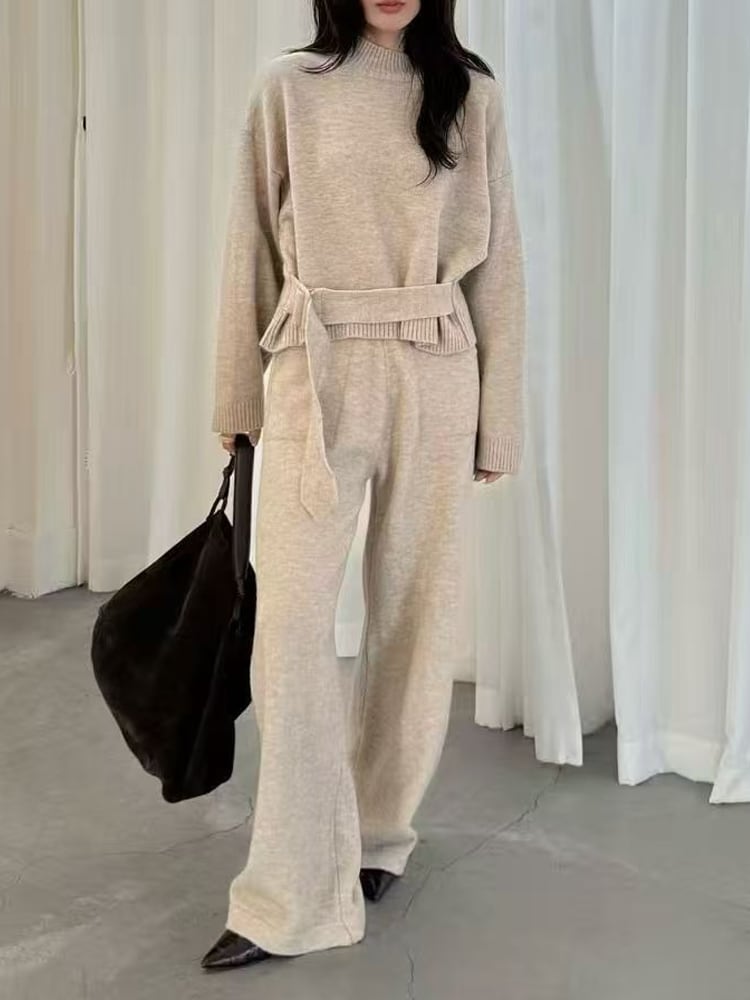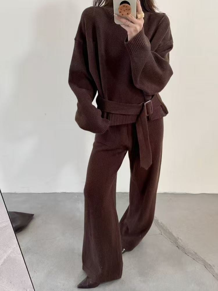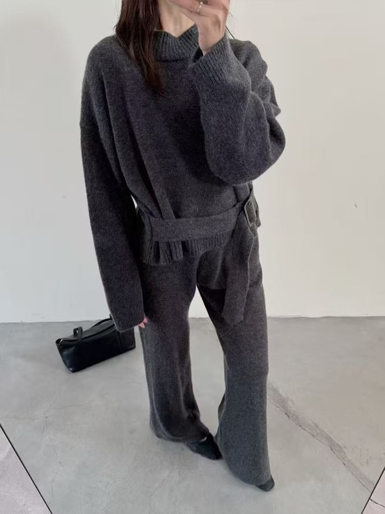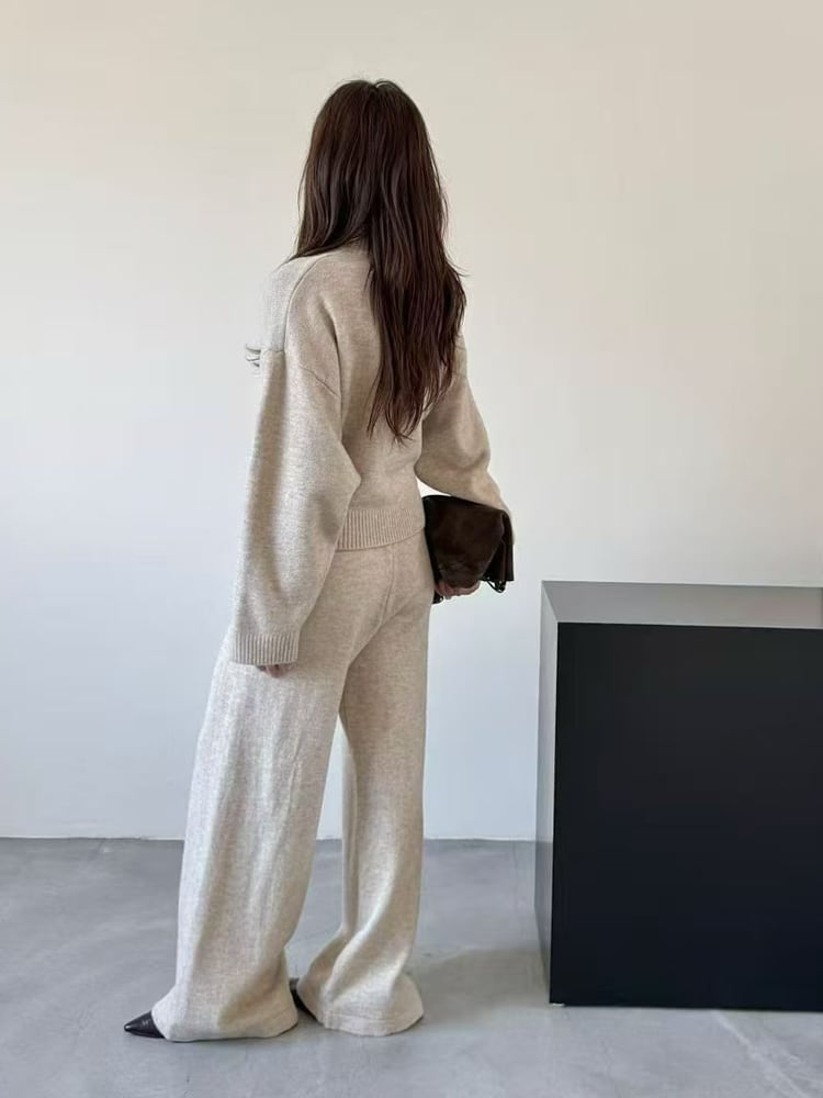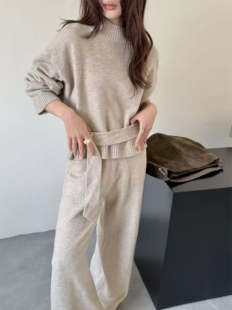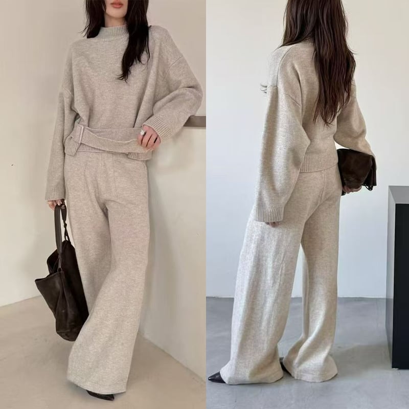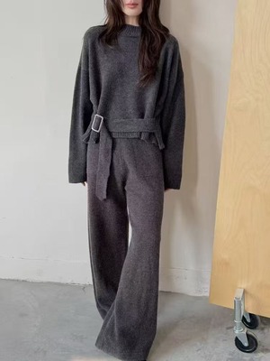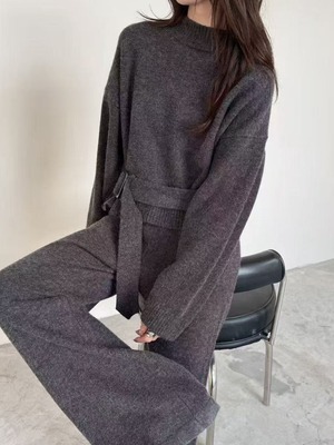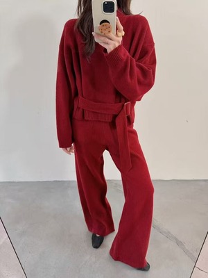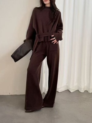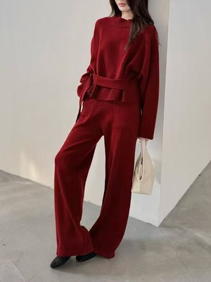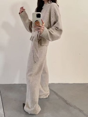 【set】4色展開ニットトップス×ワイドパンツセット Q7787