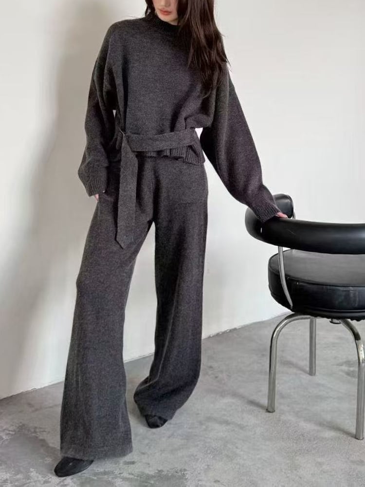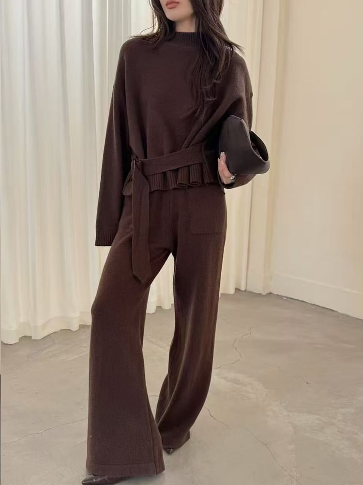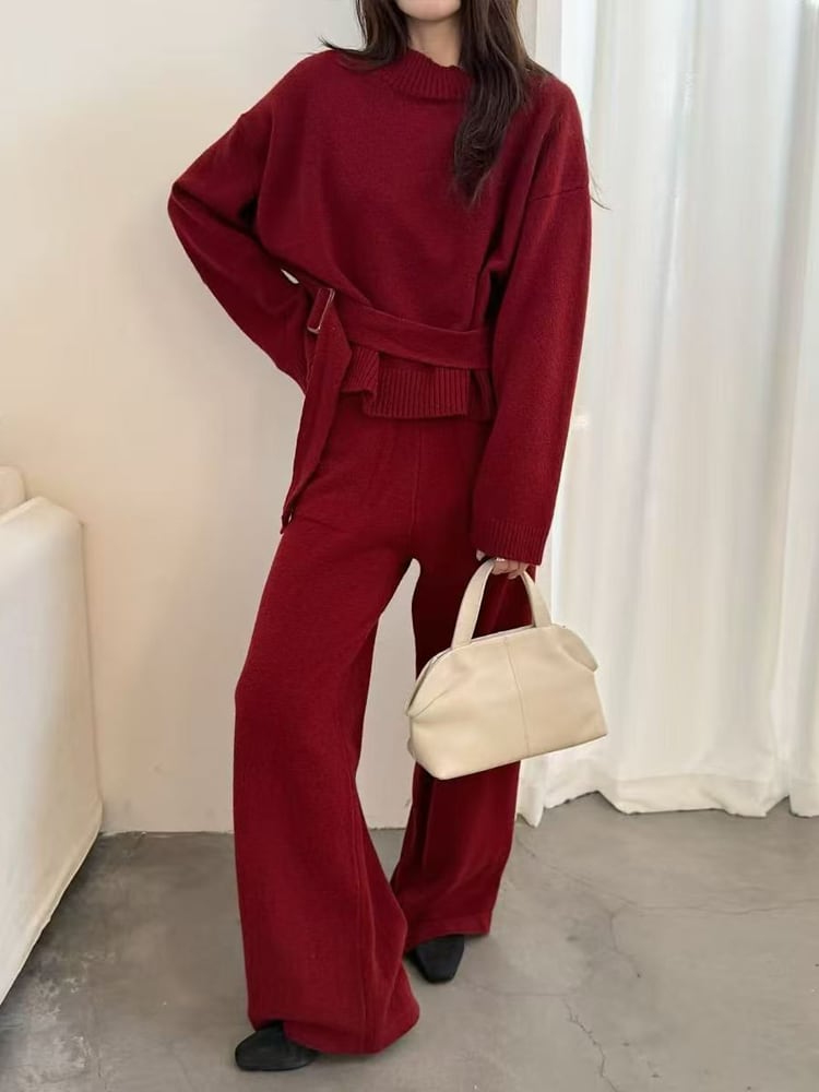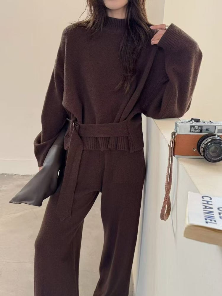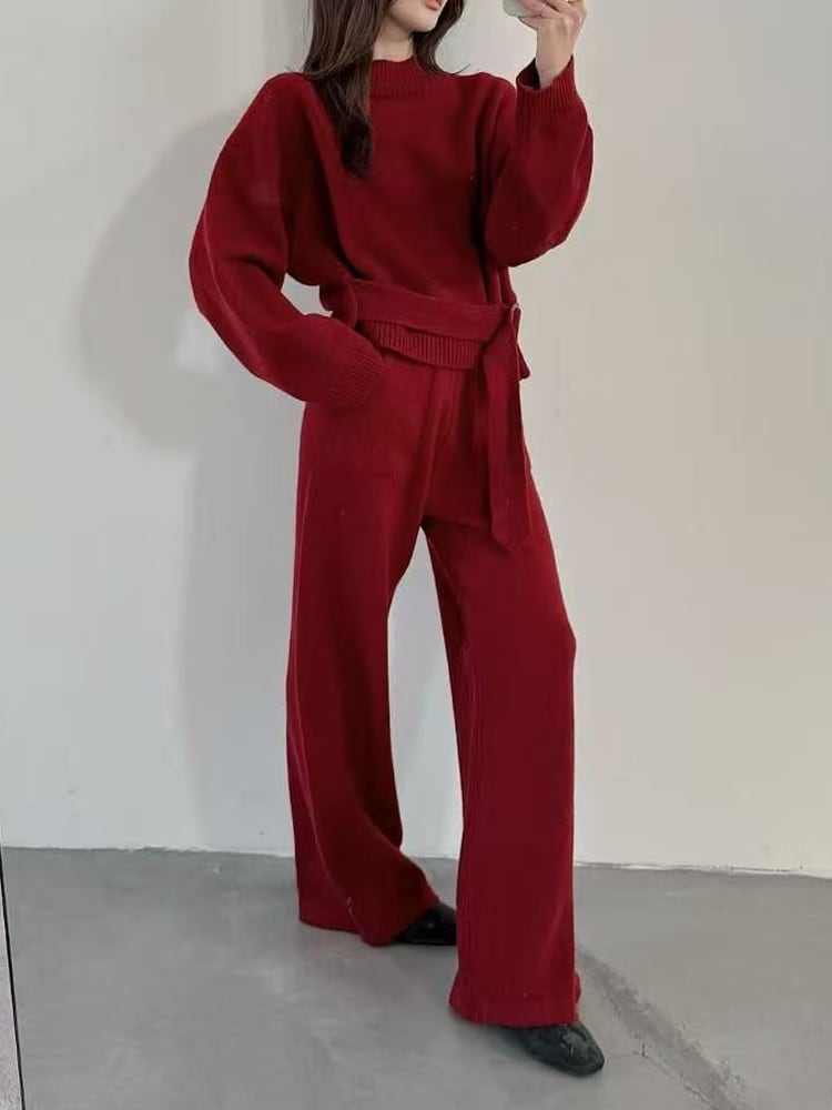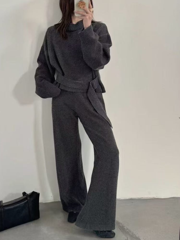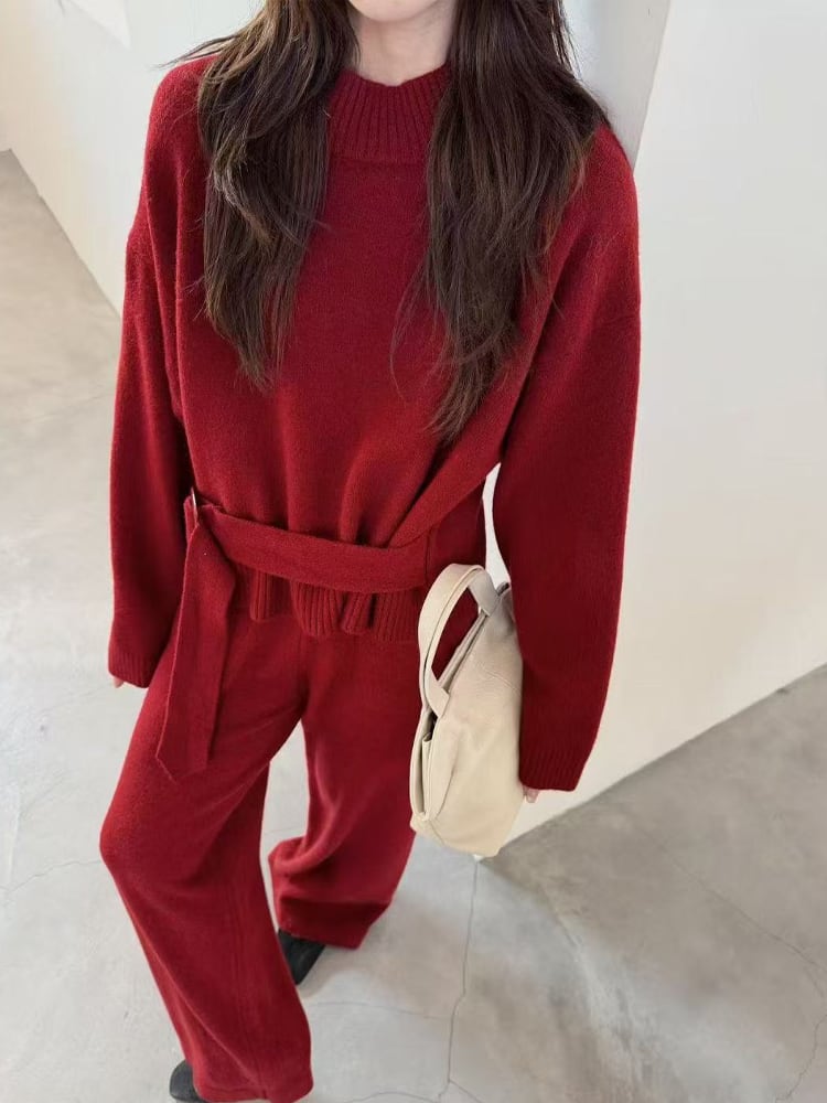 【set】4色展開ニットトップス×ワイドパンツセット Q7787