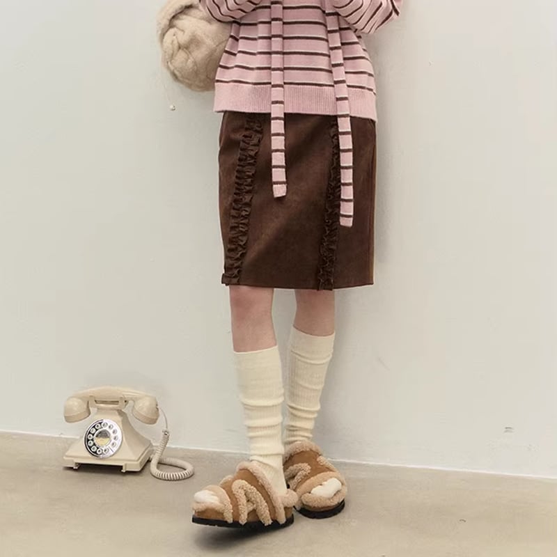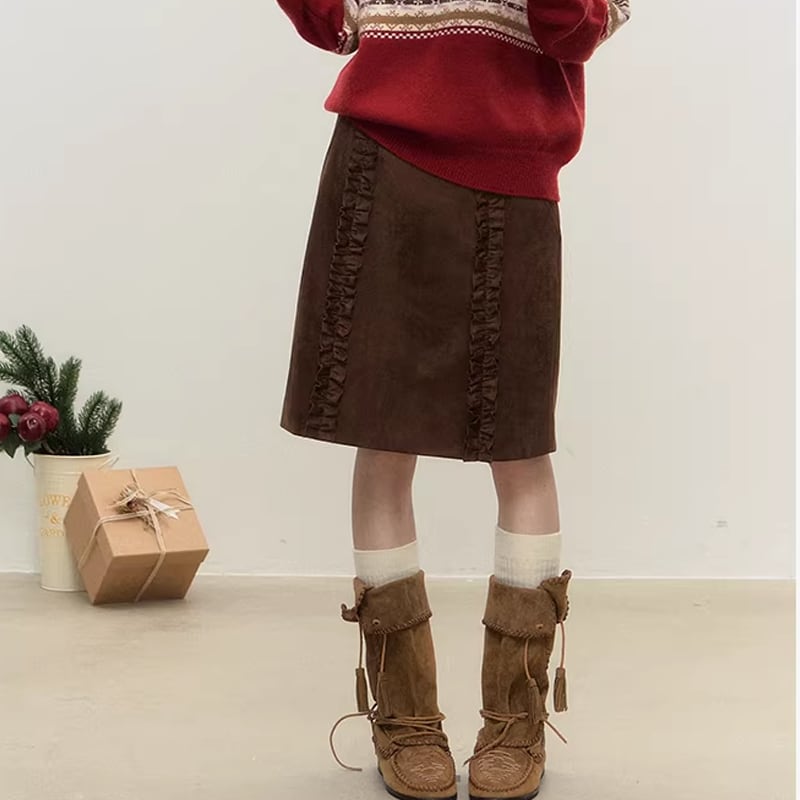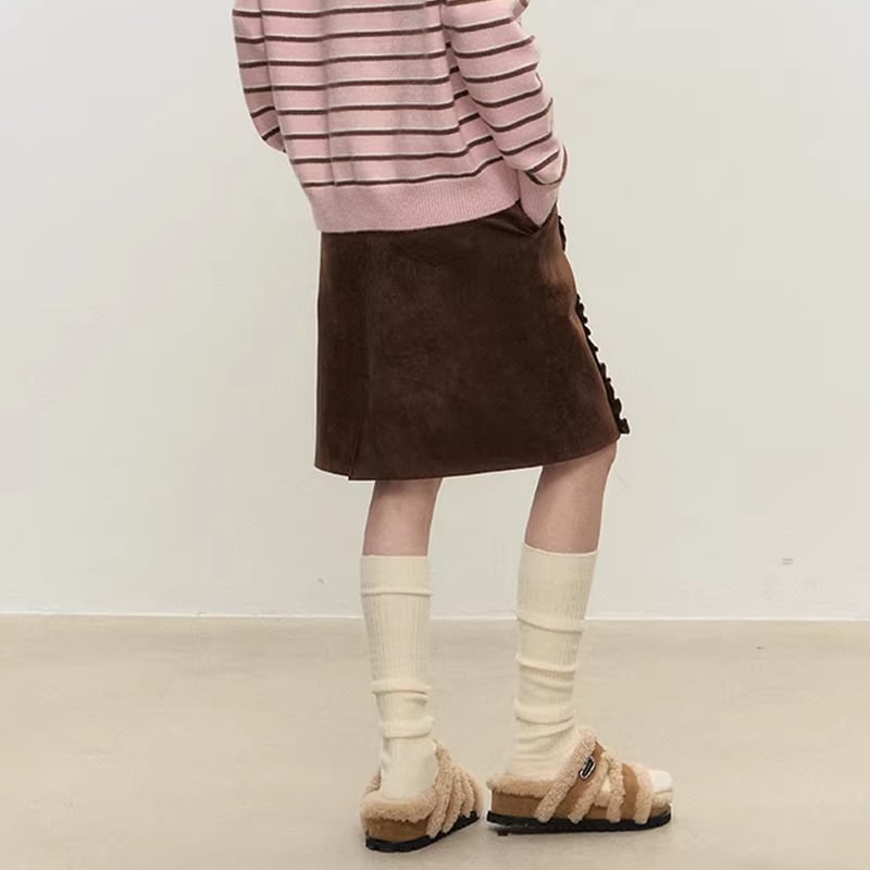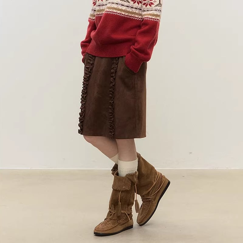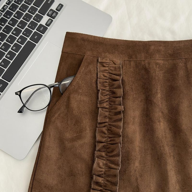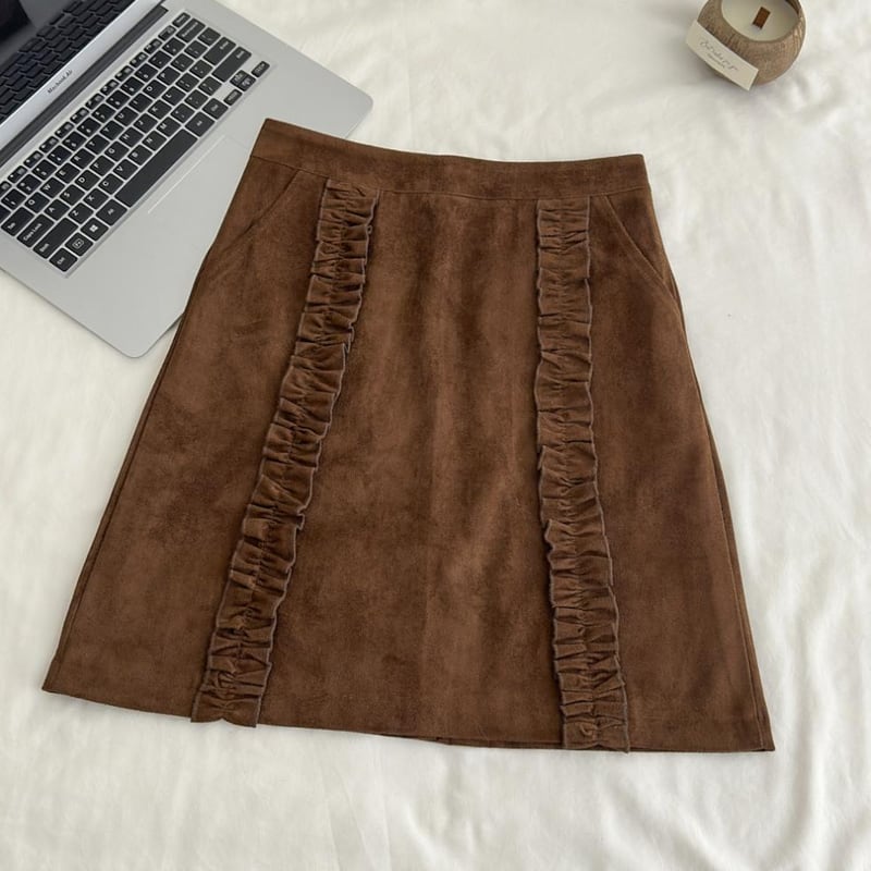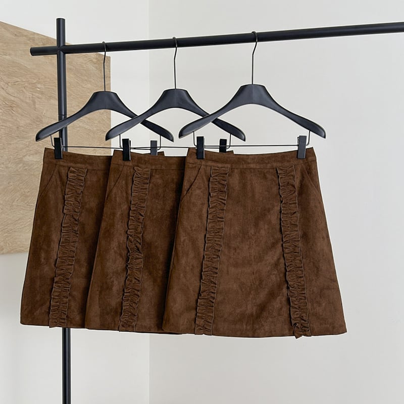 【bottoms】ギャザーフリルスエードスカート Q7798