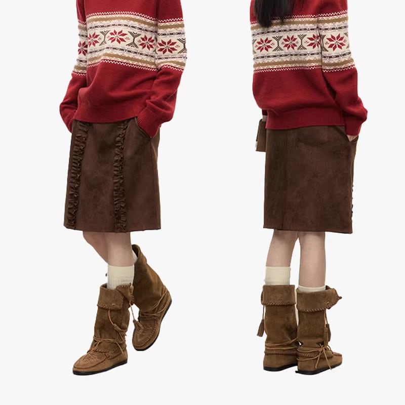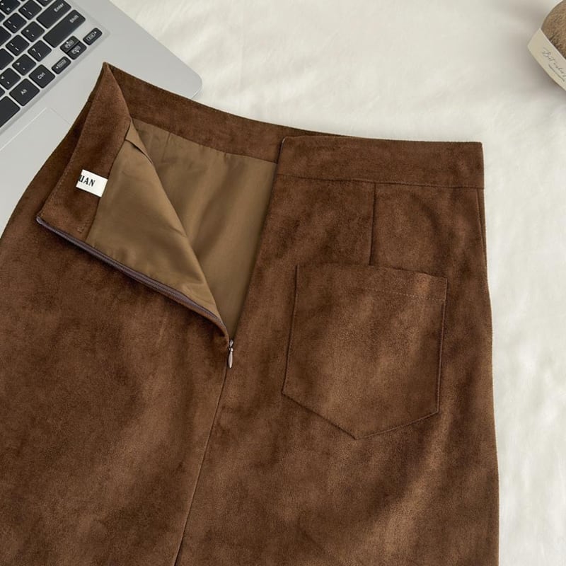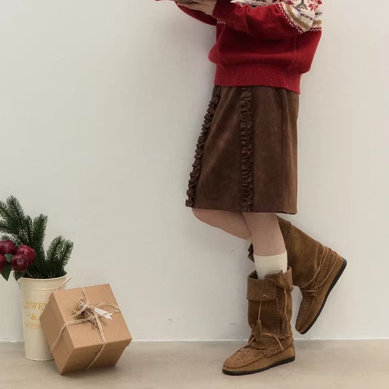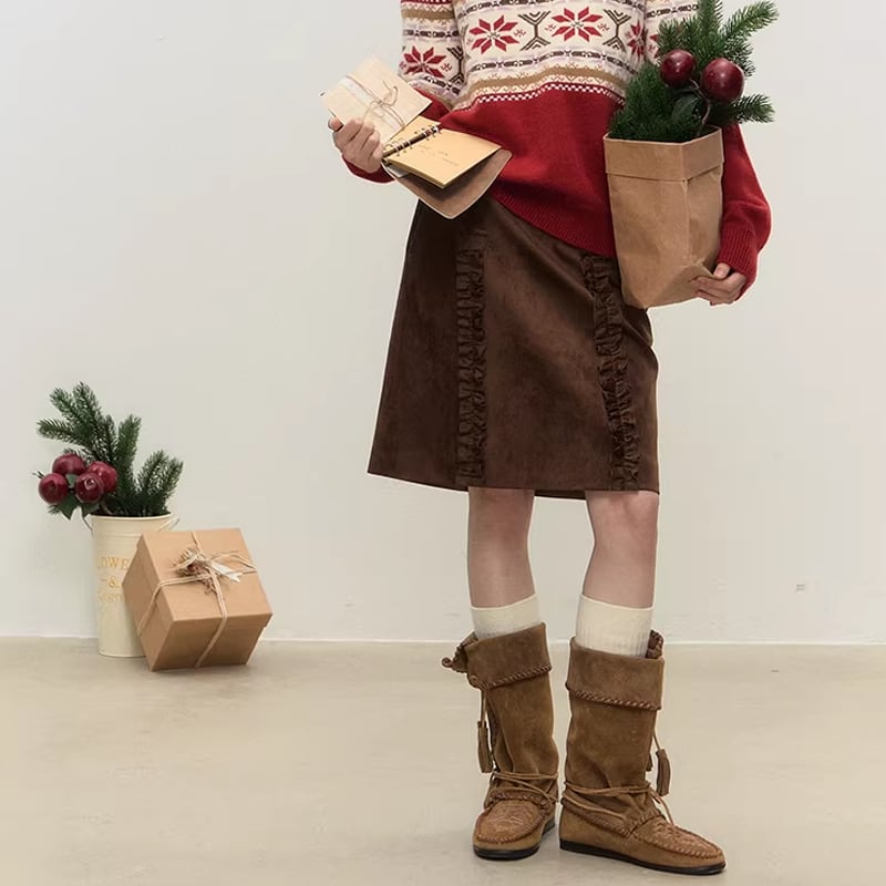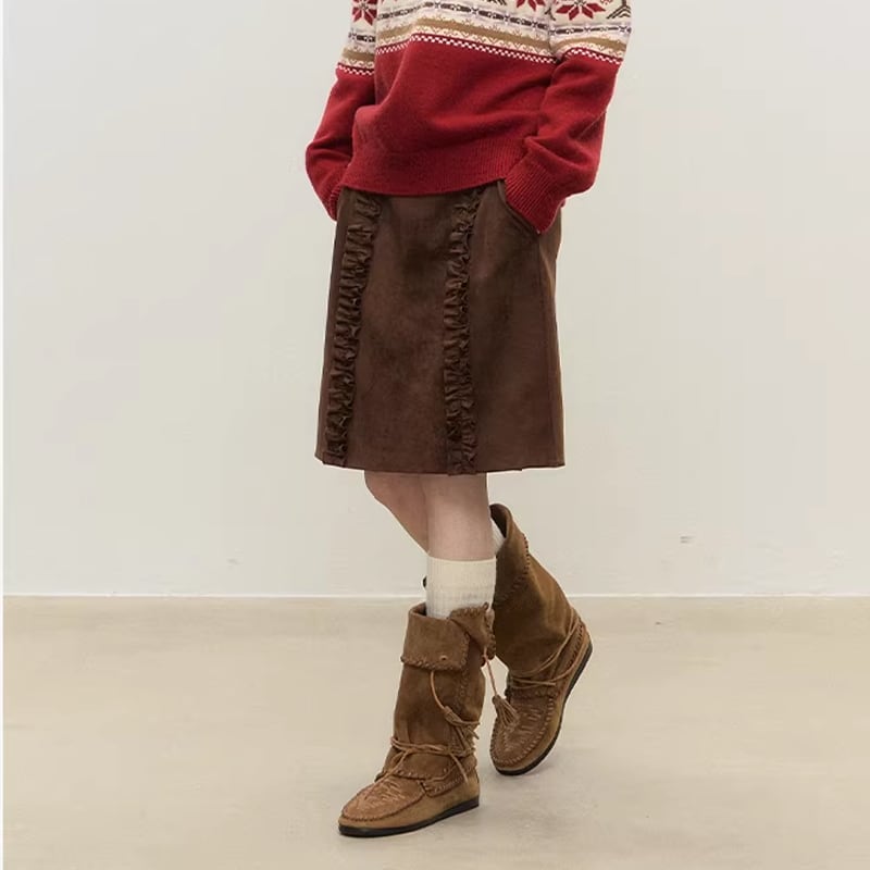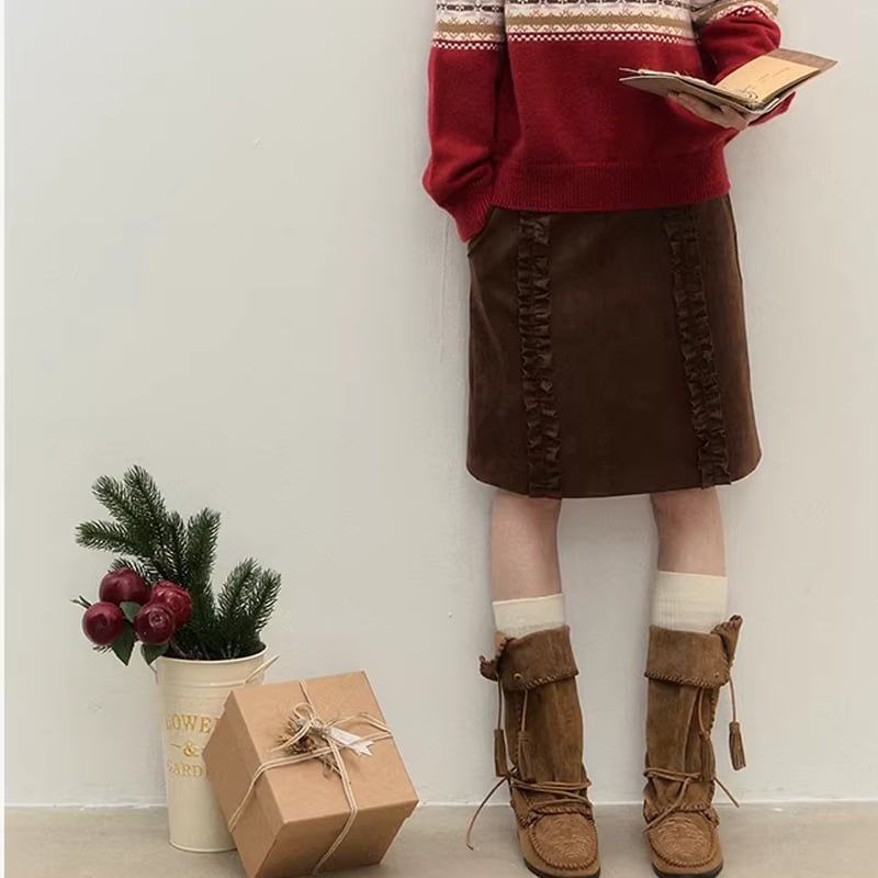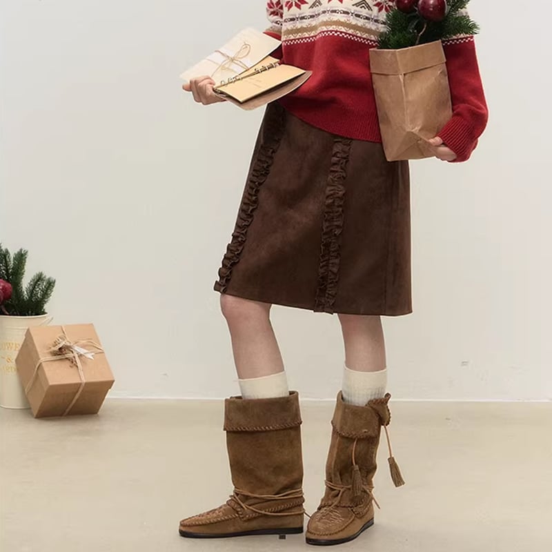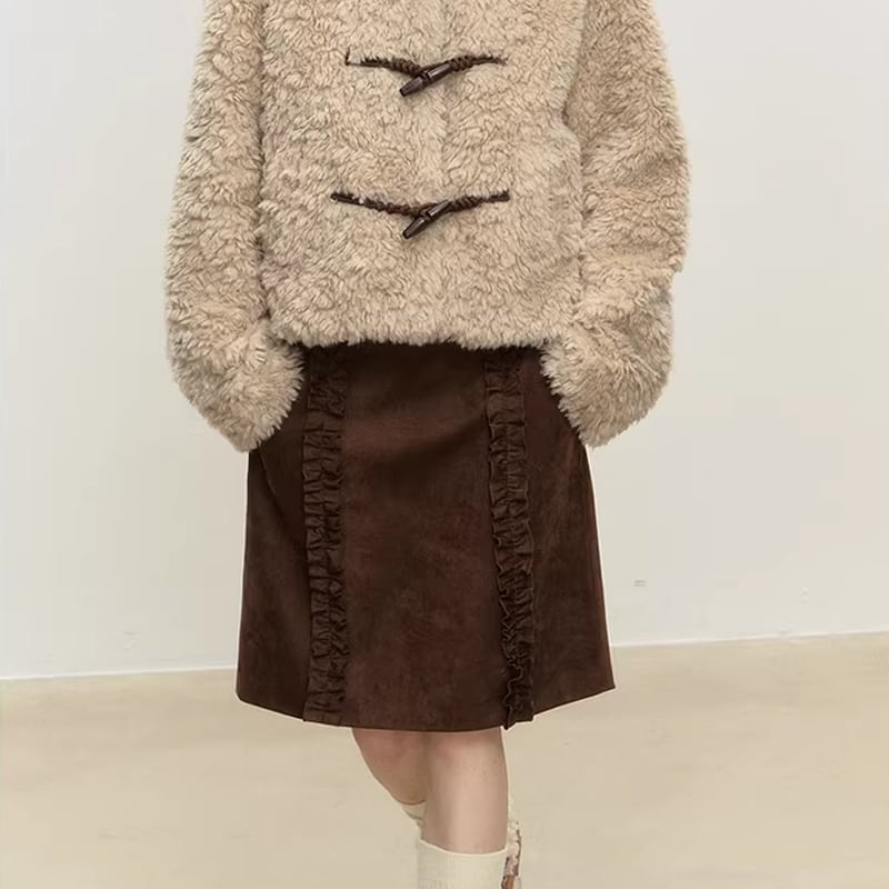 【bottoms】ギャザーフリルスエードスカート Q7798